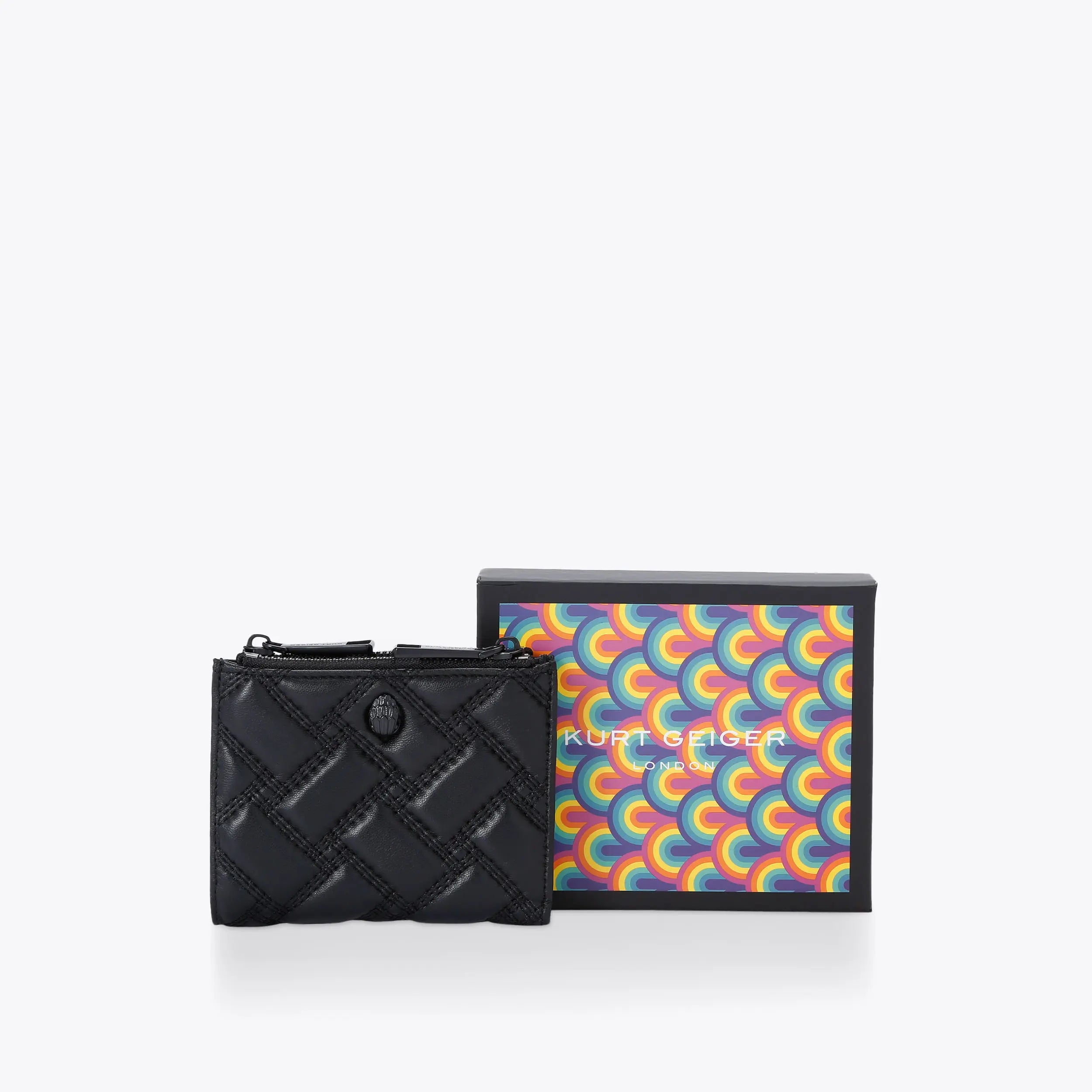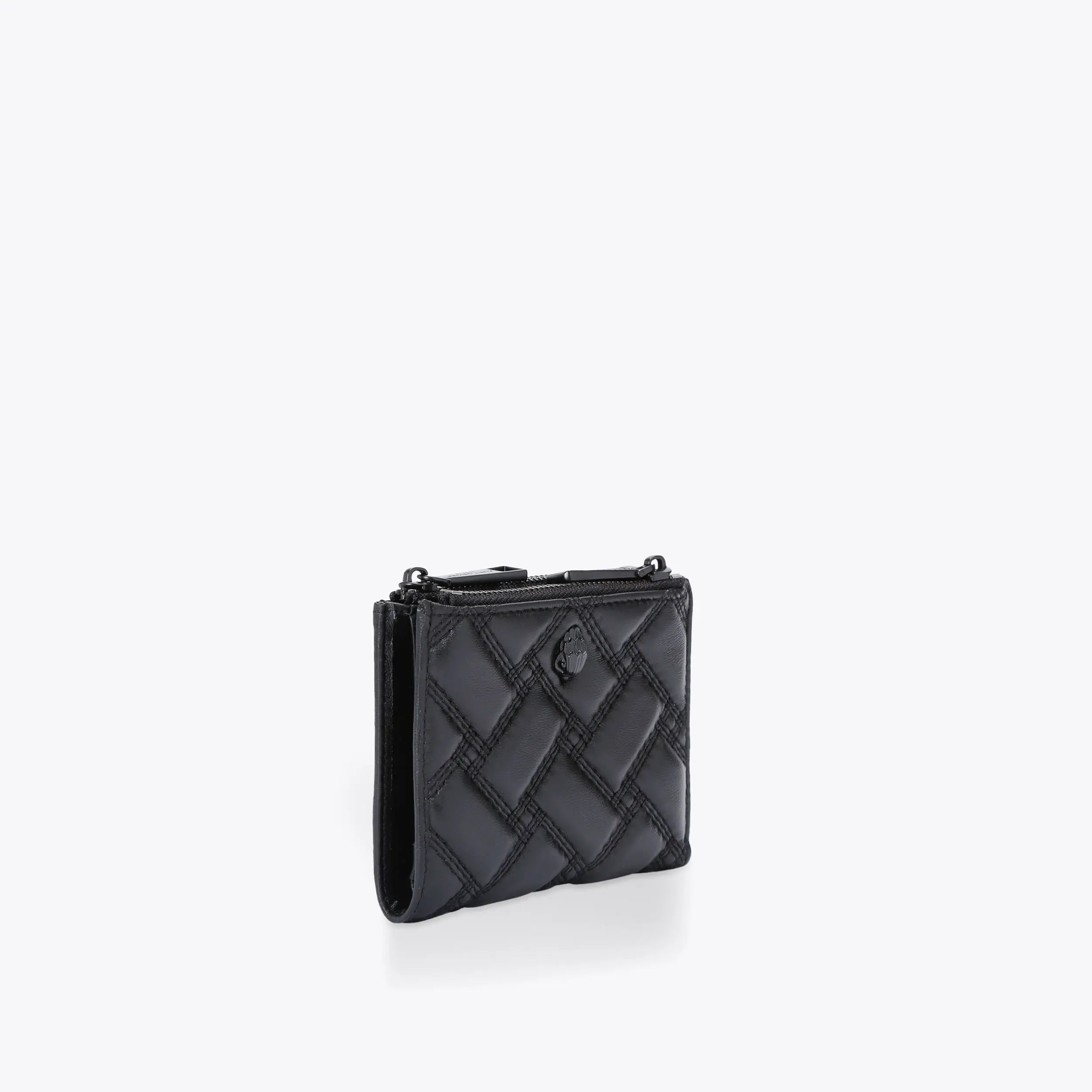 The drench Mini Purse Kensington is crafted from a black leather with overstitch quilt in a weave pattern. The black eagle head sits on the front flap.
