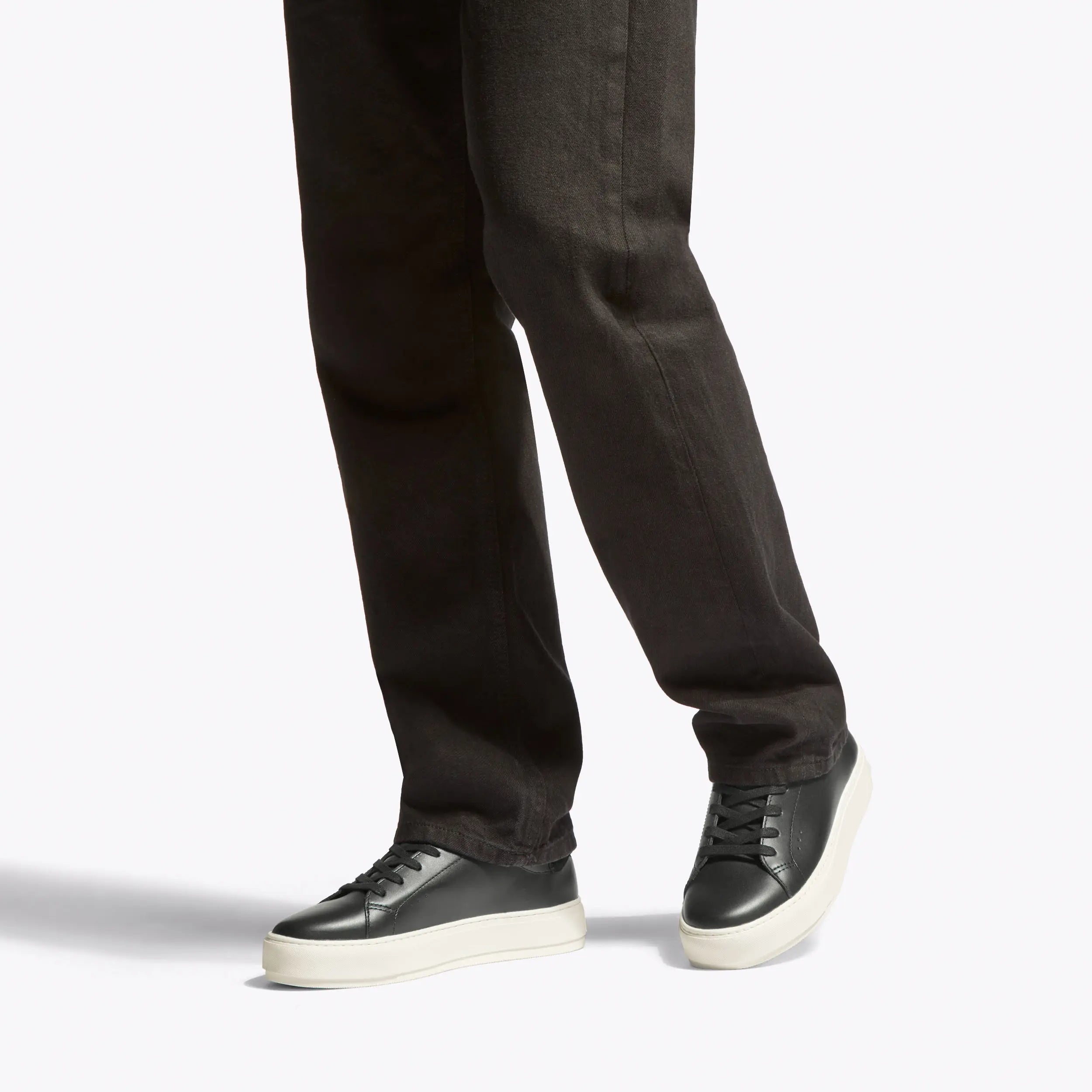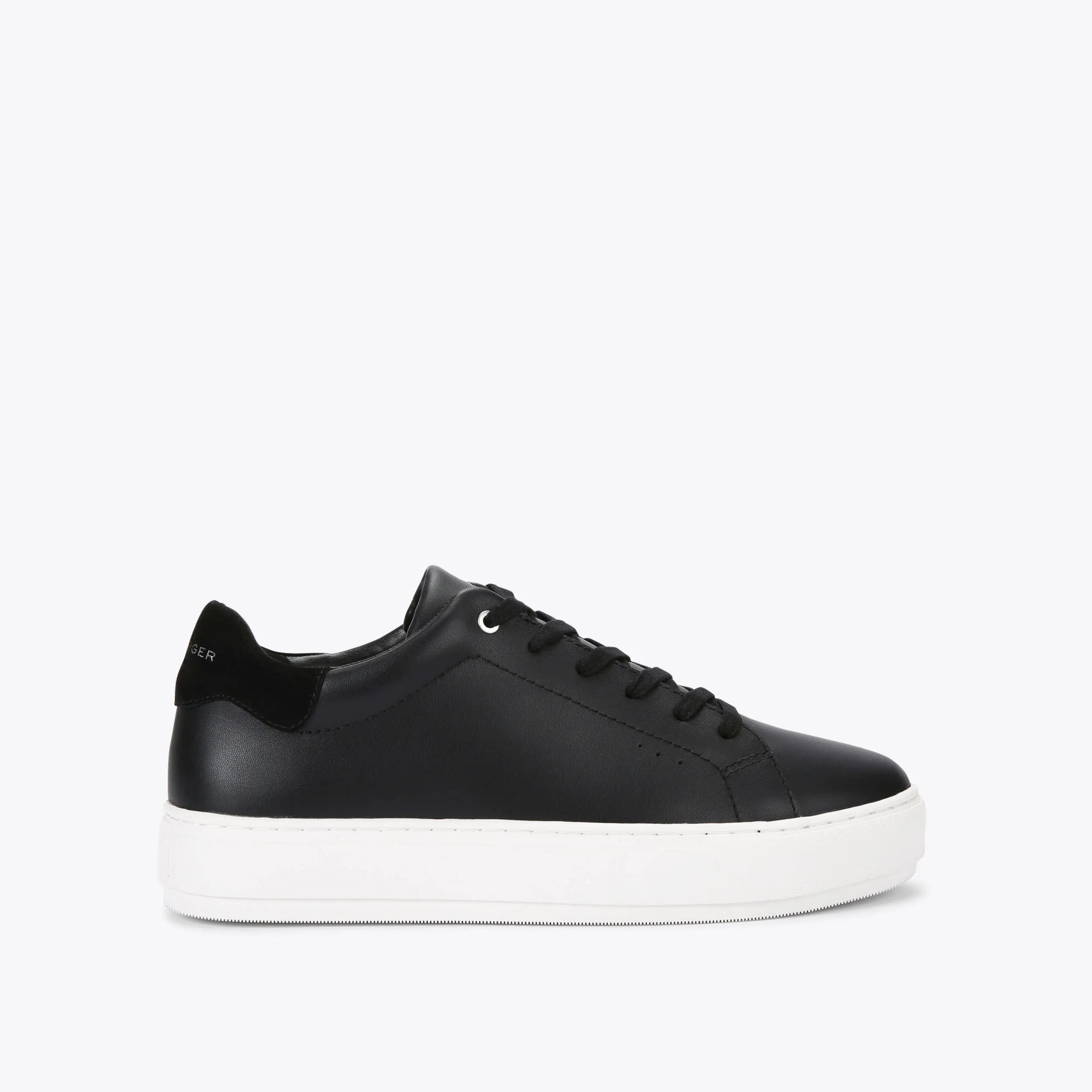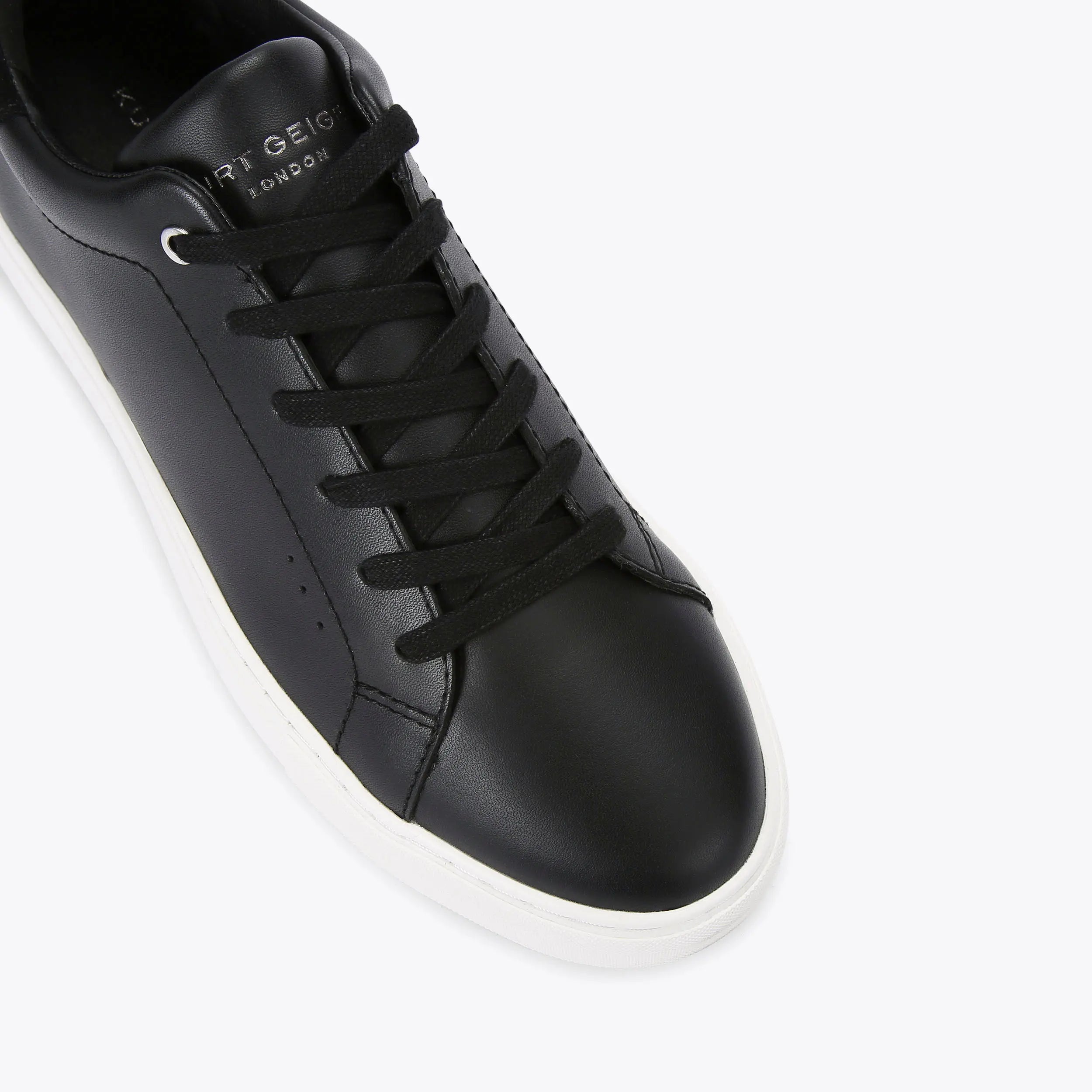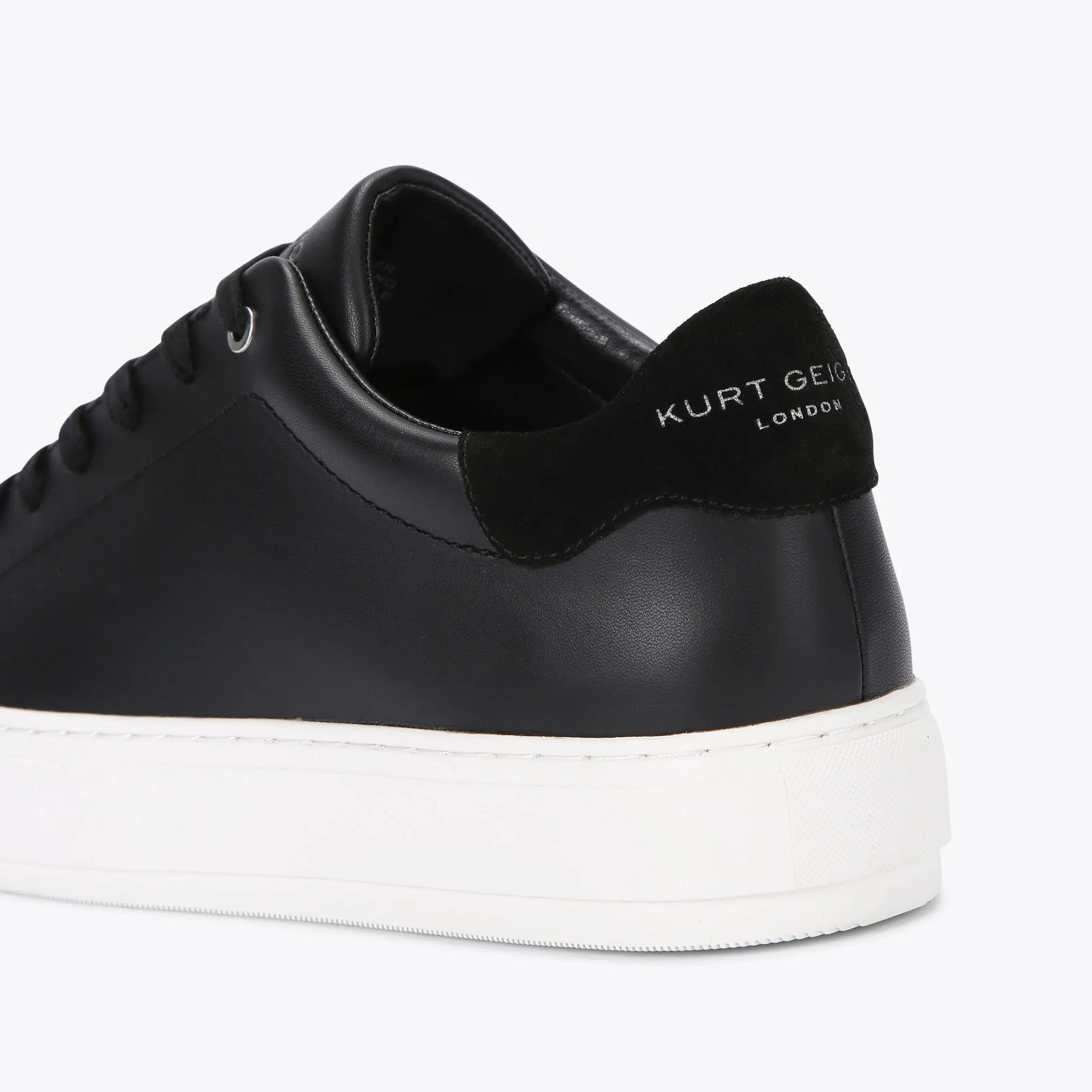 The Laney2 sneaker is crafted from a black leather with classic lace up front. The heel is finished with a black suede panel with silver foil logo.