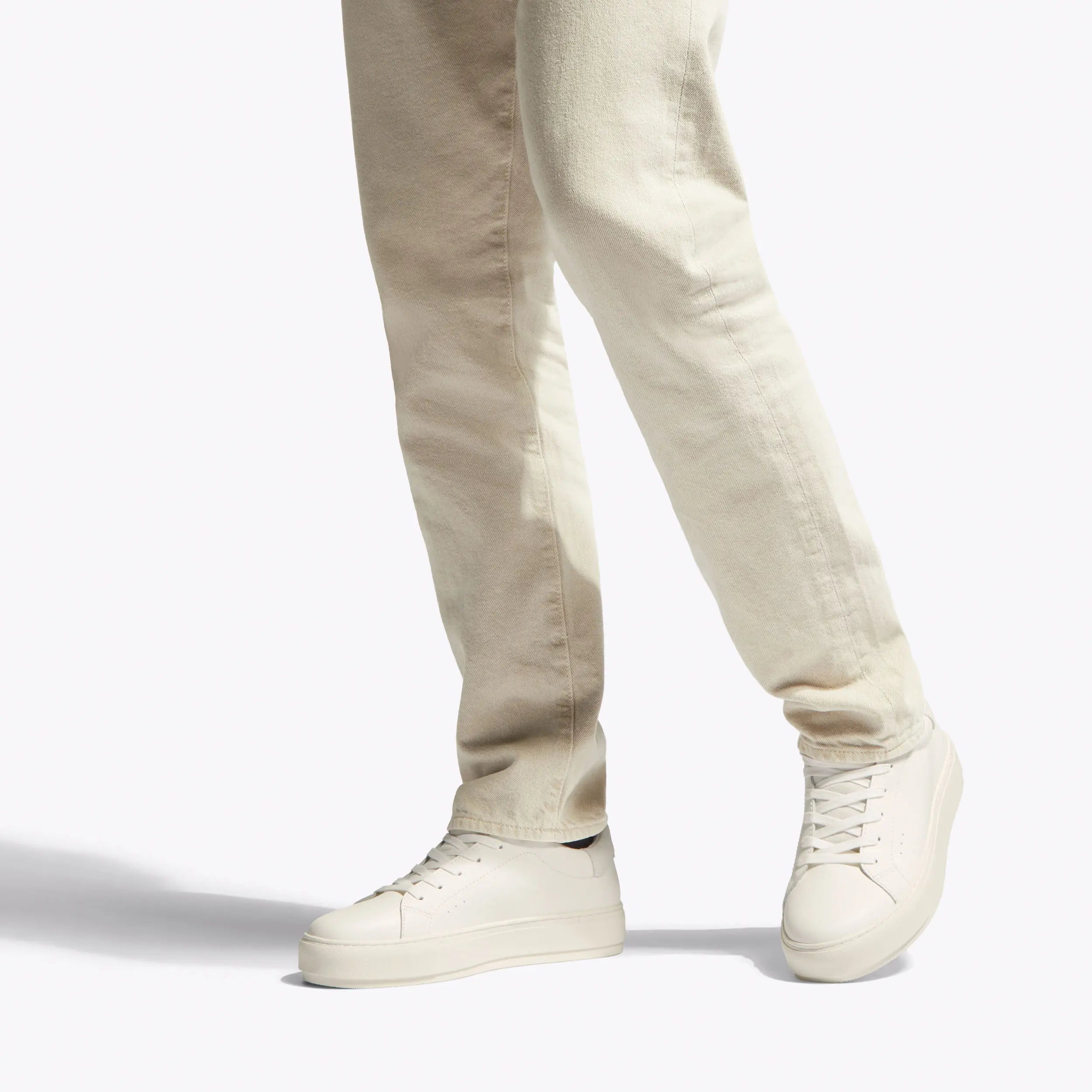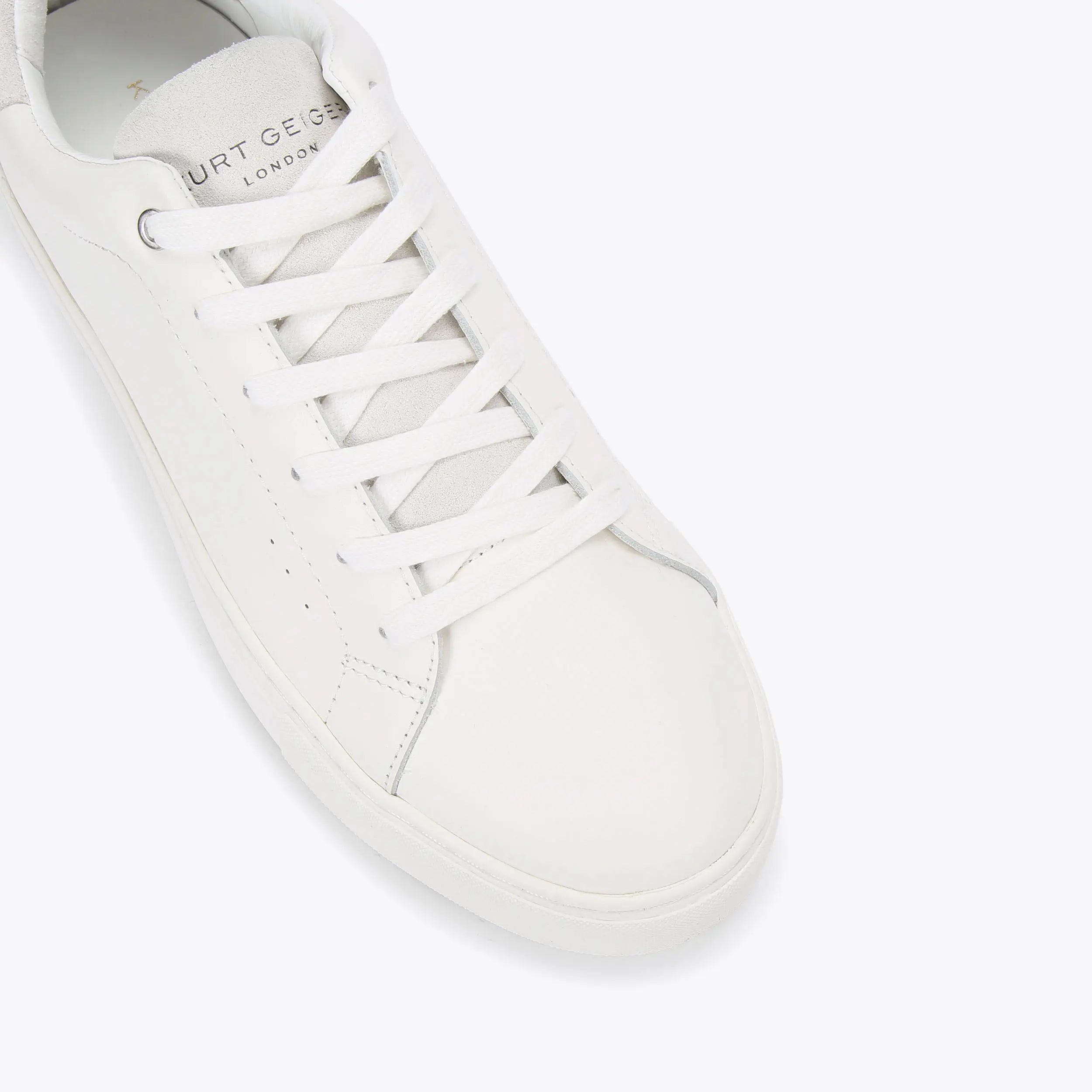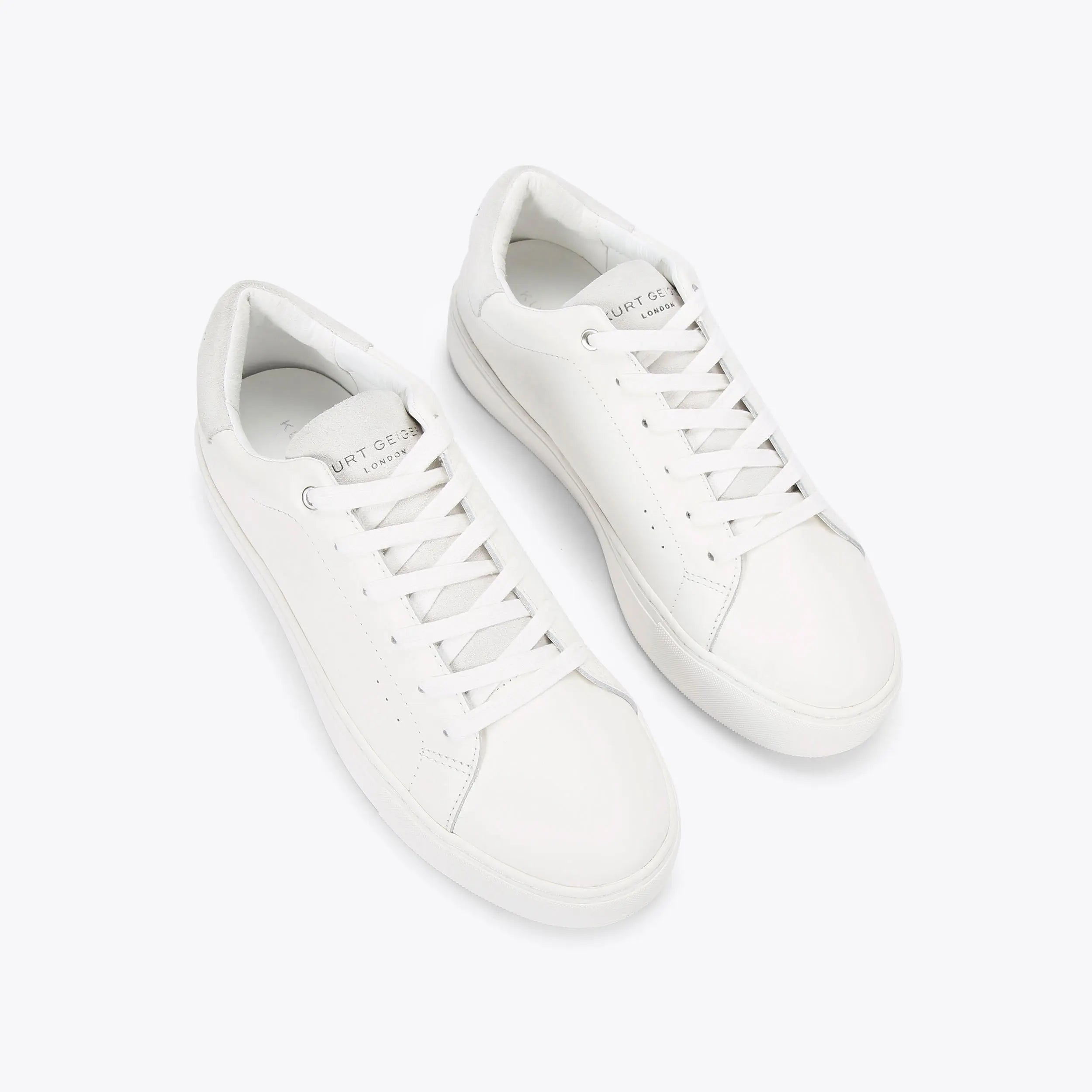 The Laney2 sneaker is crafted from a white leather with classic lace up front. The heel is finished with a grey suede panel with silver foil logo.