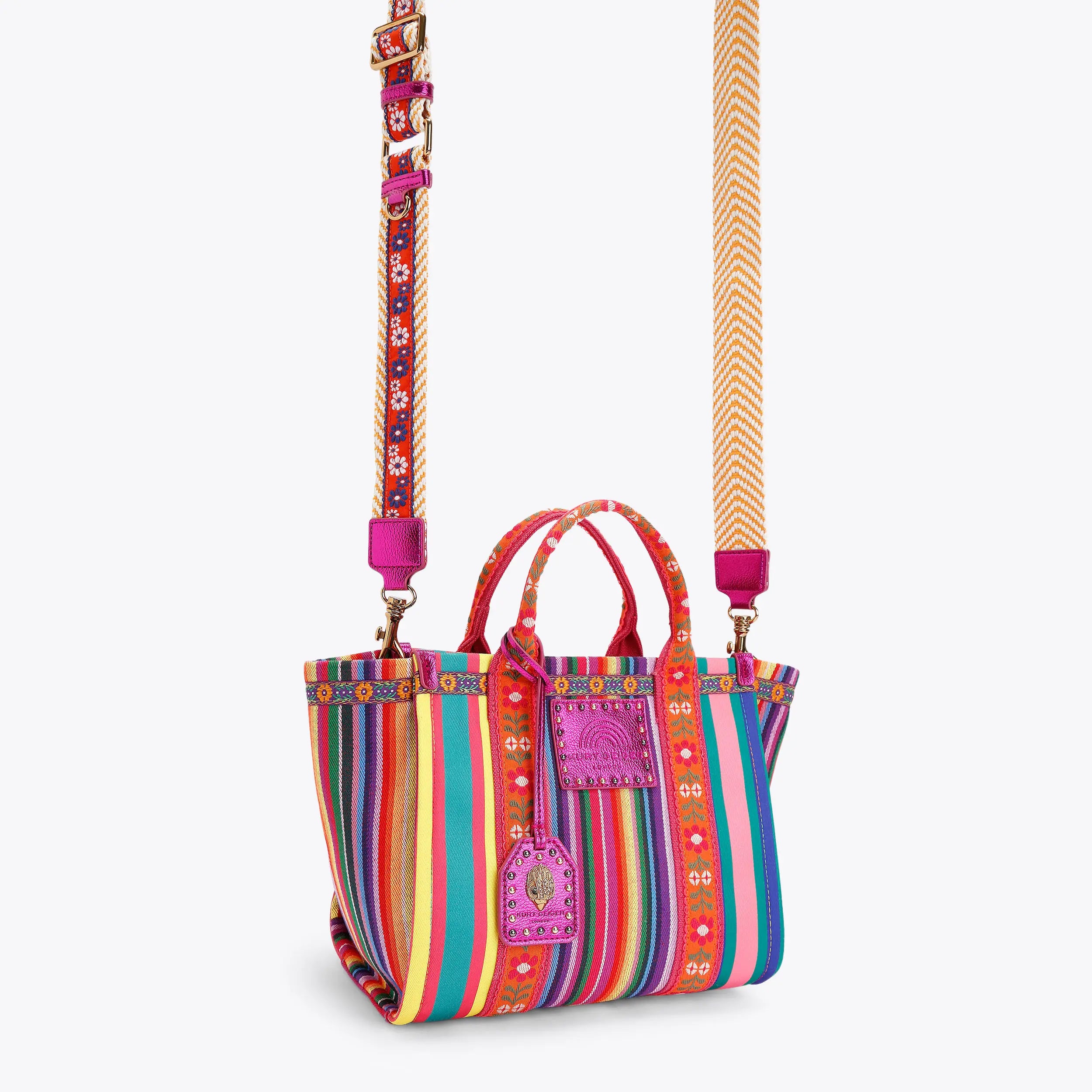 This Small Southbank Shopper is crafted from a rainbow striped design with easy slouch. There are two top handles in canvas with embroidered design.