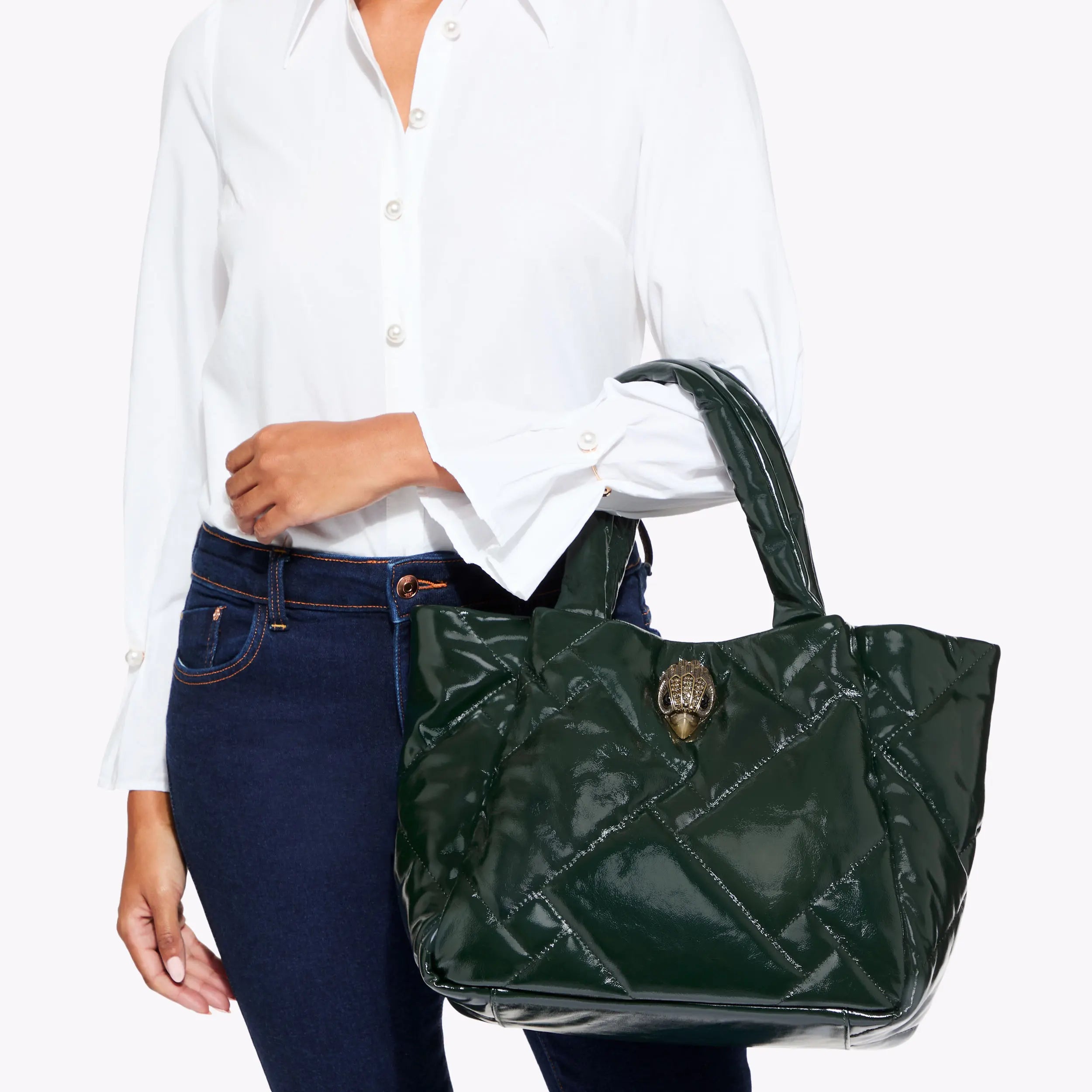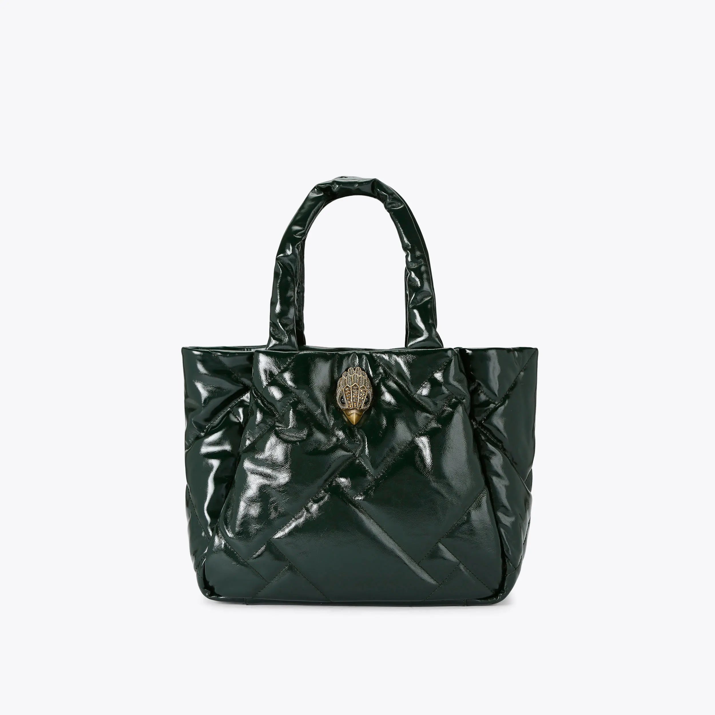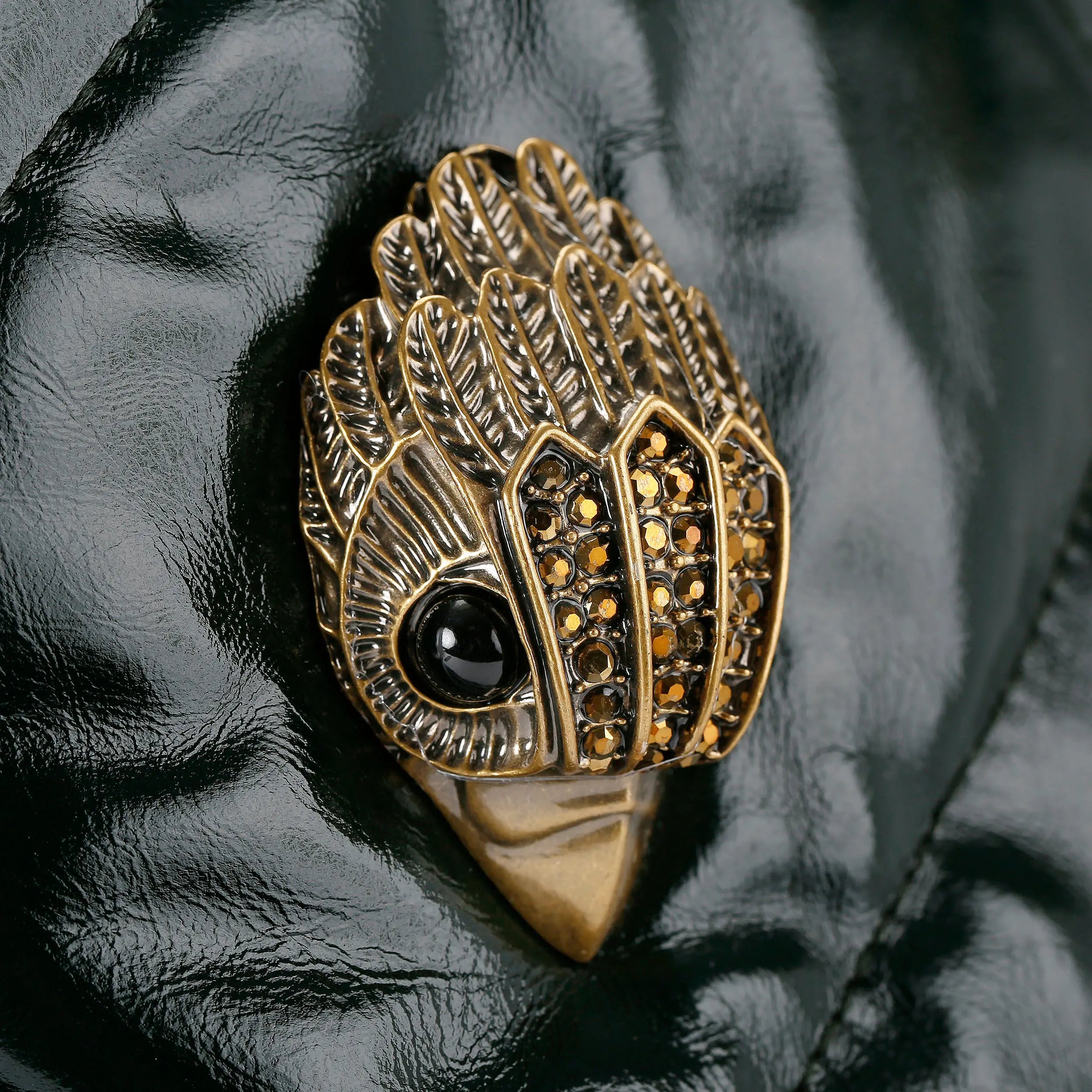 This Medium Kensington Puff Shopper purse comprises of three compartments. The exterior features the iconic Kensington weave with a large antiqued brass eagle head on the front.