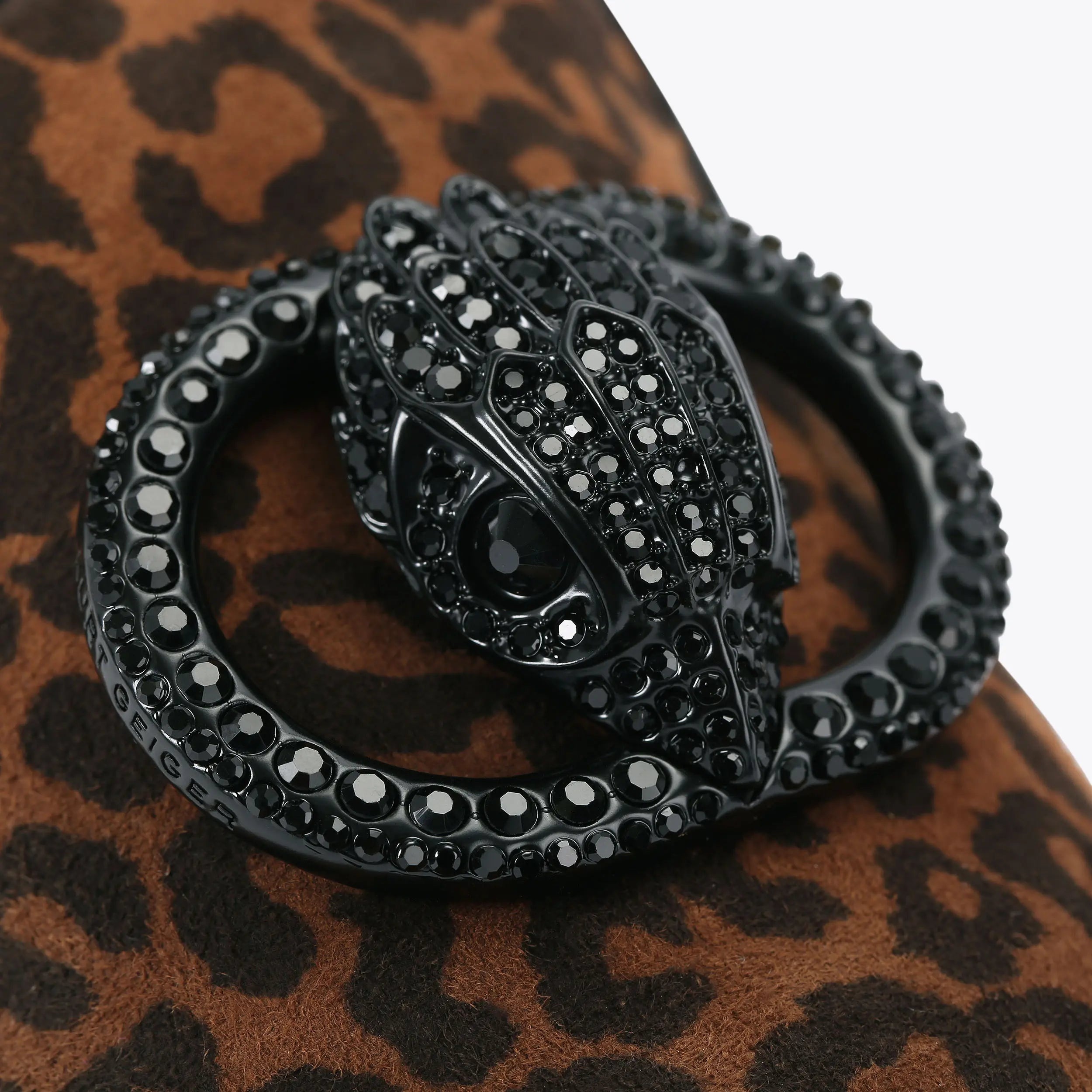 The Chelsea Point Slip On is a leopard printed suede loafer with pointed toe and supple heel to be worn as a mule or full loafer. There is a crystal embellished black oval trim with central eagle head sat upon the toe.