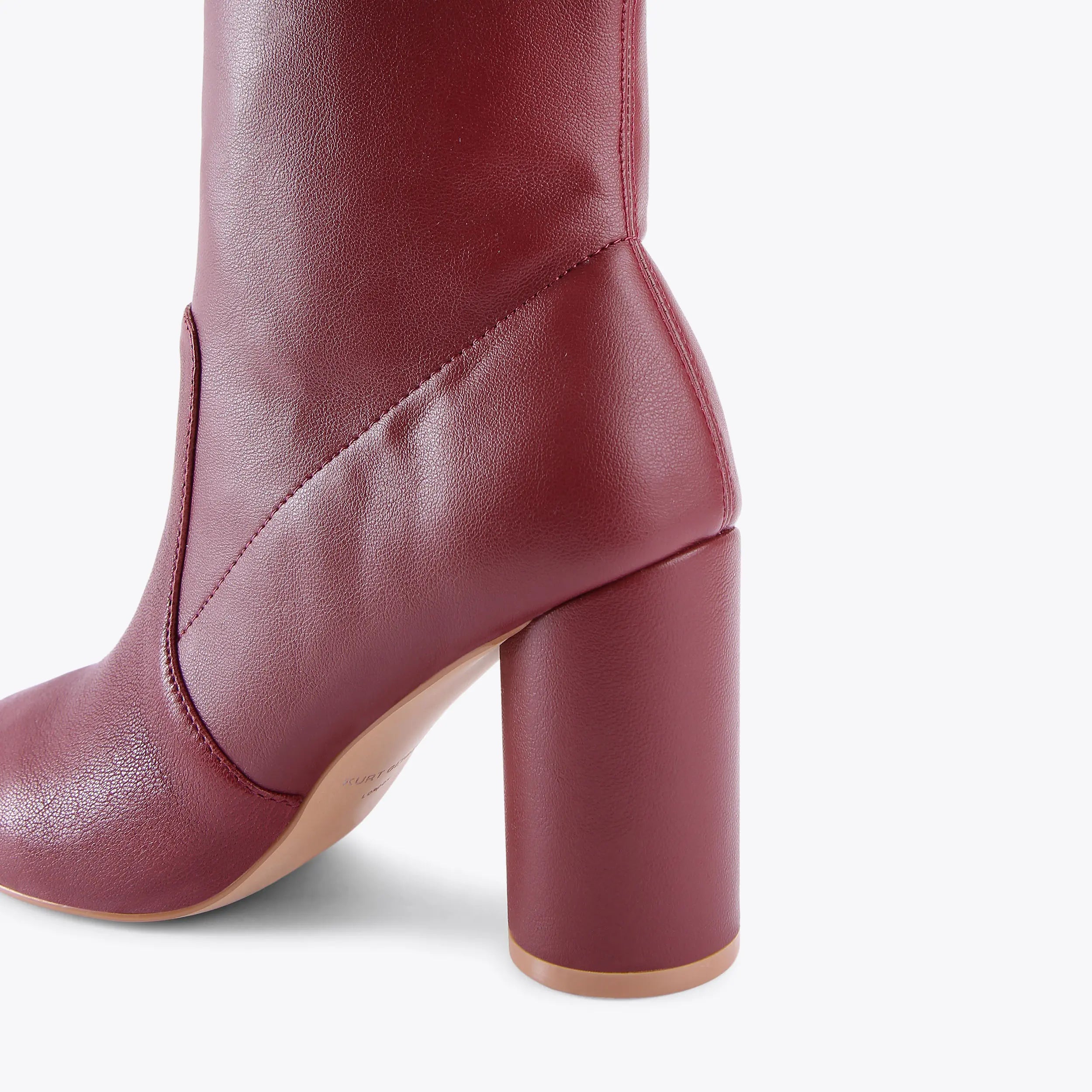 This Langley Round Ankle Boot features a wine upper crafted from a soft leather. The heel is rounded matching the toe shape.