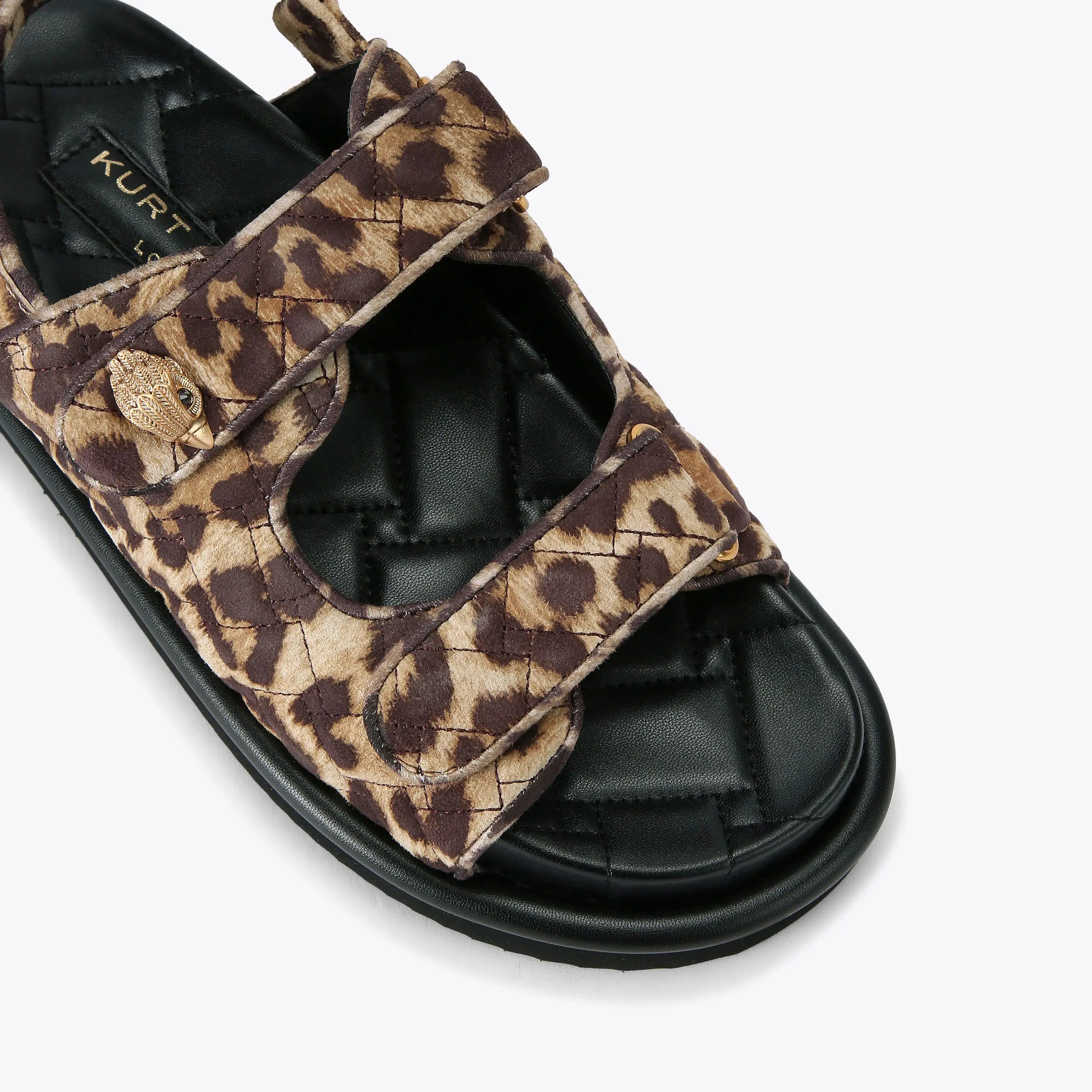 The Orson sandal features a soft suede leather upper with weave quilting pattern. The straps are velcro with a brushed gold eagle head emblem sat on top.