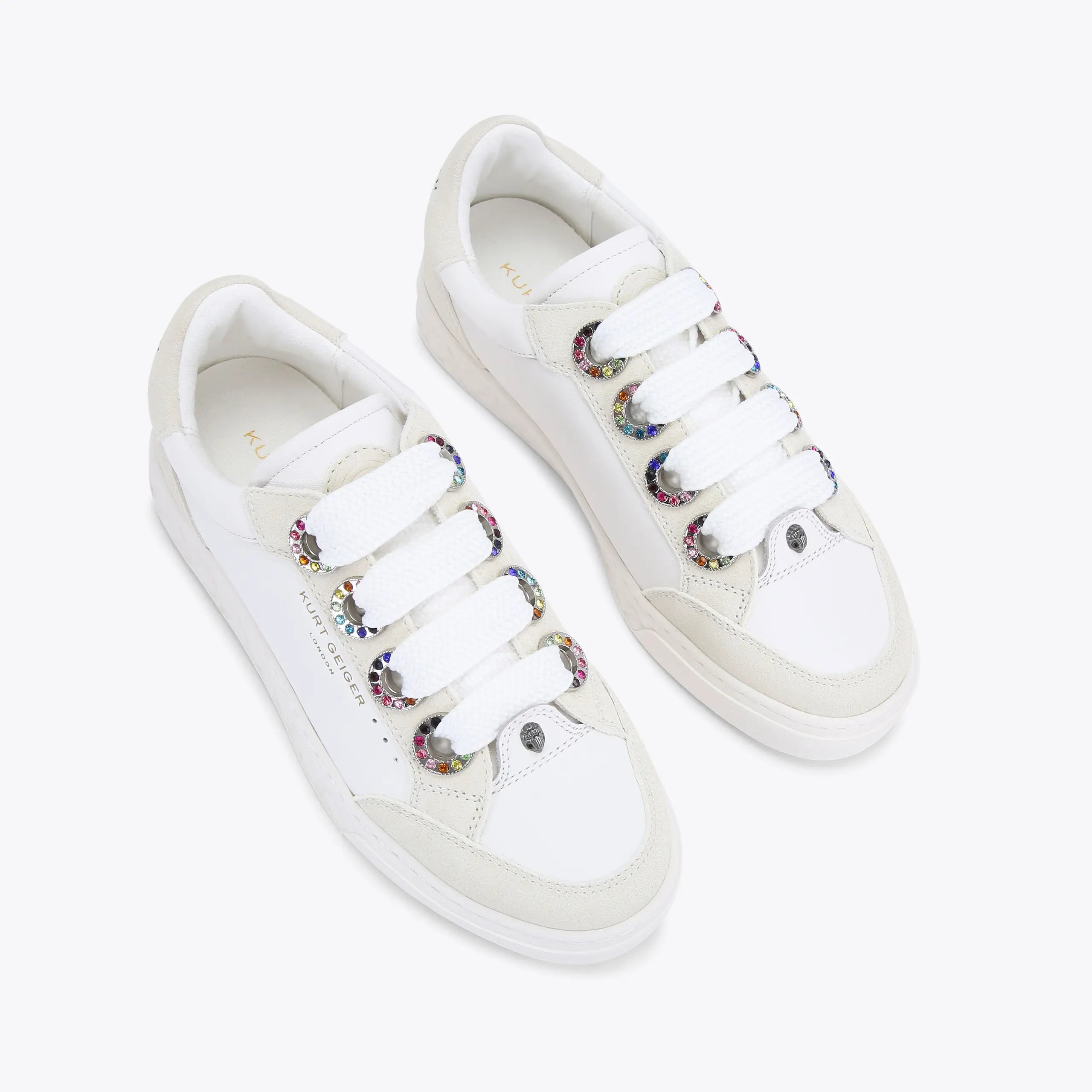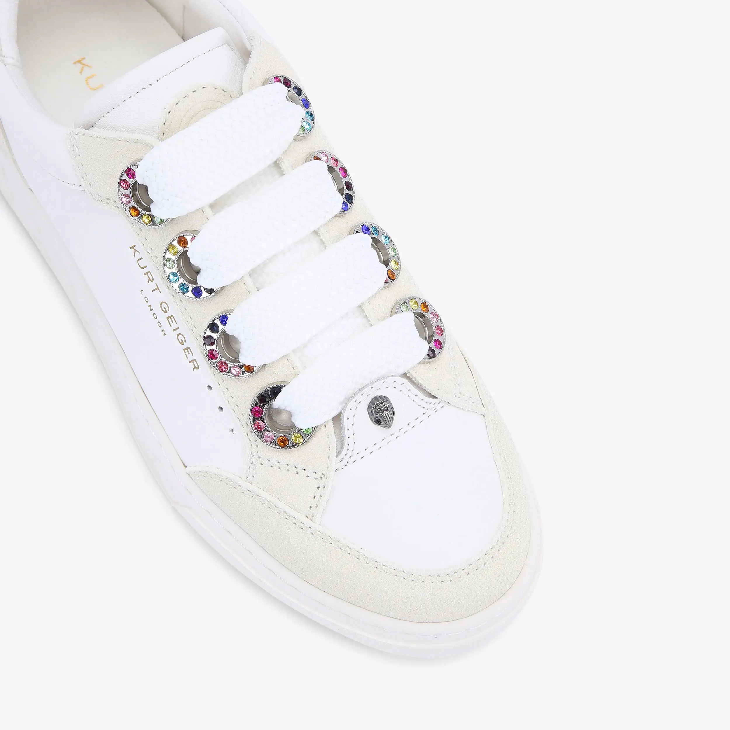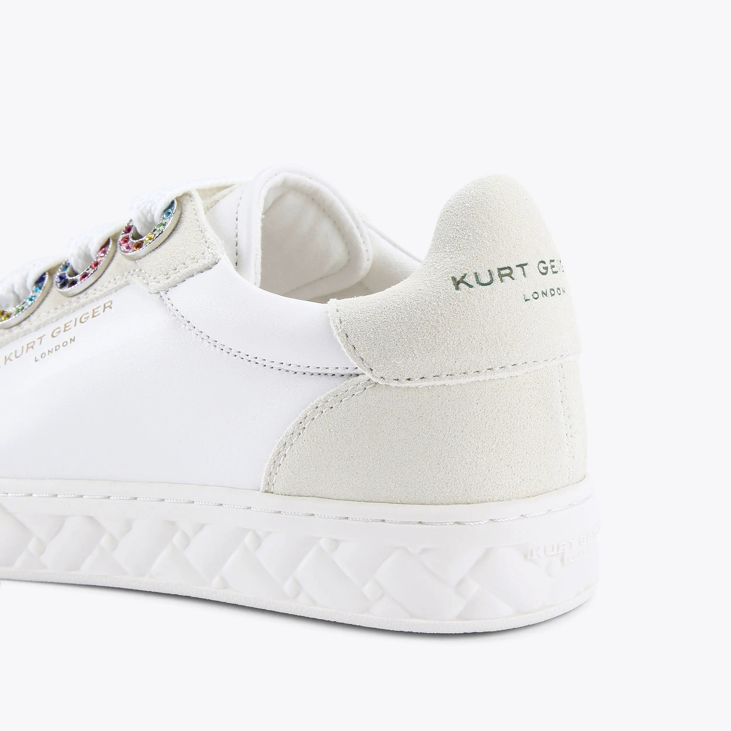 This Kensington Slim Capsule sneaker features statement eyelet details with multi-colour crystals. There is a micro antiqued silver eagle head emblem on the toe.