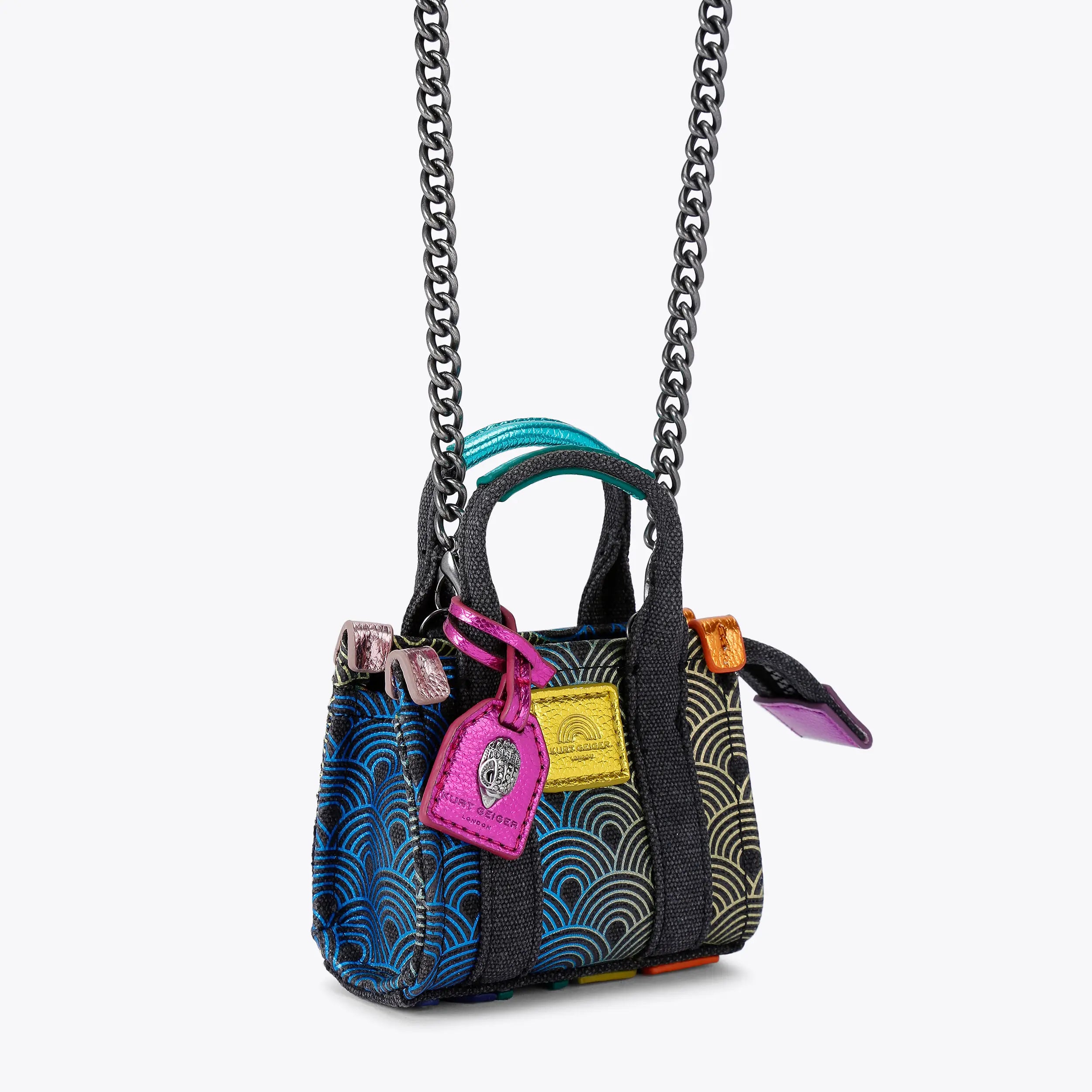 This Micro Southbank Tote features the rainbow printed exterior seen across the Southbank collection. There is a metallic pink tag with antiqued silver eagle head on the luggage tag.