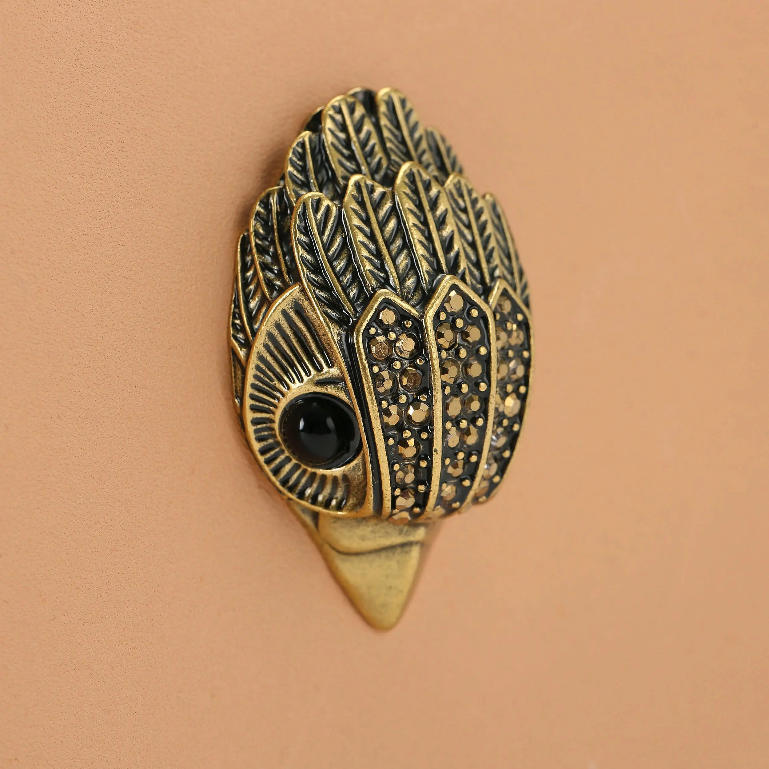 This Bond Shoulder Purse features a taupe Vachetta leather exterior. There is an antiqued brass eagle head on the front.