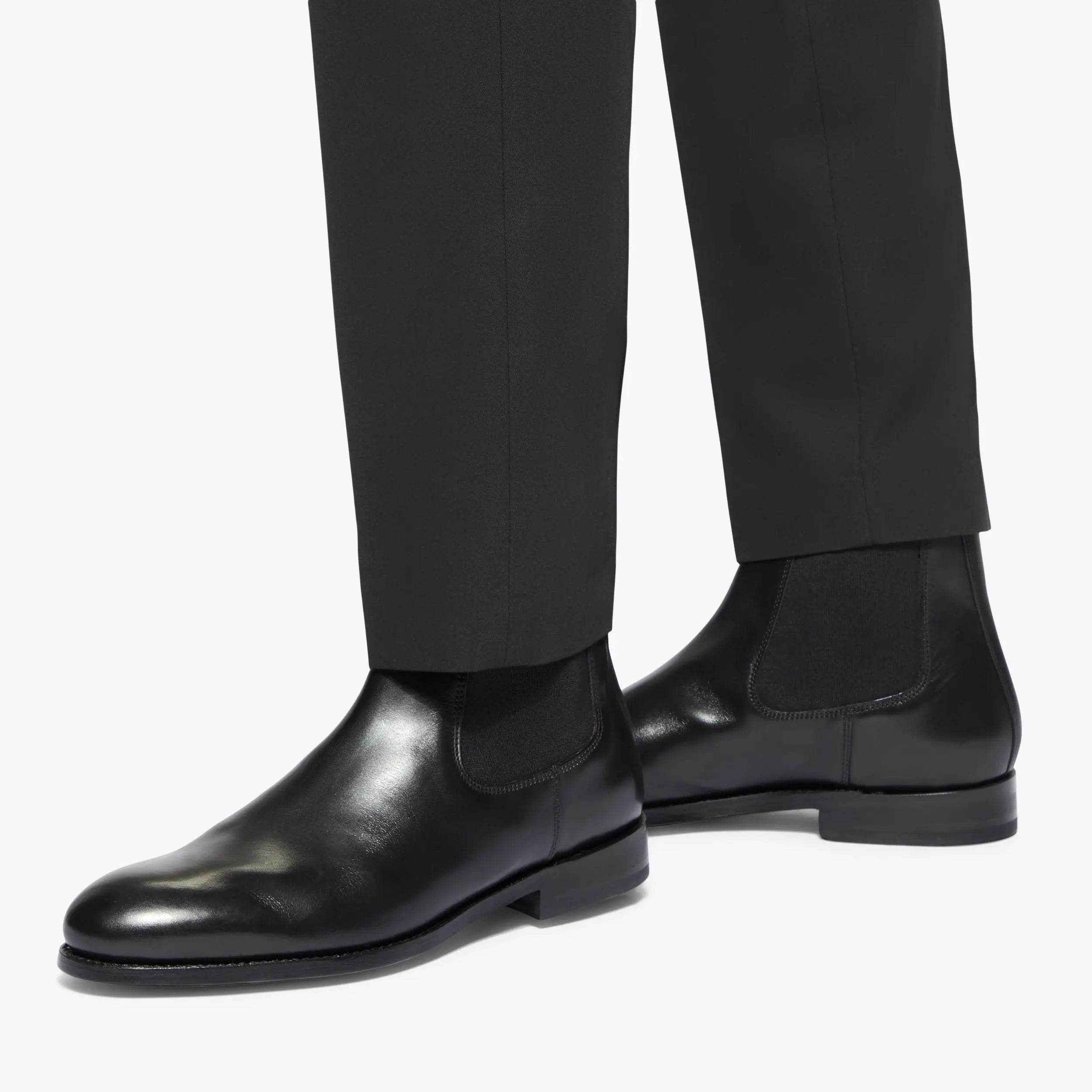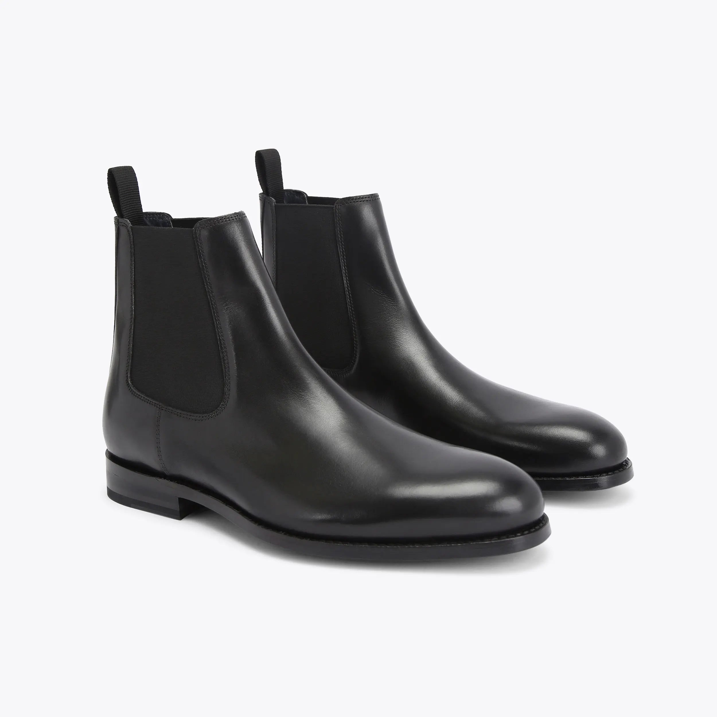 This Sloane Chelsea boot features a black leather upper, leather lining and leather sole with Goodyear welted construction for supreme durability and comfort. Built on a custom designed KGL last for a classic look with a modern twist. This boot can be re-soled to extend their lifespan even further.