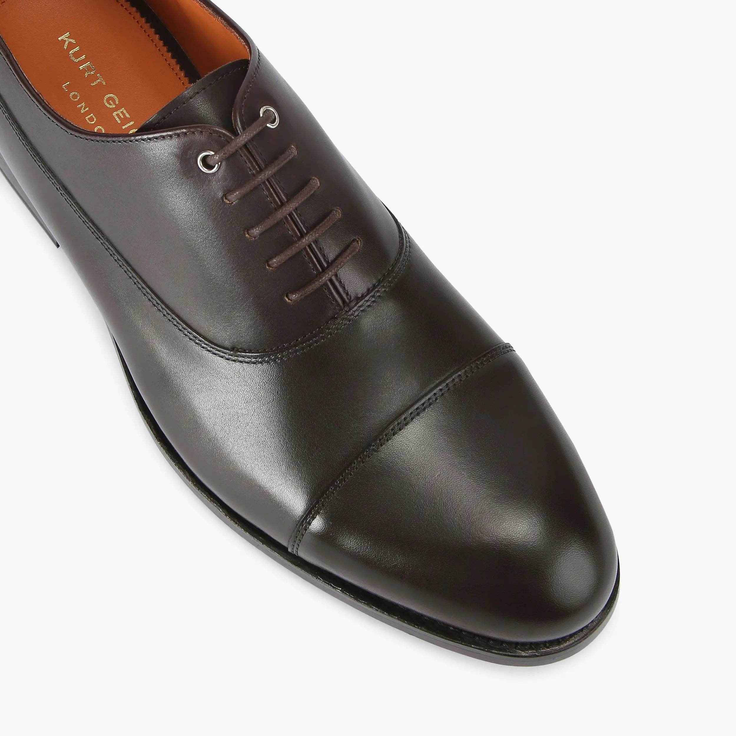 This Sloane Oxford shoe features a dark brown leather upper, leather lining and leather sole with Goodyear welted construction for supreme durability and comfort. Built on a custom designed KGL last for a classic formal look with a modern twist. These shoes can be re-soled to extend their lifespan even further.