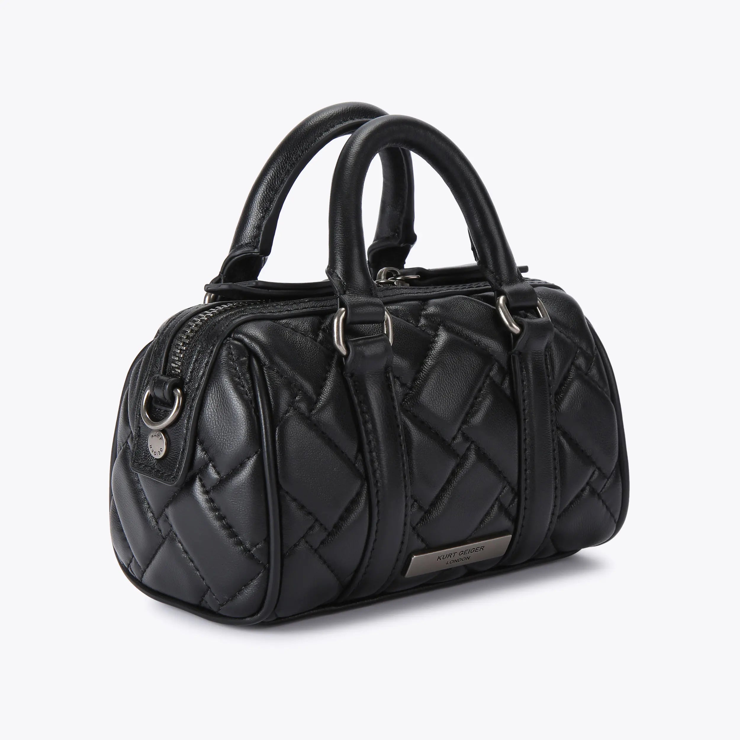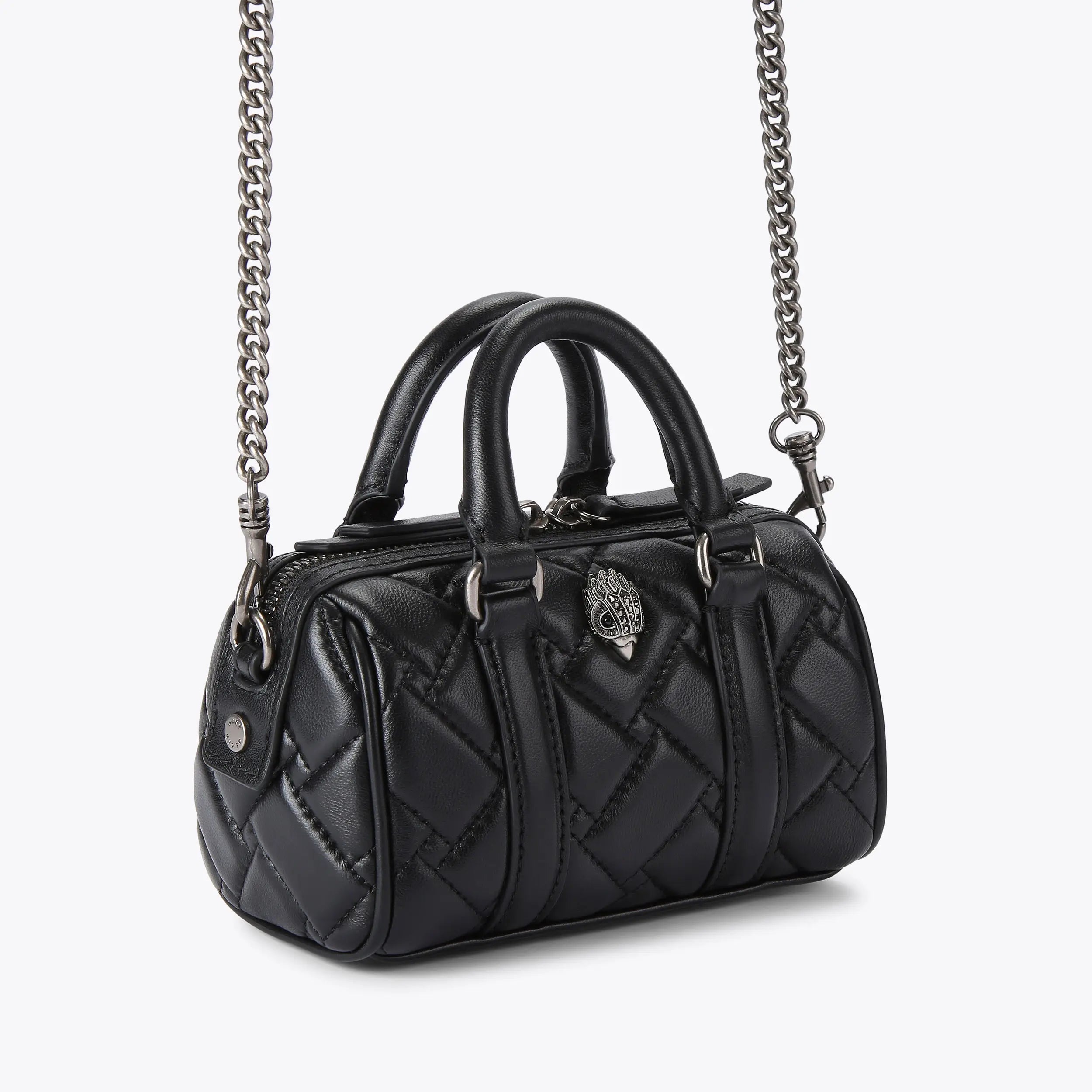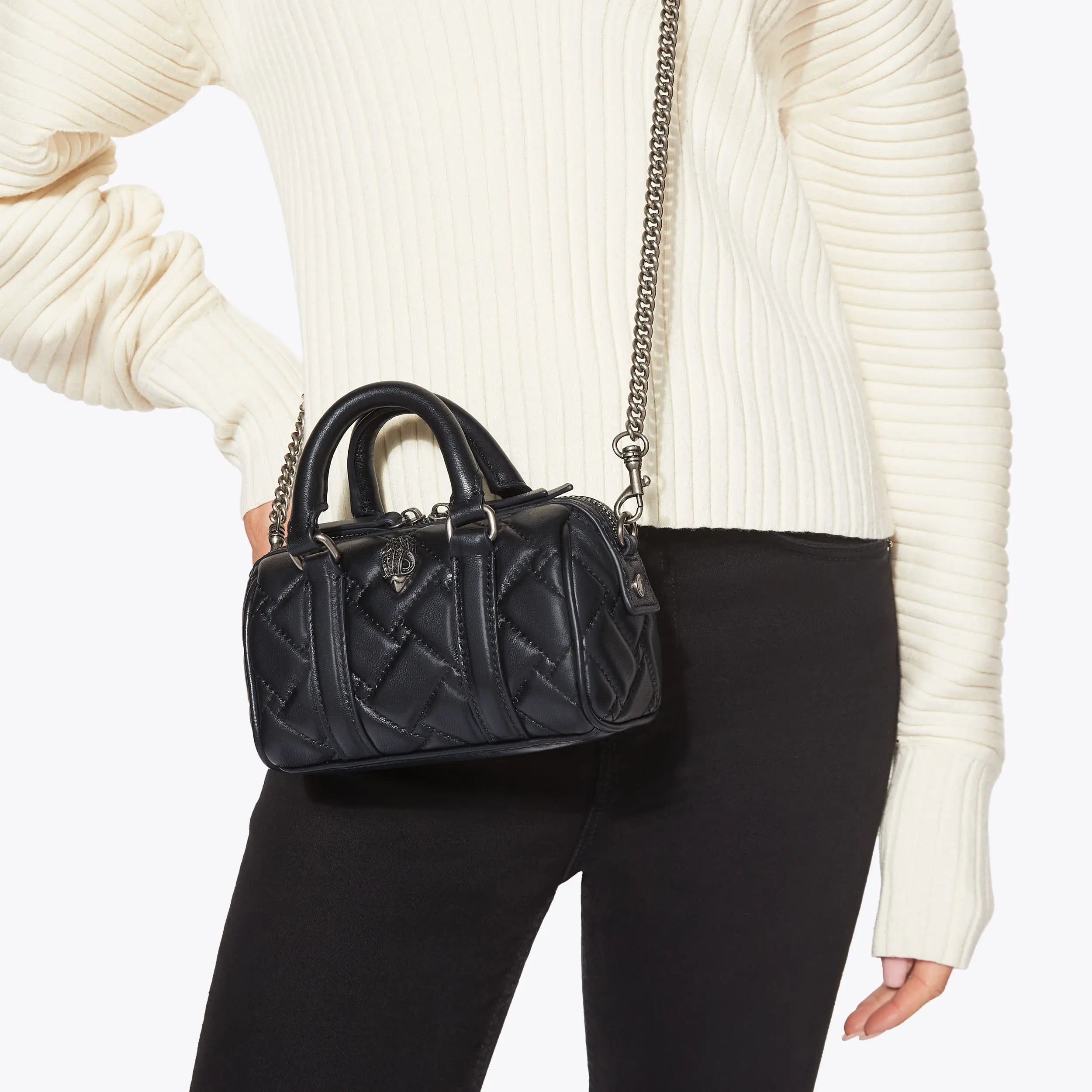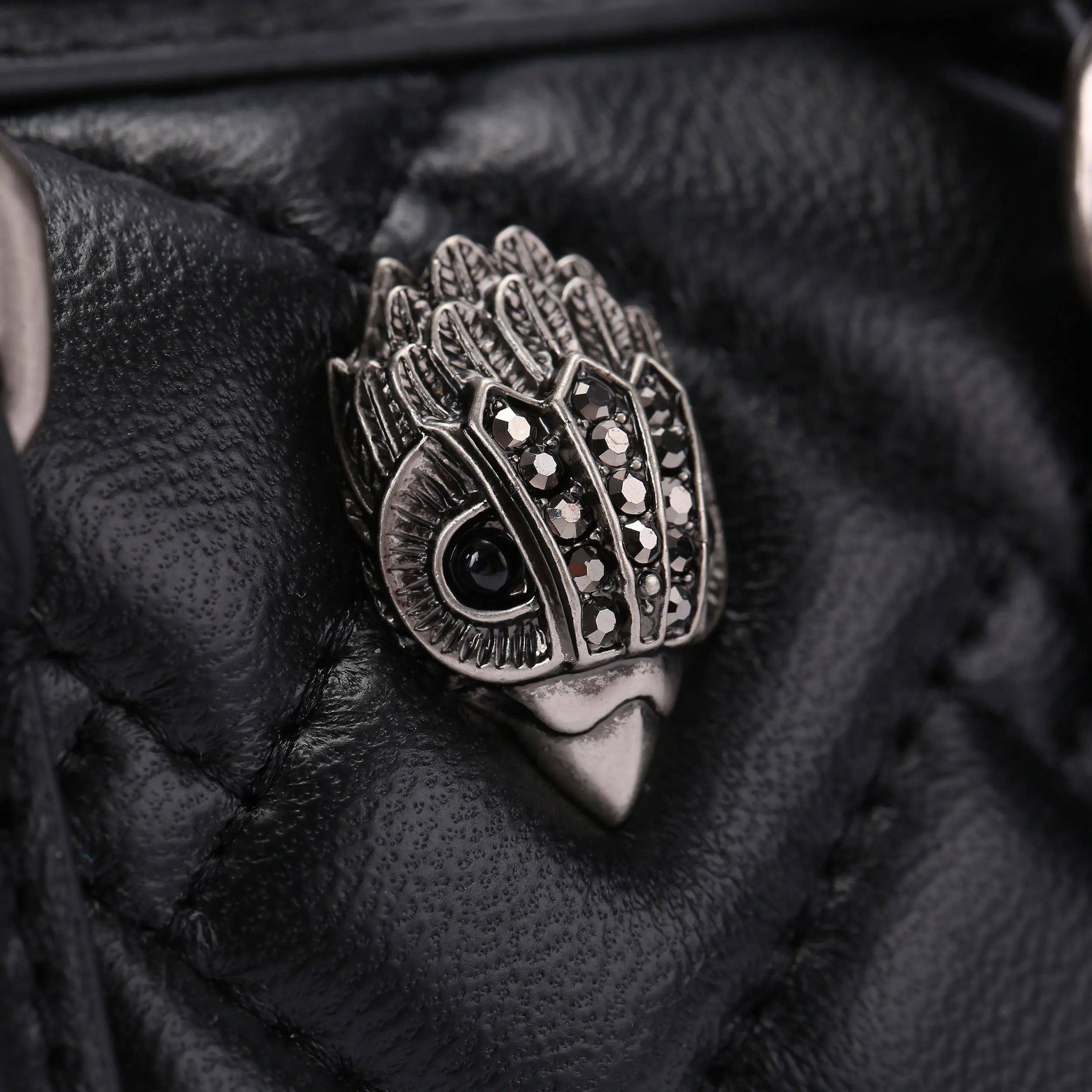 The Extra Small Kensington Boston is a bowling style bag crafted from a soft lambskin leather. There is an antiqued silver eagle head on the front of the bag.