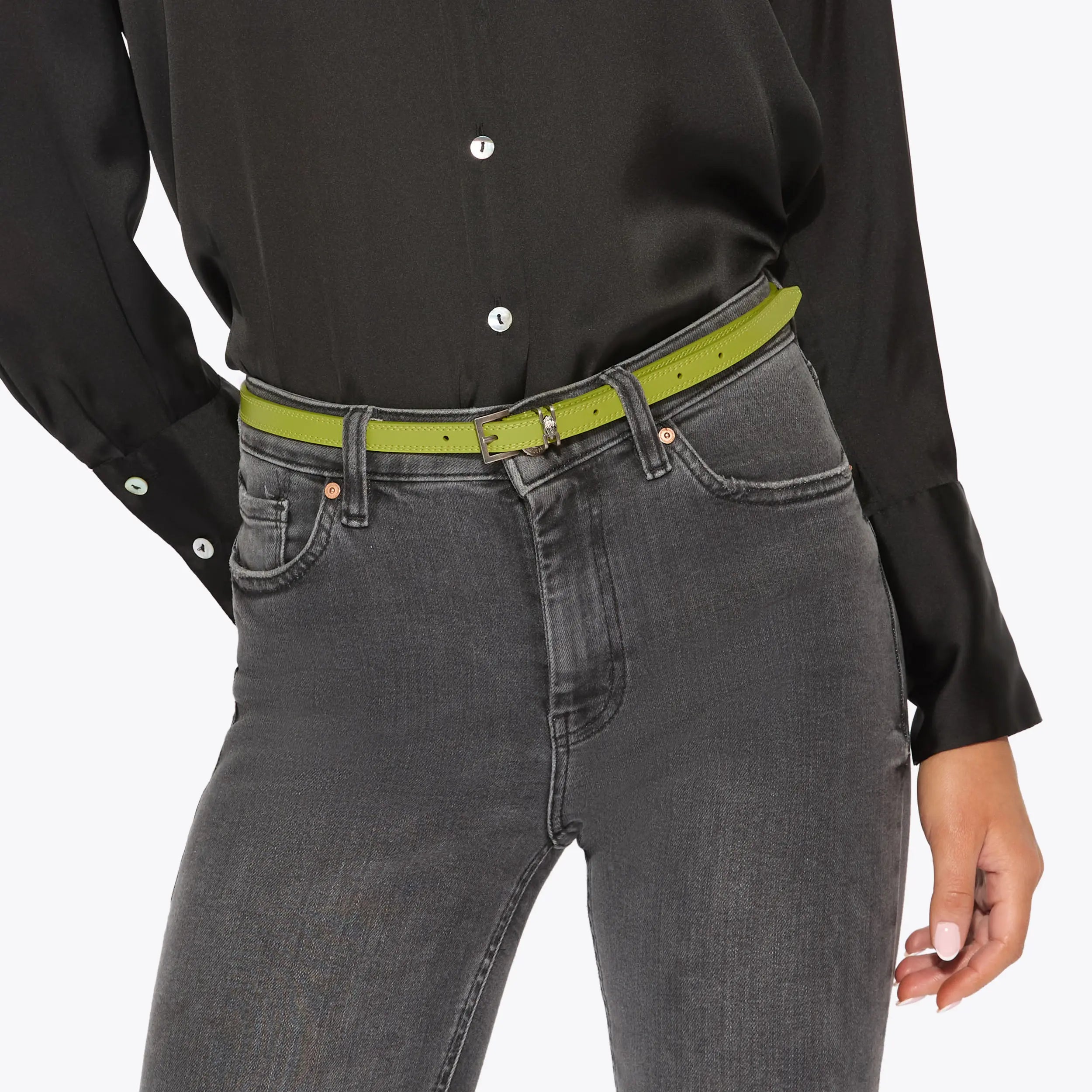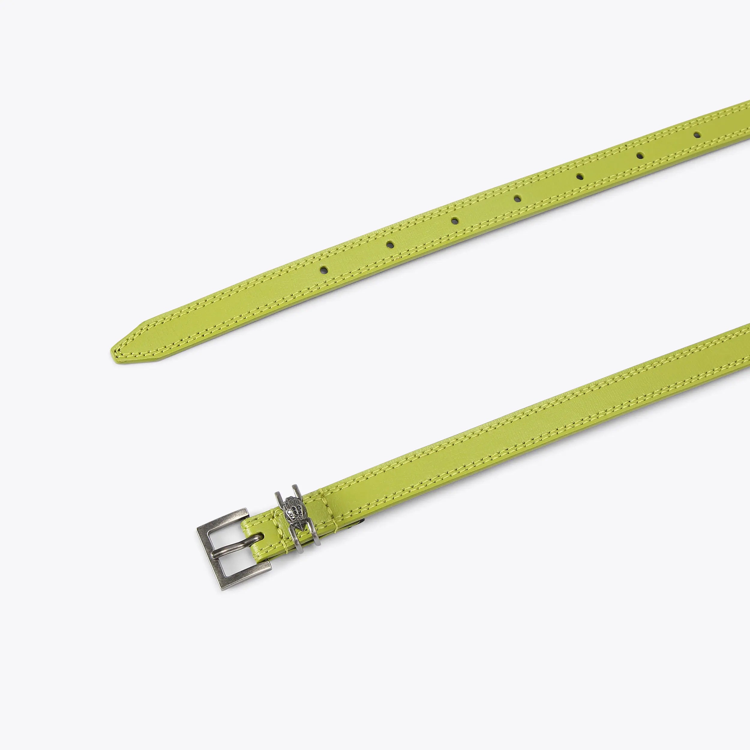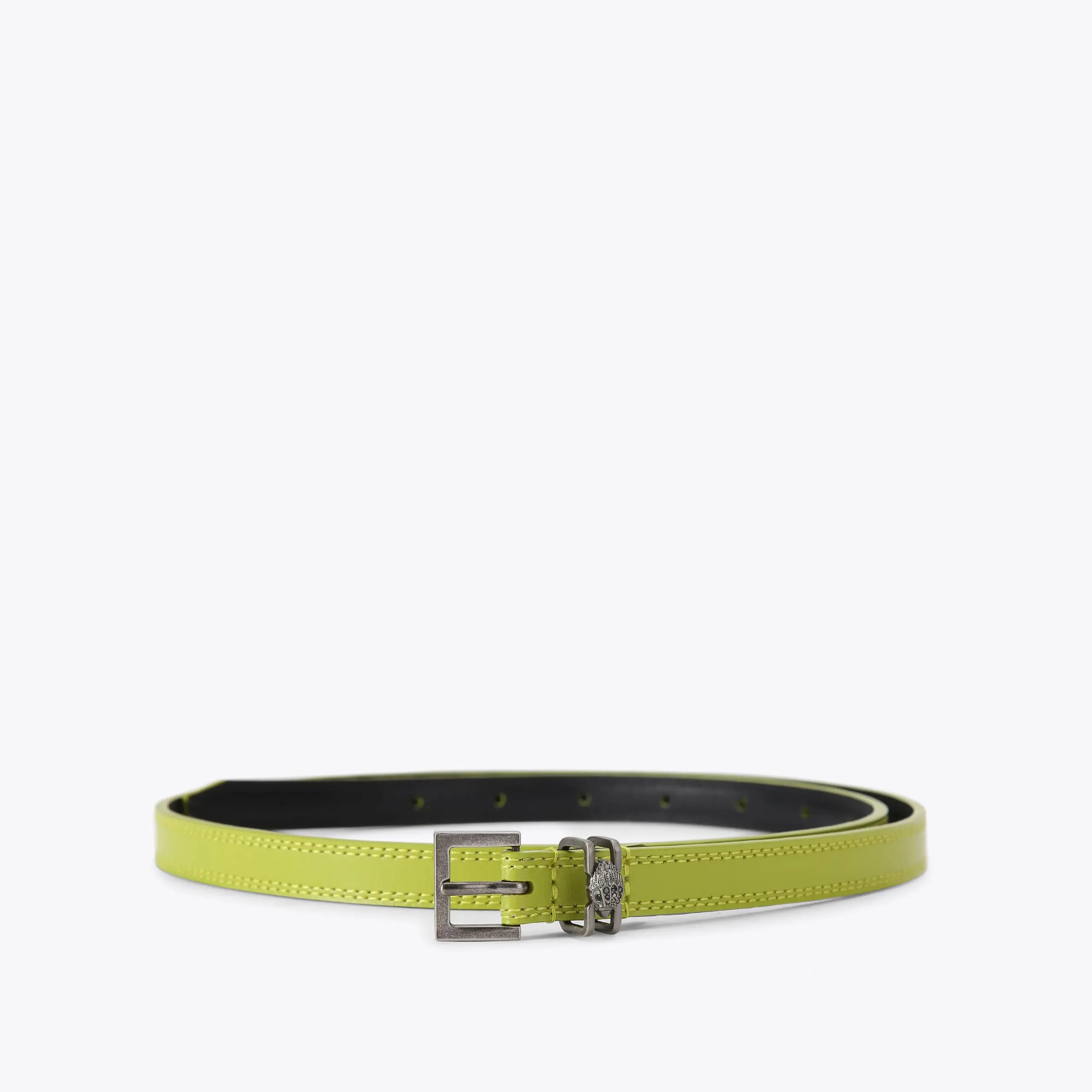 This Shoreditch Belt features a green leather belt band. The buckle is in an antiqued silver matching the small eagle head.