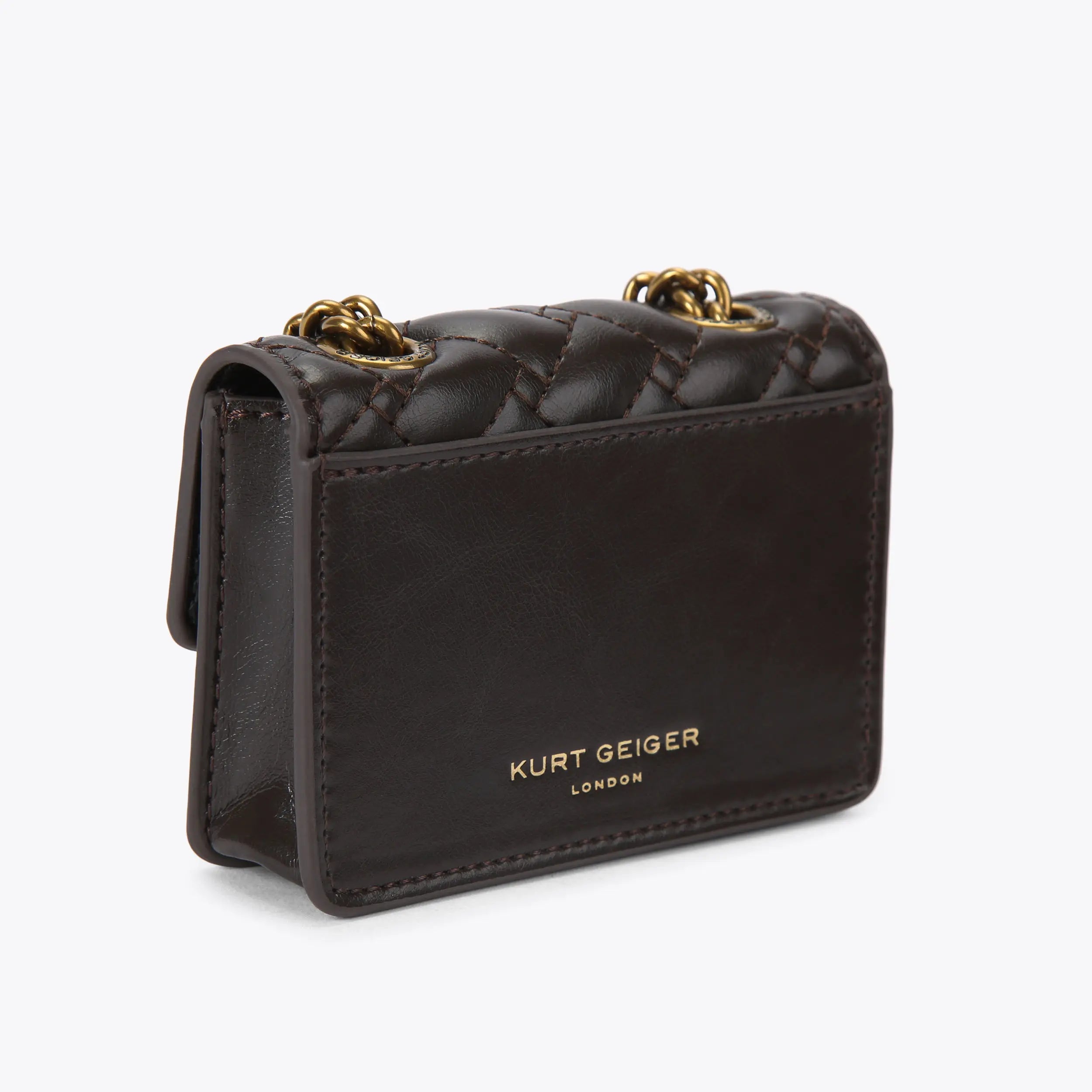 The Micro Kensington Bag is crafted from a soft leather alternative with overstitch quilting combining both weave and chevron patterns. The antiqued brass eagle head features rainbow coloured crystals and black bead eyes on the front flap.