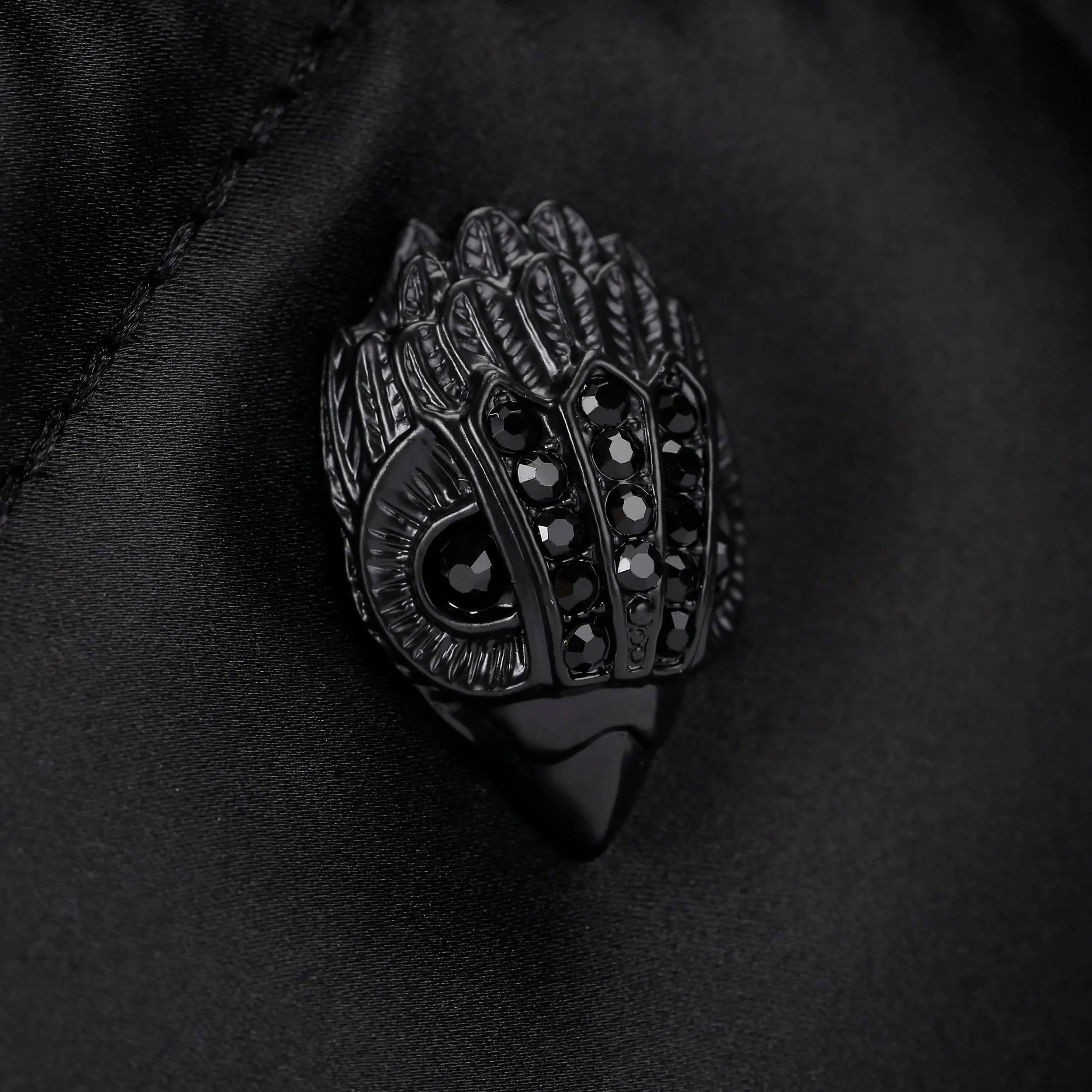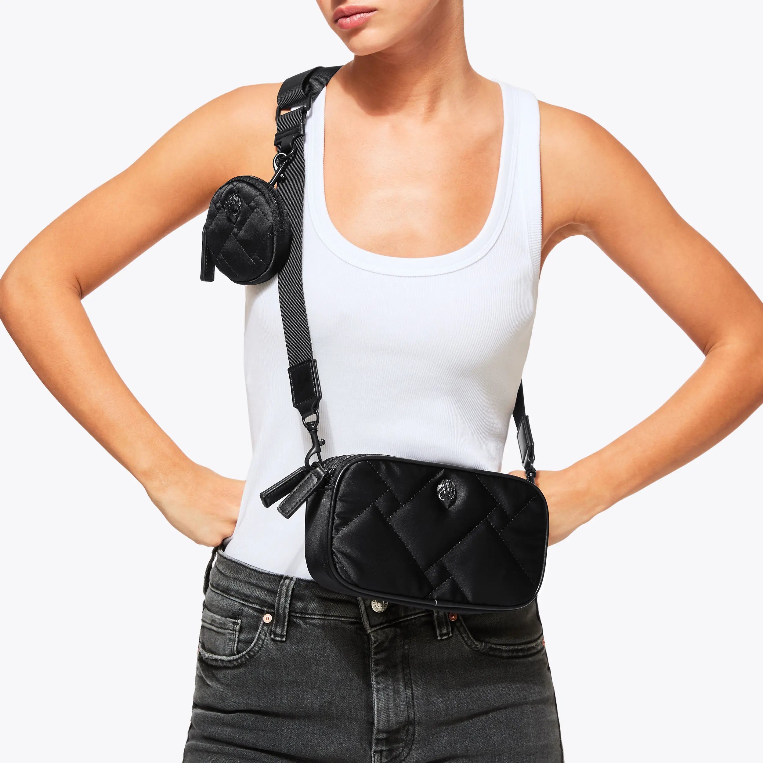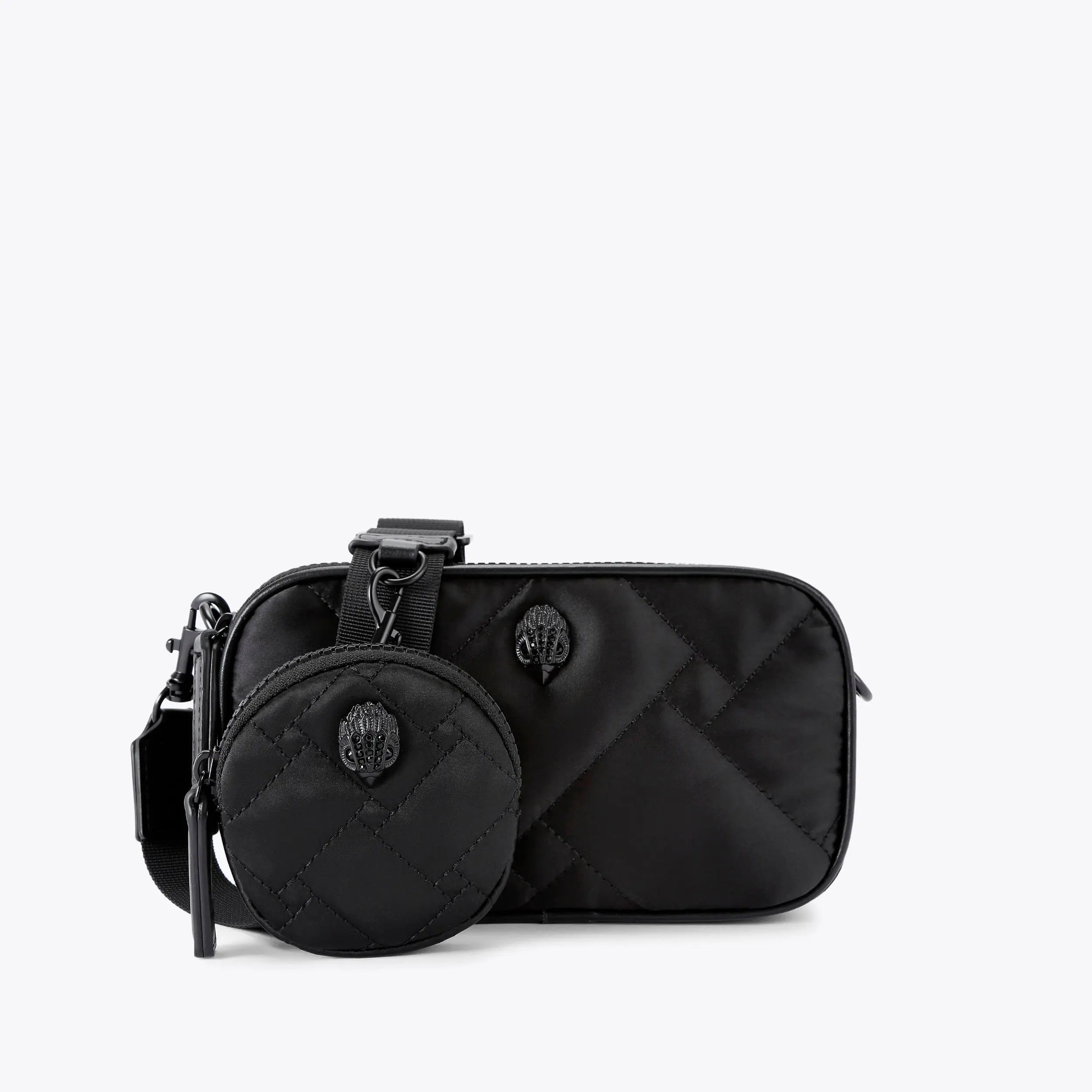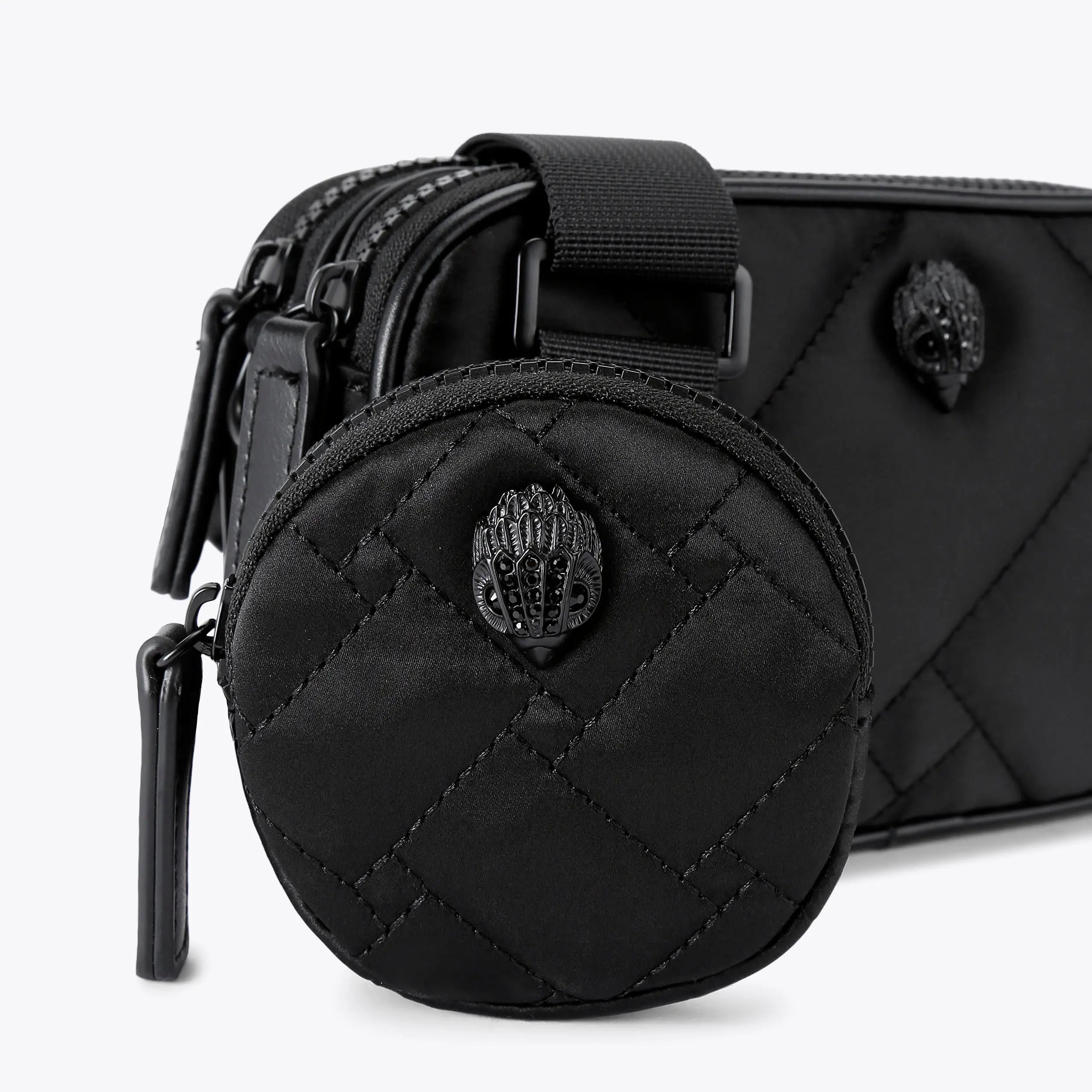 The Small Kensington Camera is crafted from a black nylon fabric and features a black eagle head design. It also comes with a circular purse.