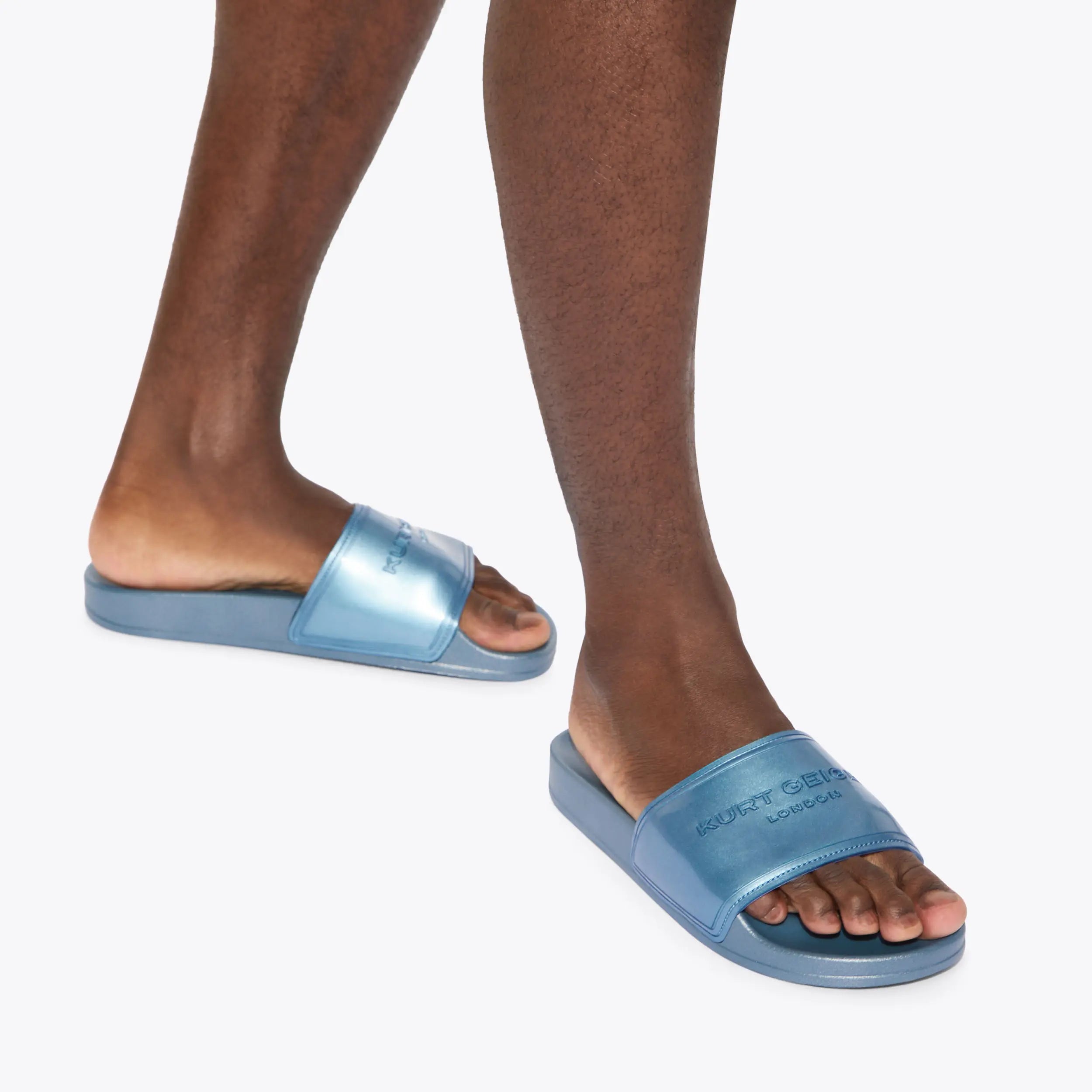 The blue Men's KGL Pool Slider feature a curved footbed in rubber for step by step comfort. The strap across the foot is adorned with a blue branding detail.