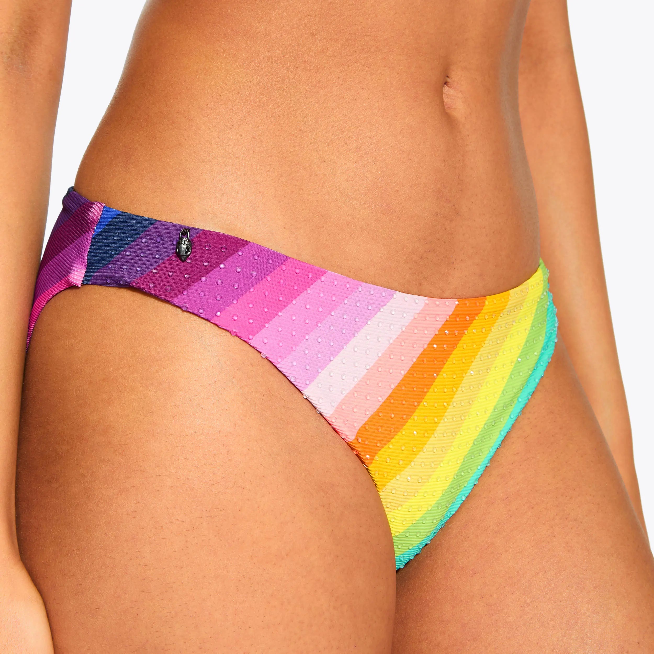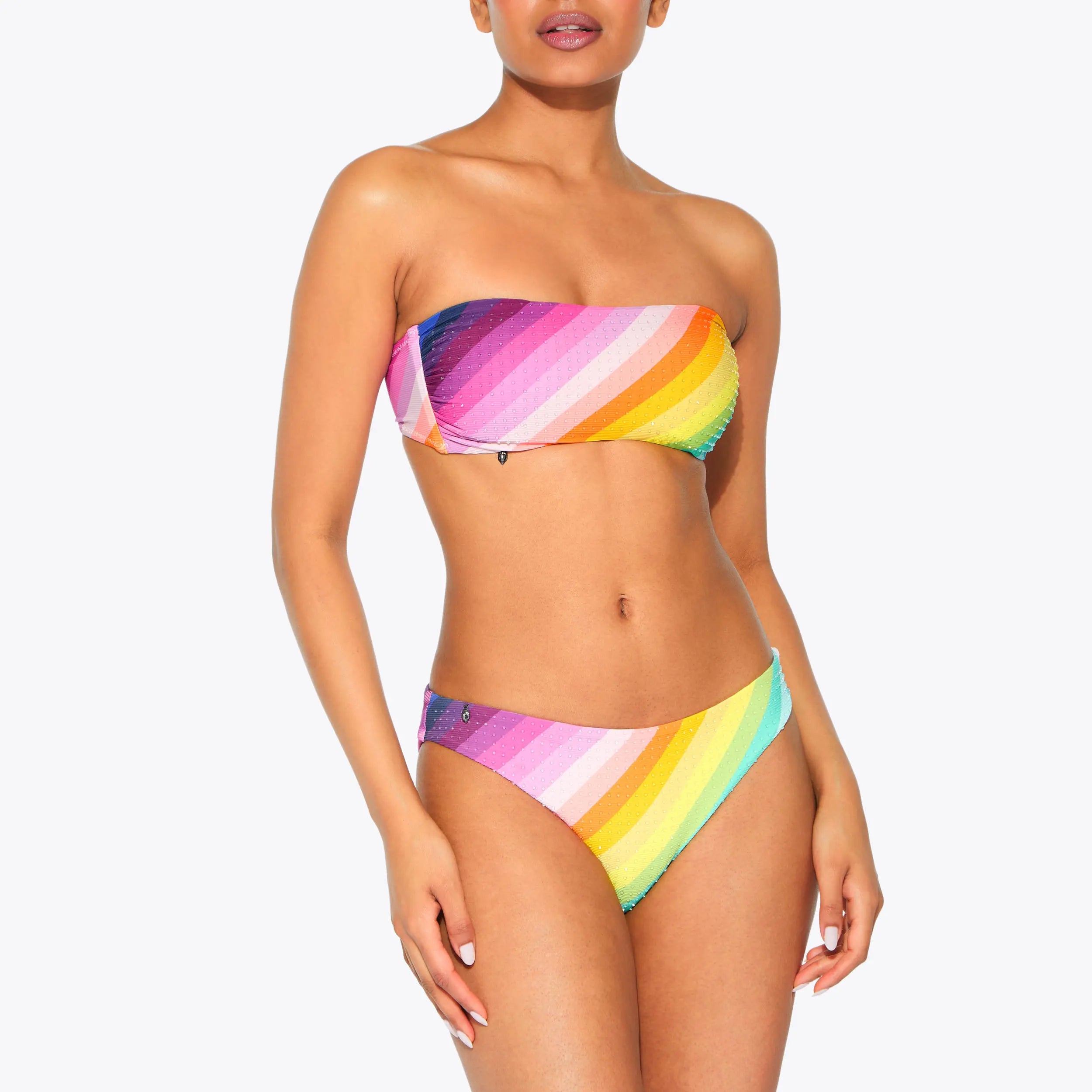 The Kensington Briefs arrive in a striped rainbow design which is embellished with clear crystals.