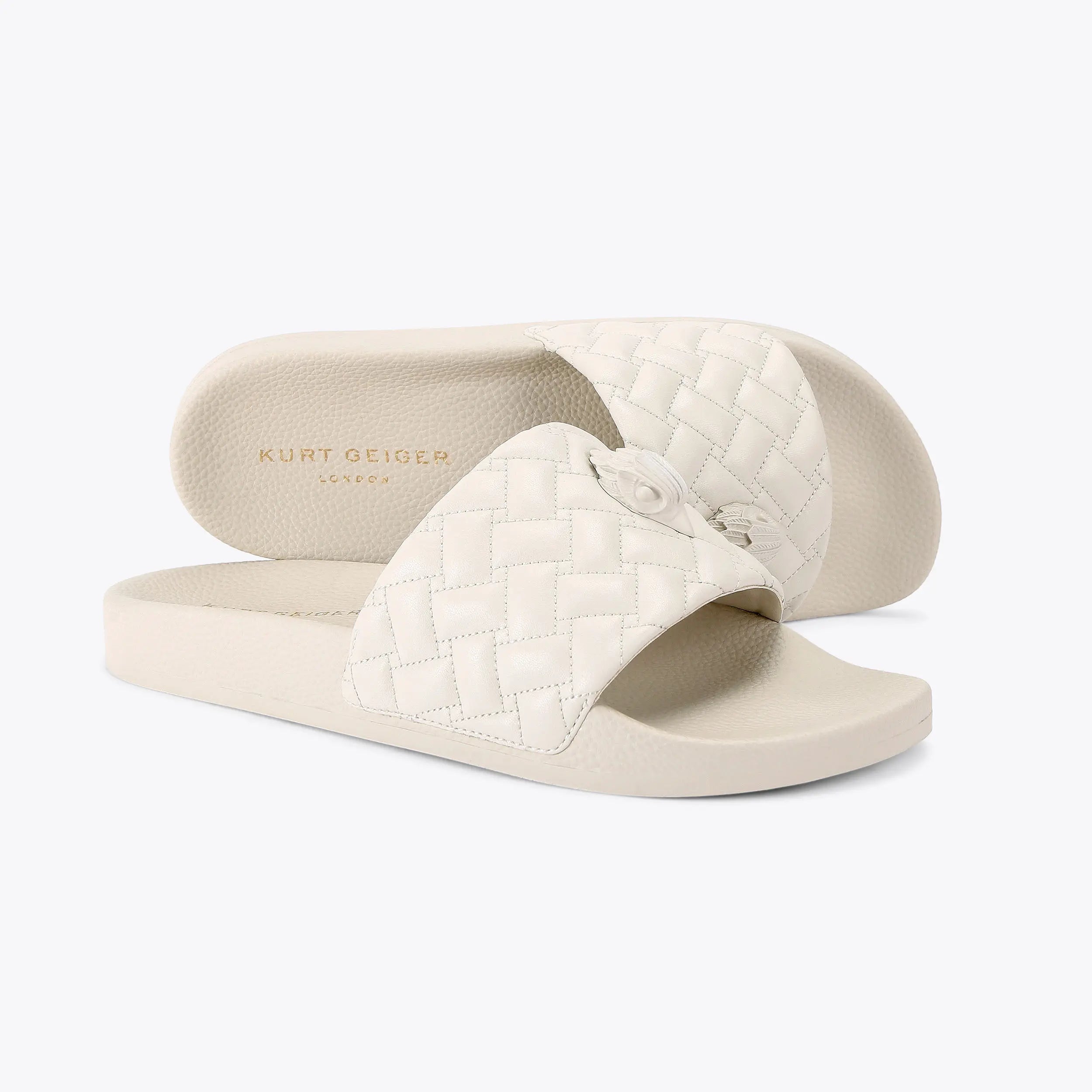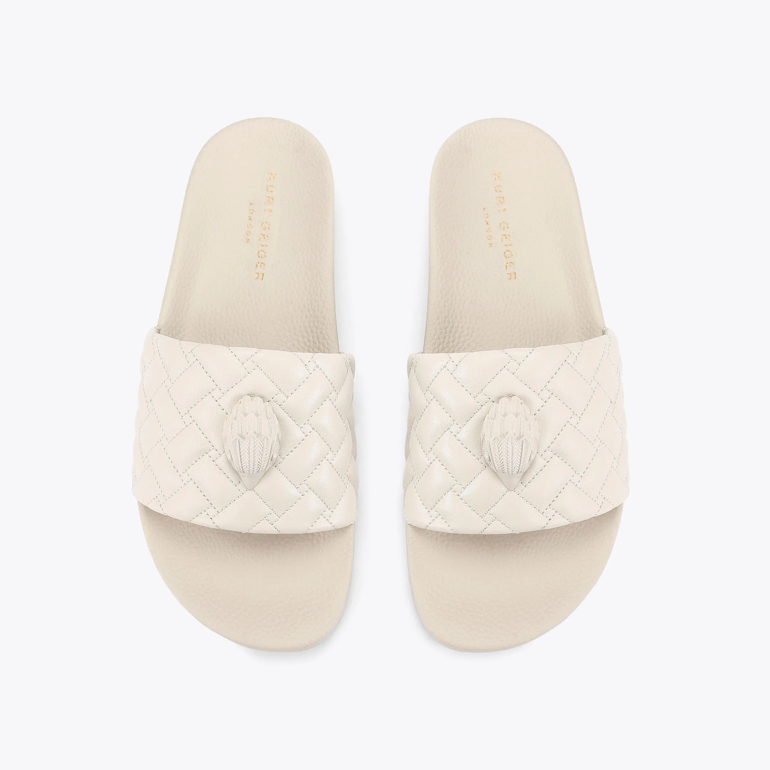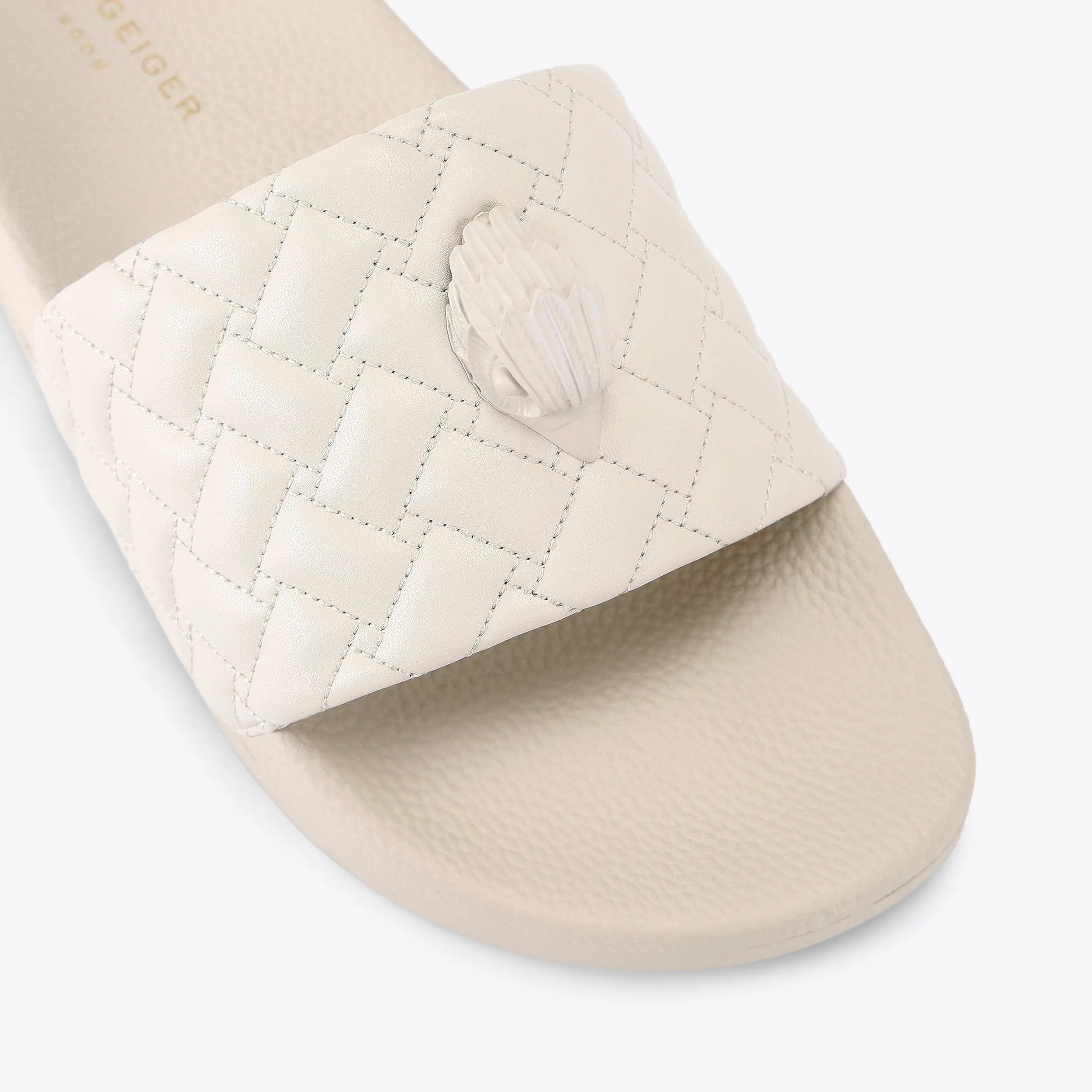 This Meena Eagle sandal arrives in bone with overstitch quilting on the strap. There is also a white eagle head sat on top of the strap.