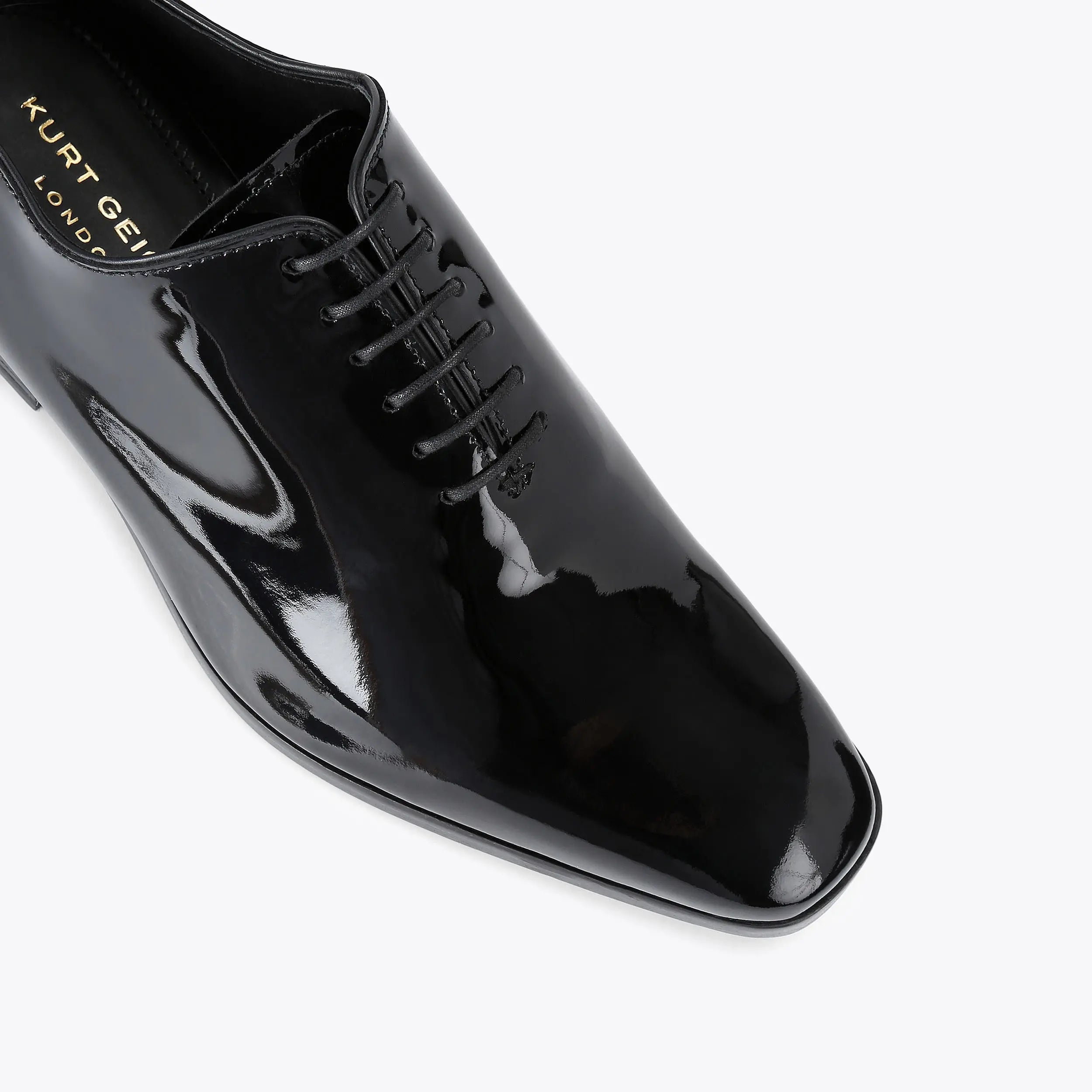 This Logan Oxford is a formal shoe crafted from a black patent leather. Built on a custom designed KGL last for a classic formal look with a modern twist. These shoes can be re-soled to extend their lifespan even further.
