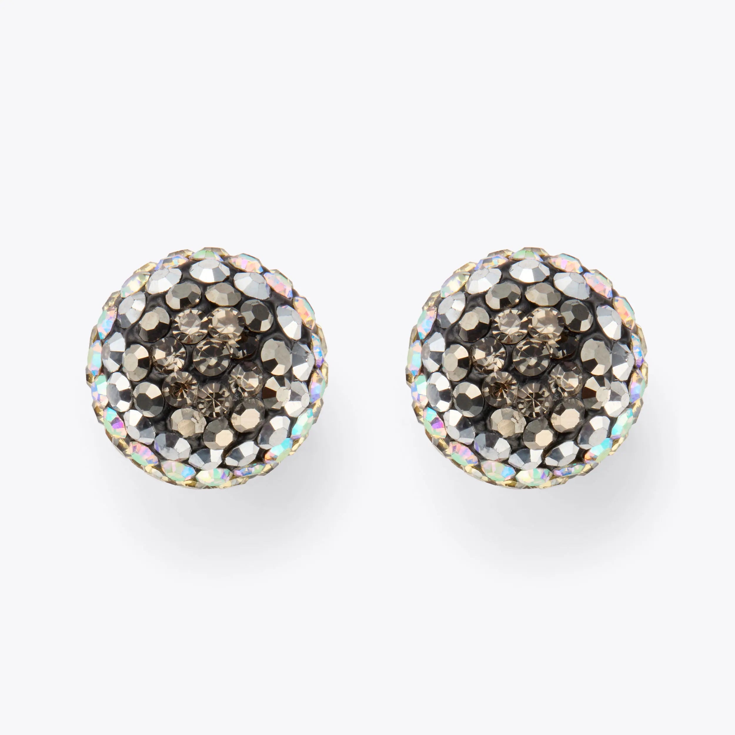 This pair of Pave Bubble Stud earrings are stud earrings embellished with neutral crystals. There is an antiqued brass eagle head as the backing.