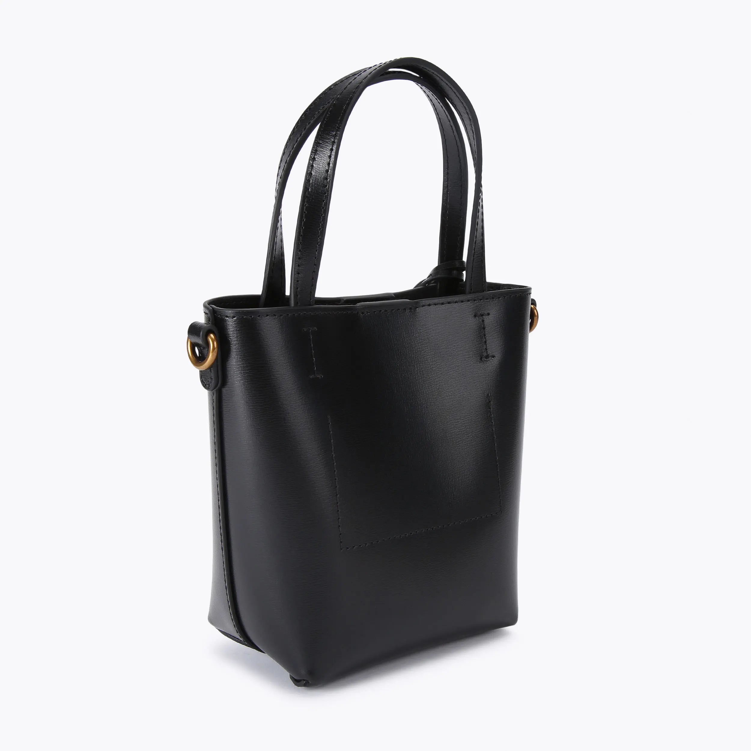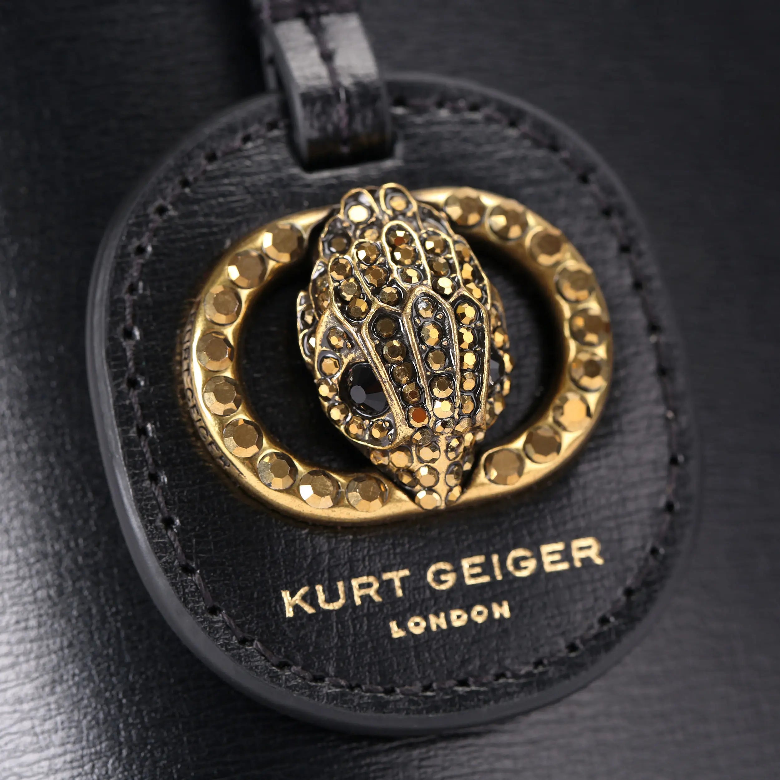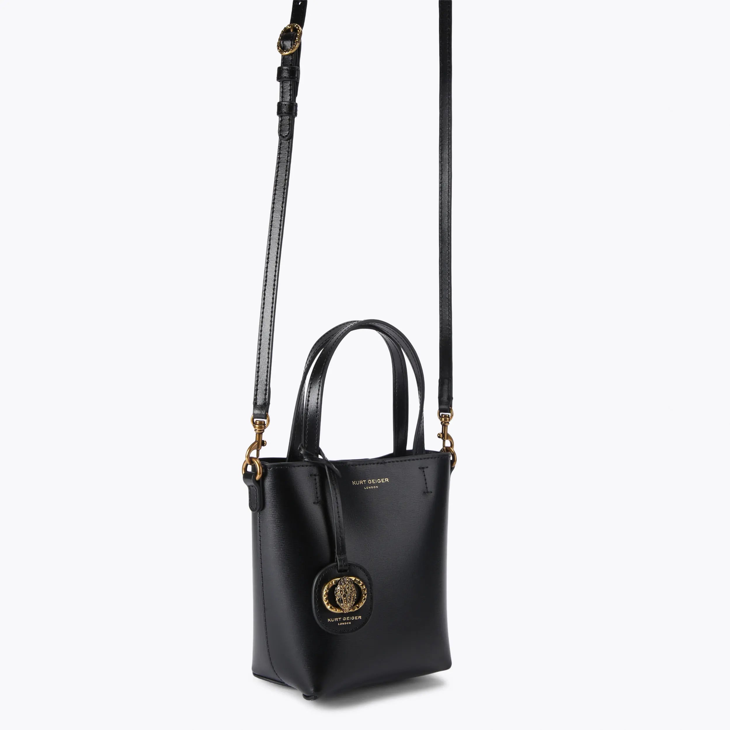 This Small Chelsea Shopper Bag arrives in a black leather. There is a luggage style tag attached to the top handles with antiqued brass oval trimmed eagle head.