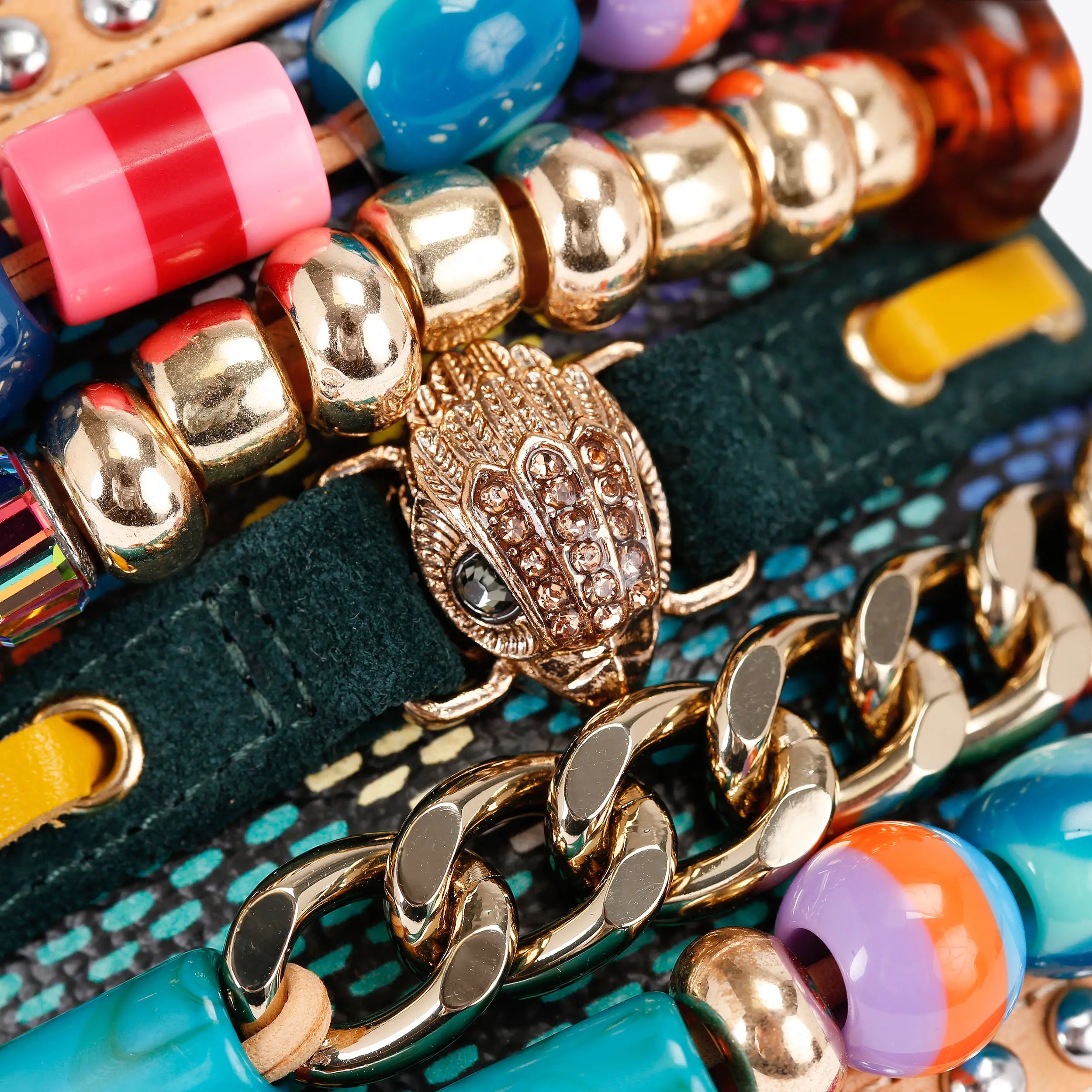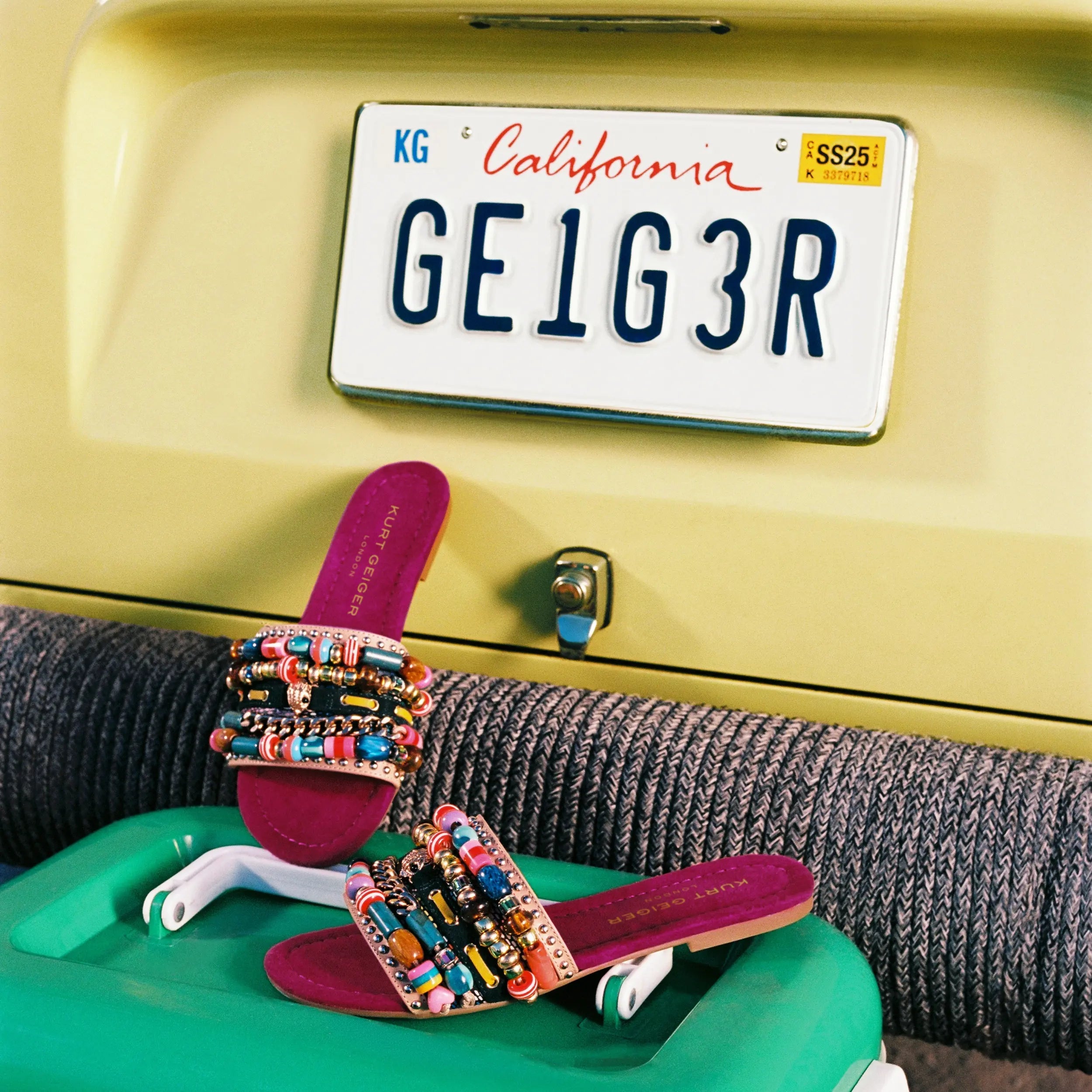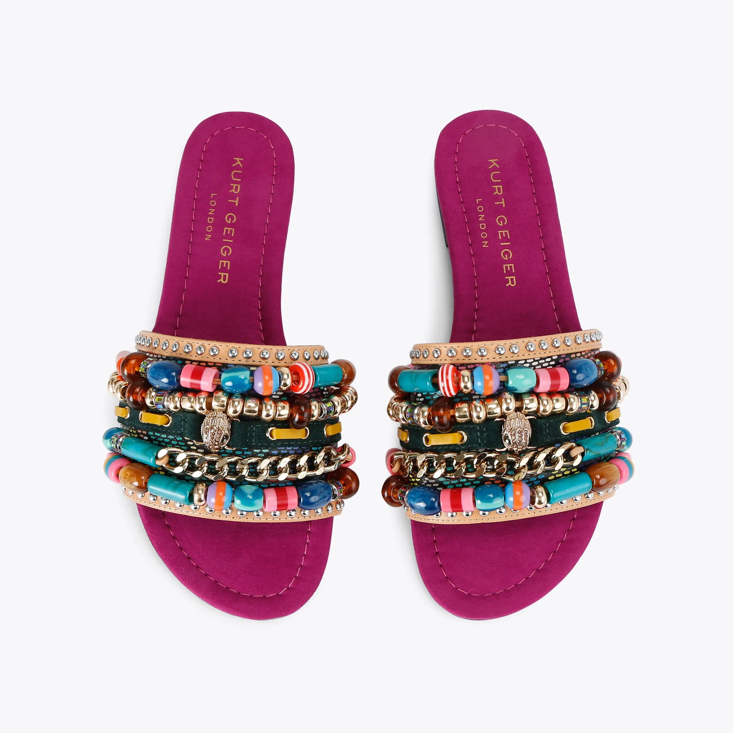 This Southbank Beaded Flat Sandal features a statement beaded upper including resin beads, studs and crystals. There is a gold eagle head on the toe strap.