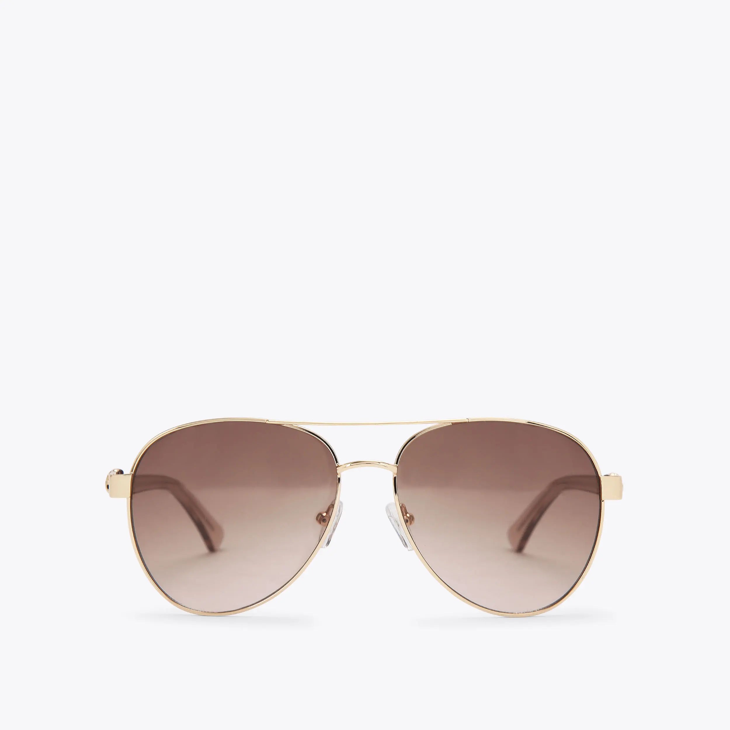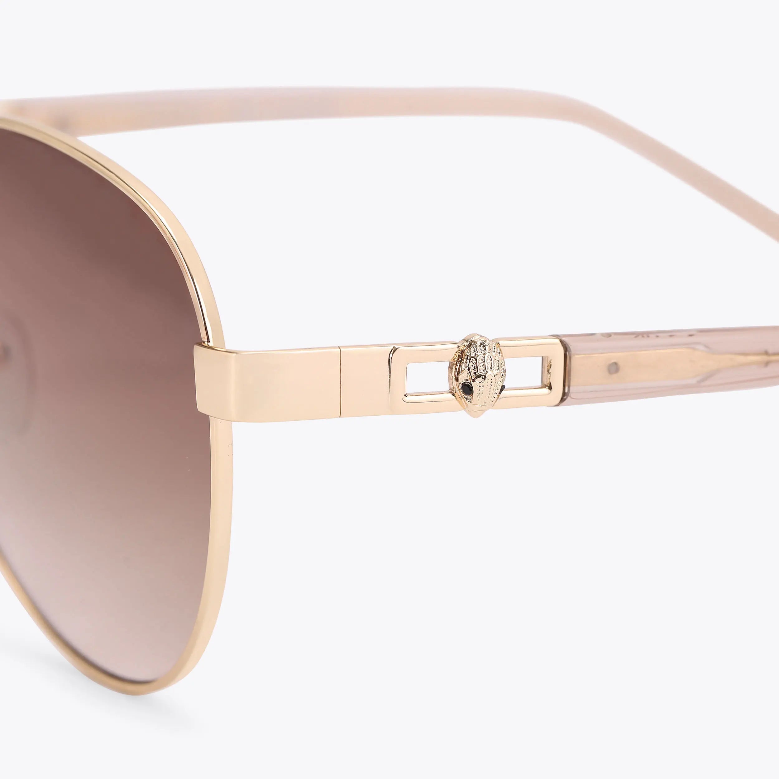 The Metal Regent Aviator Sunglasses arrive with gold aviator style frames. The arms are in black with micro eagle head emblems on each.
