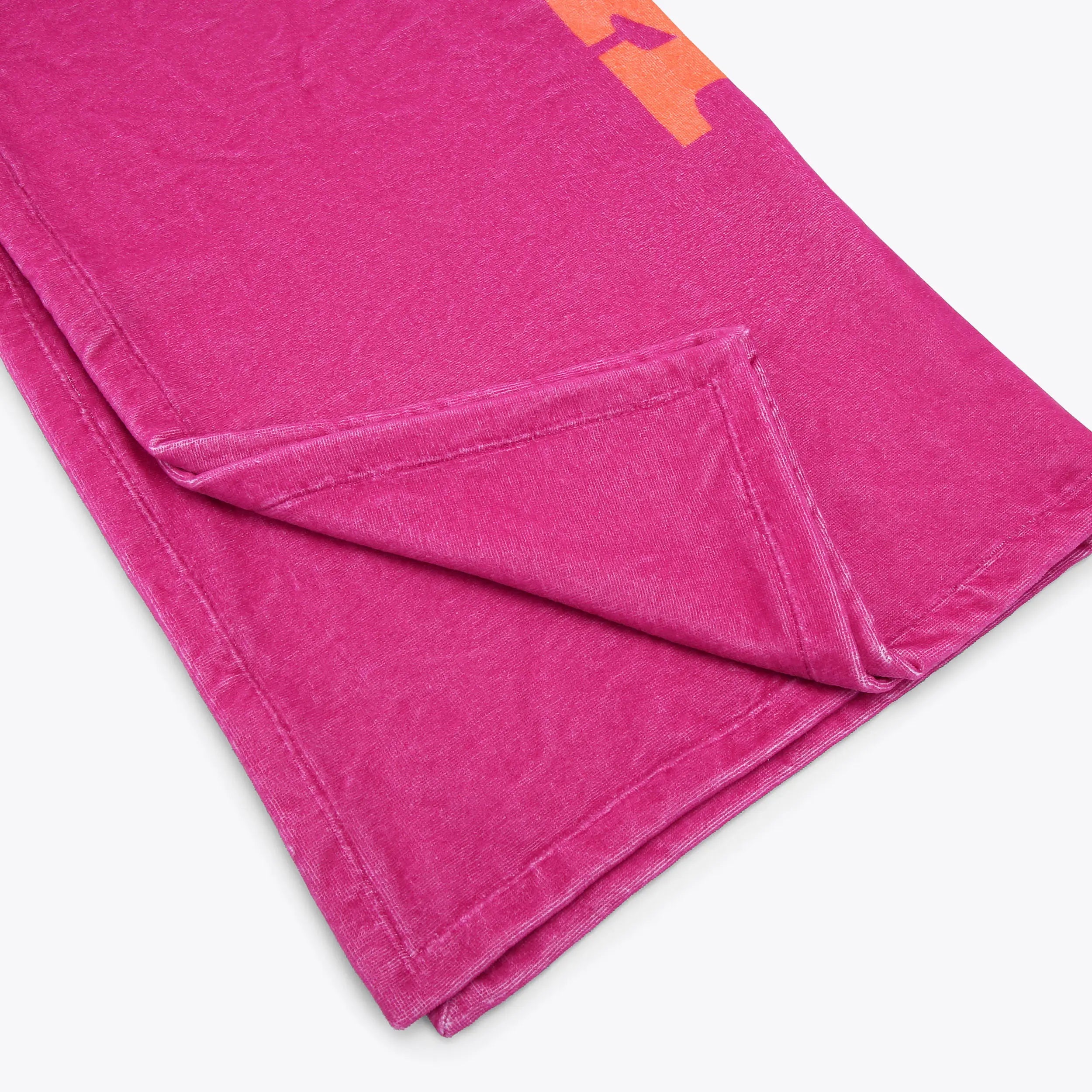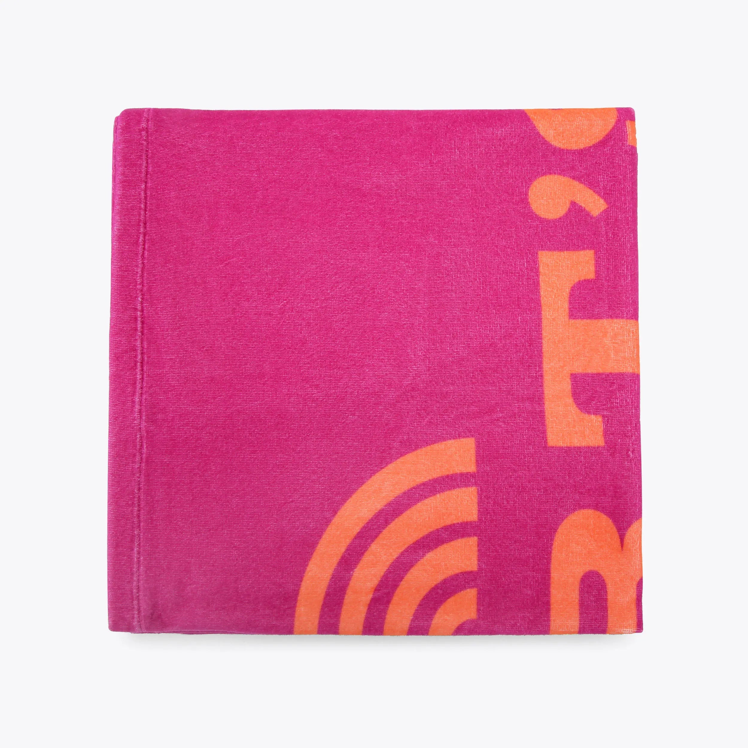 This beach towel arrives in a fuchsia shade with orange 'Kurt's Motel' branding, perfect for days in the sunshine.