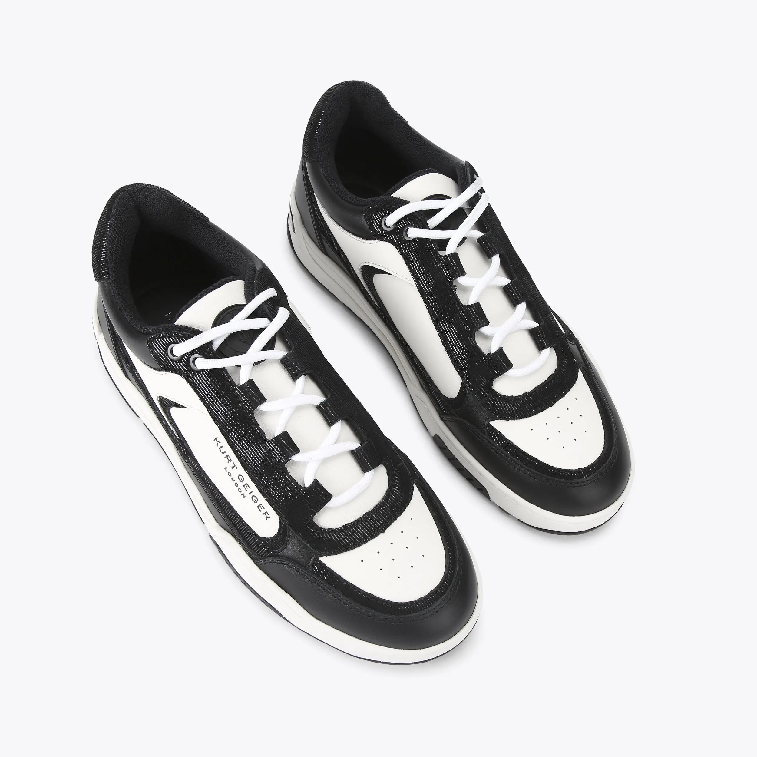 This pair of Kingsland sneaker is crafted from a black and white leather. There are branding details across the upper with tubular style laces and rubber branded patch on the front.