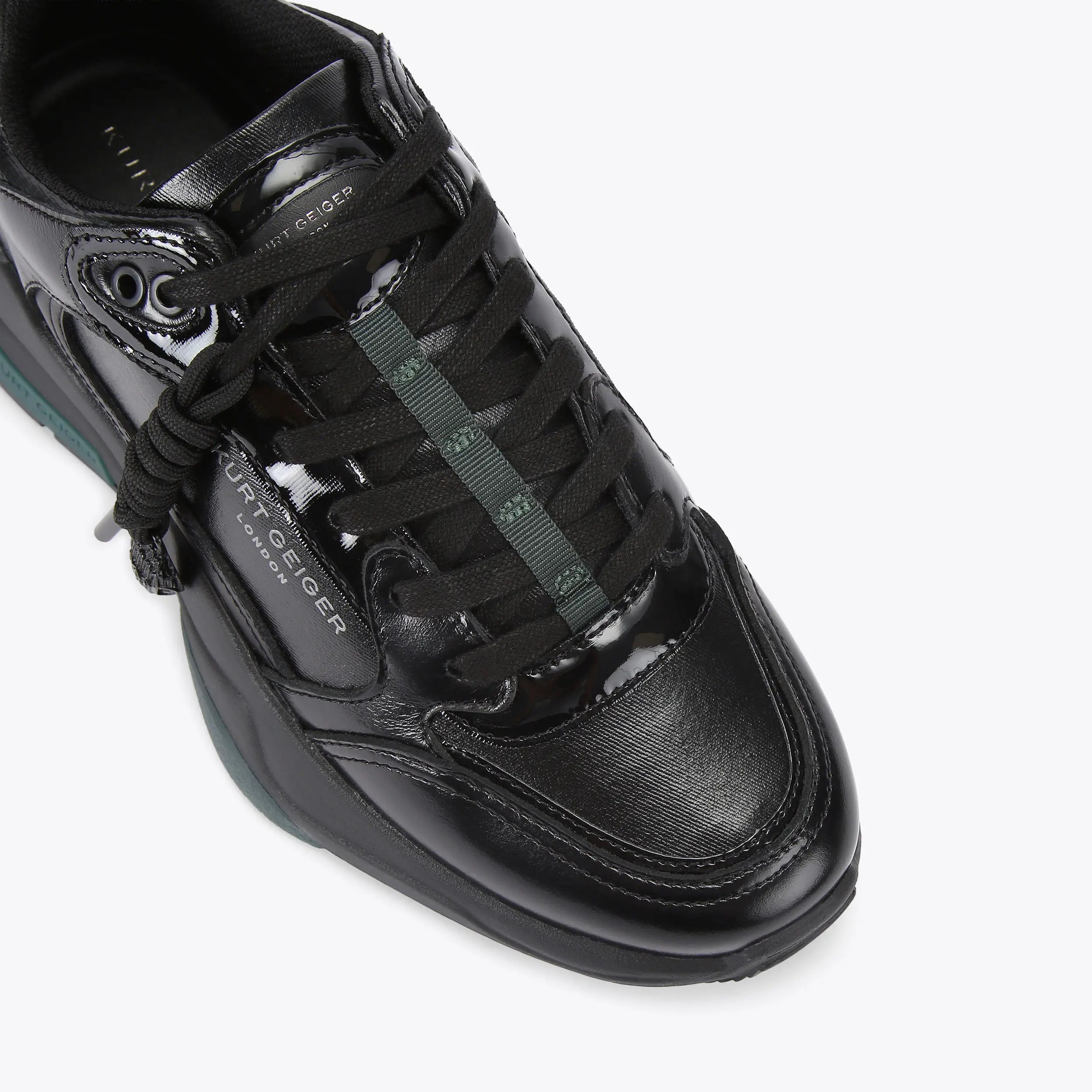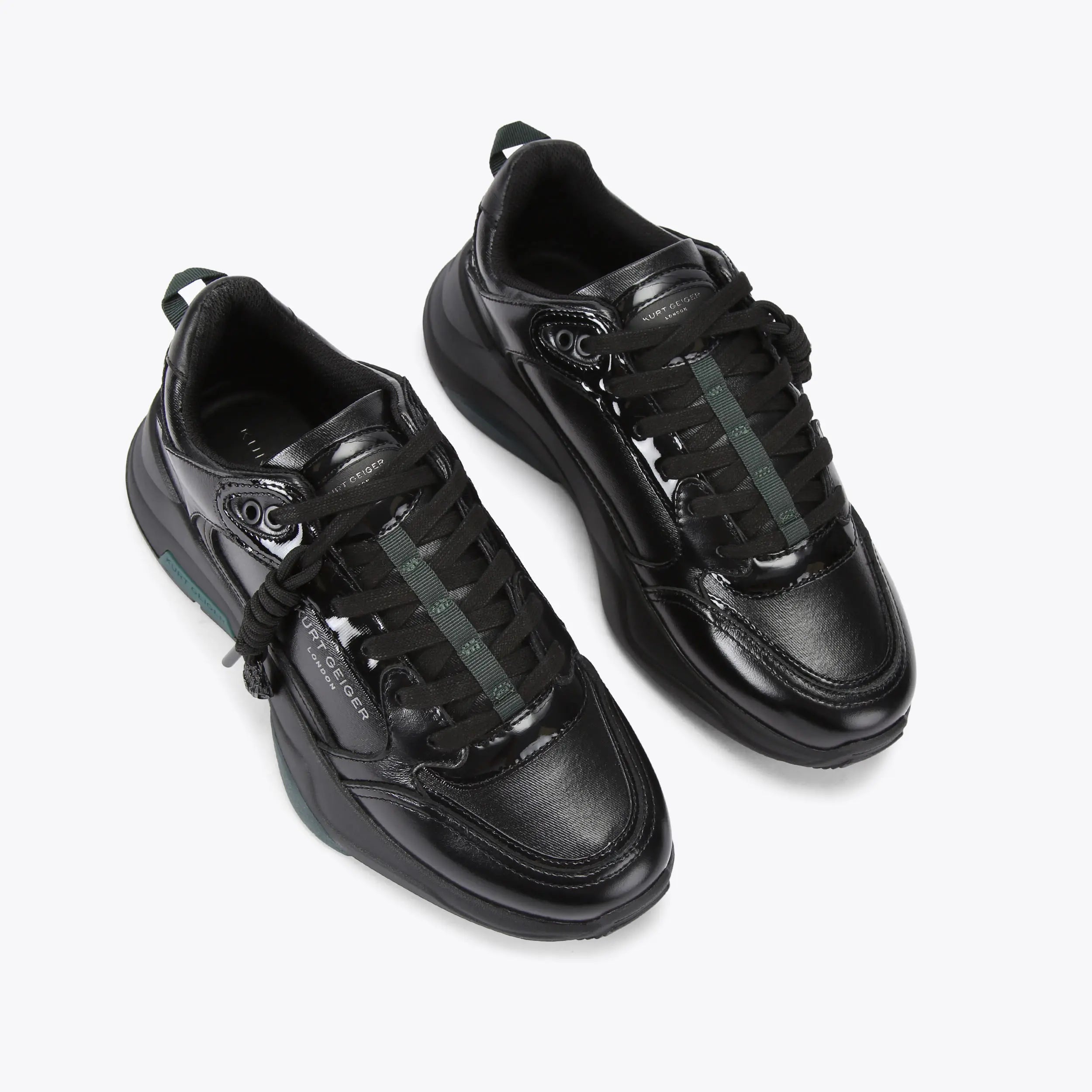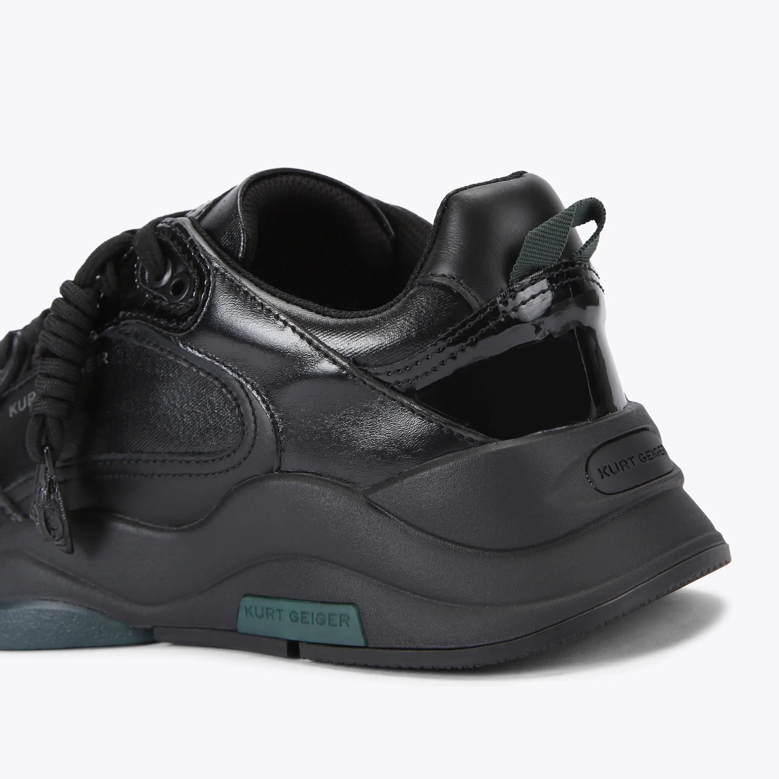 This Rosyton Sneaker arrives in a simple black chunky style. There is a statement fabric tag with black eagle head attached to the laces.