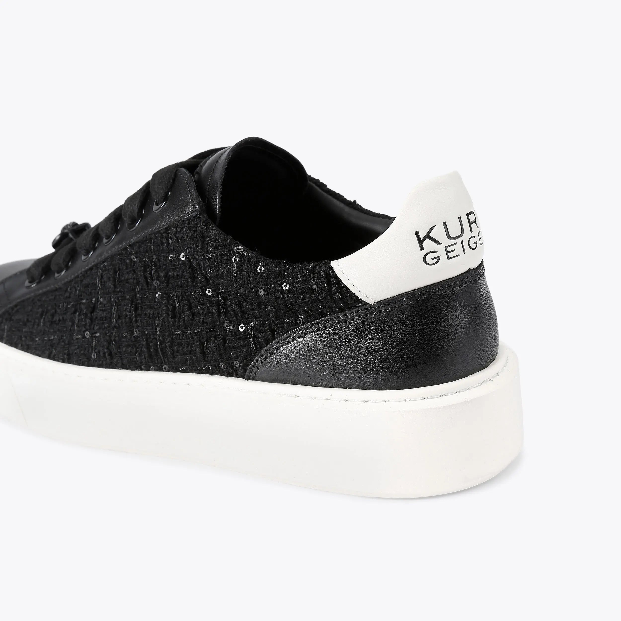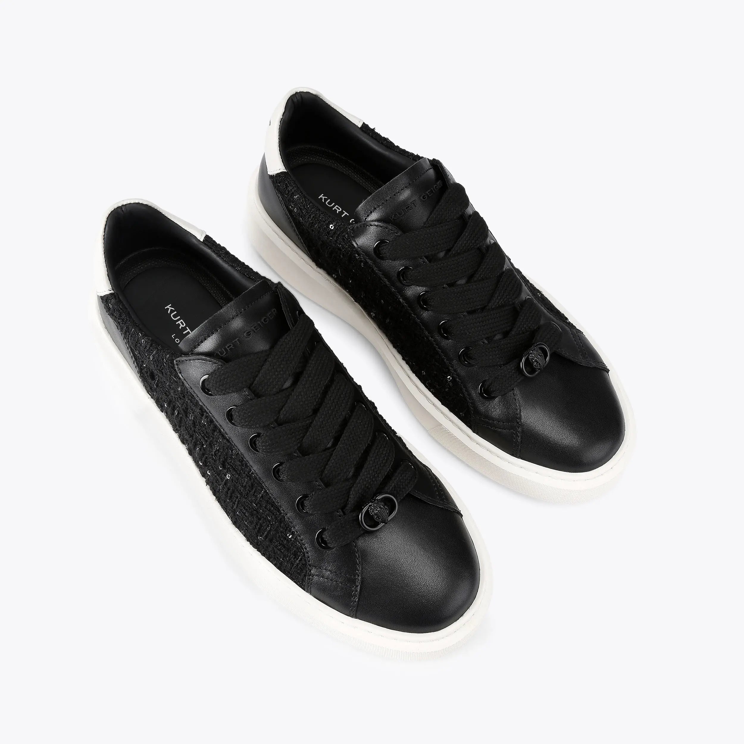 This Albion Sneaker is crafted from a tweed fabric and leather. The front laces up with fabric laces and black embossed branding on the tongue and heel.