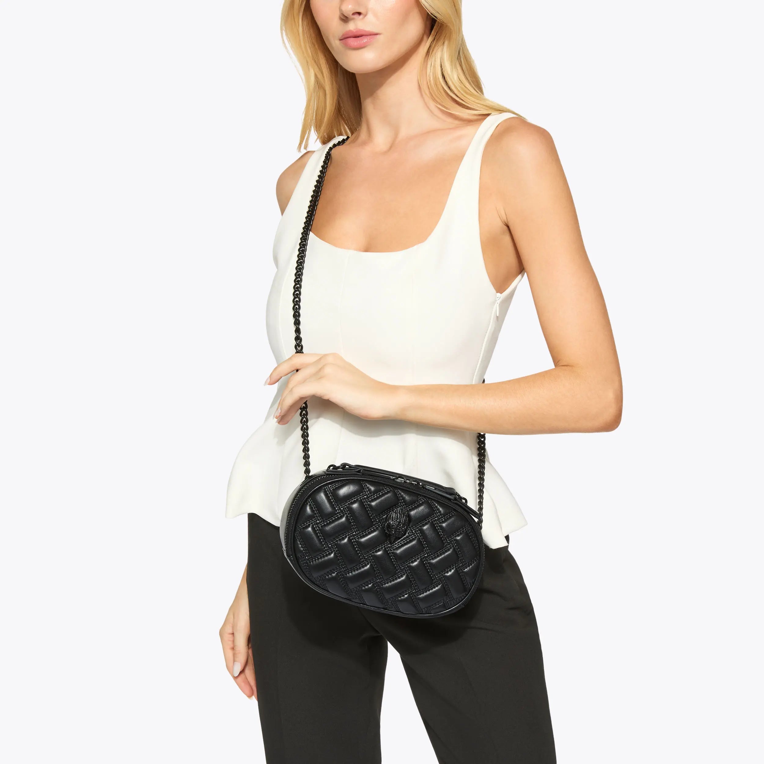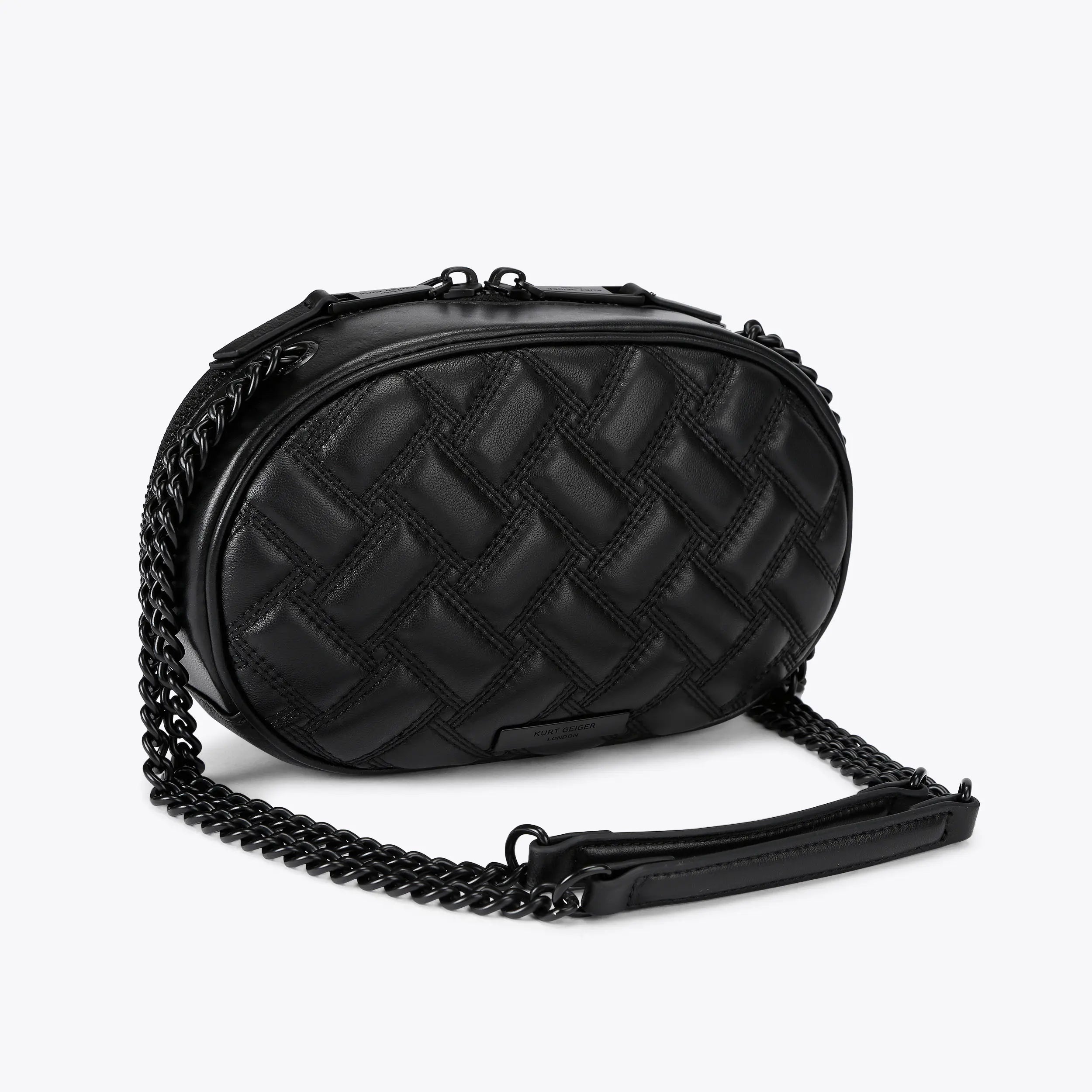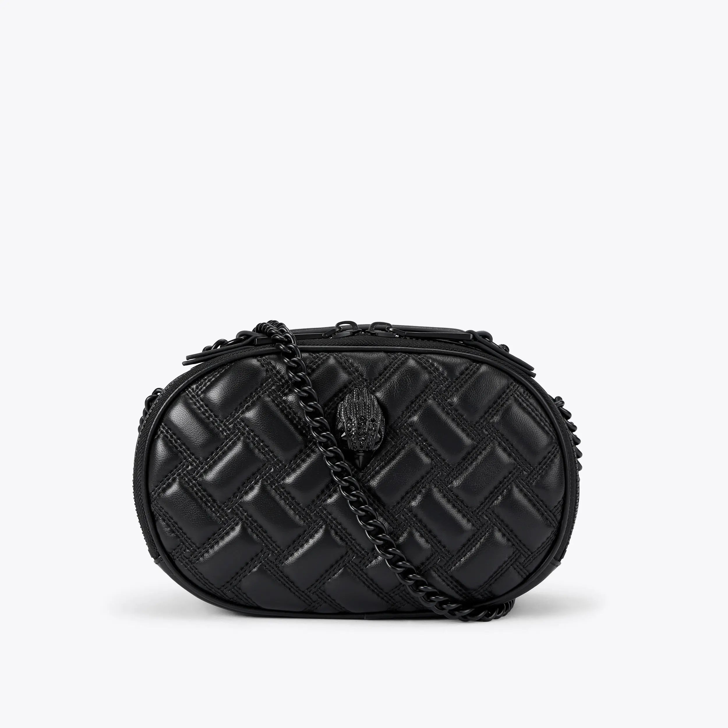 This Kensington Drench Oval Camera bag is crafted from a black leather with three rows of overstitch quilting.
