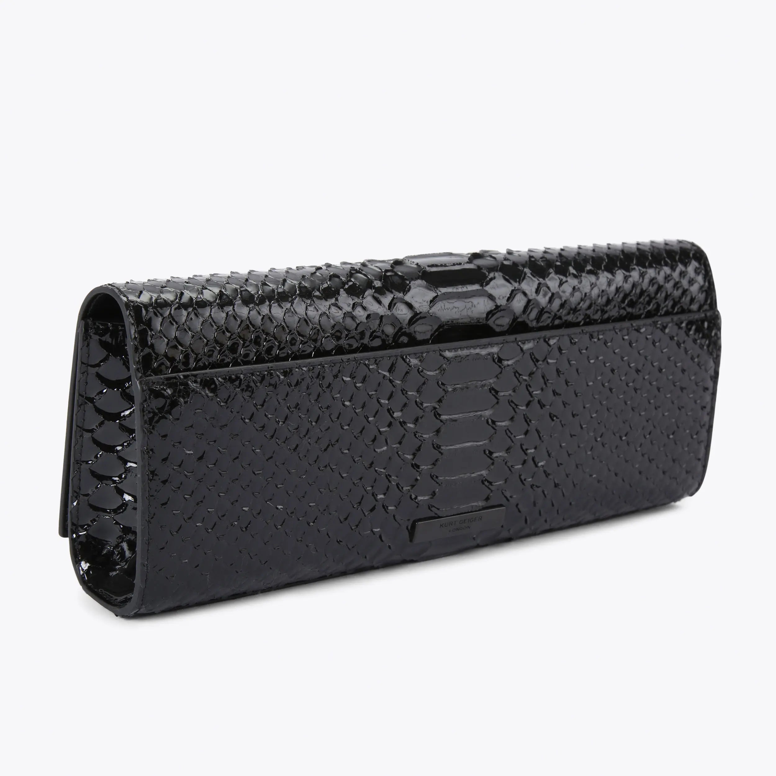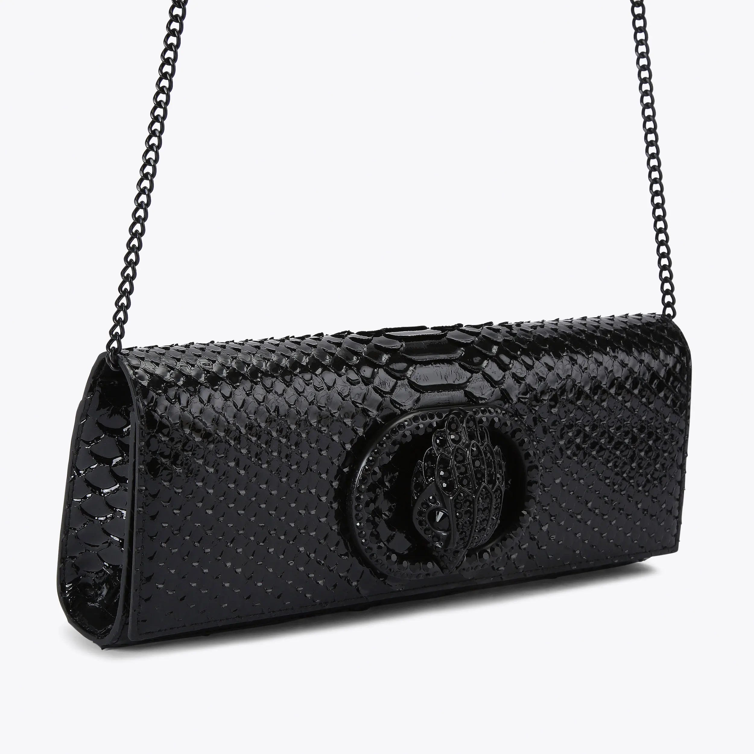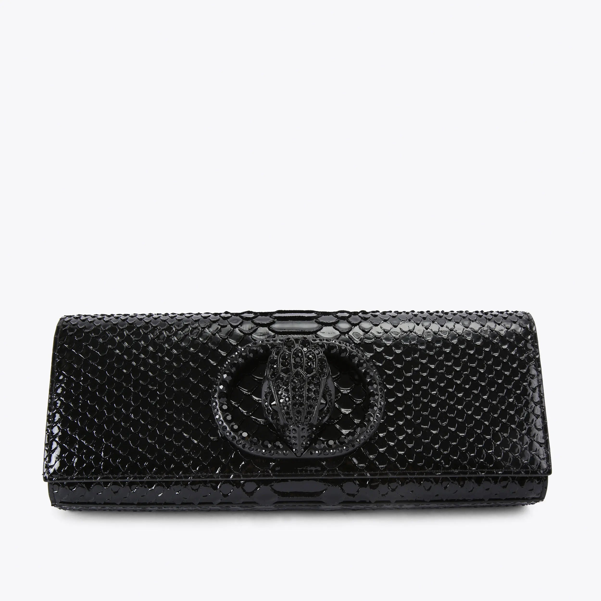 This Chelsea Long Clutch Purse is crafted from a 3D snake embossed leather. There is a black oval trim on the front with eagle head in the centre.