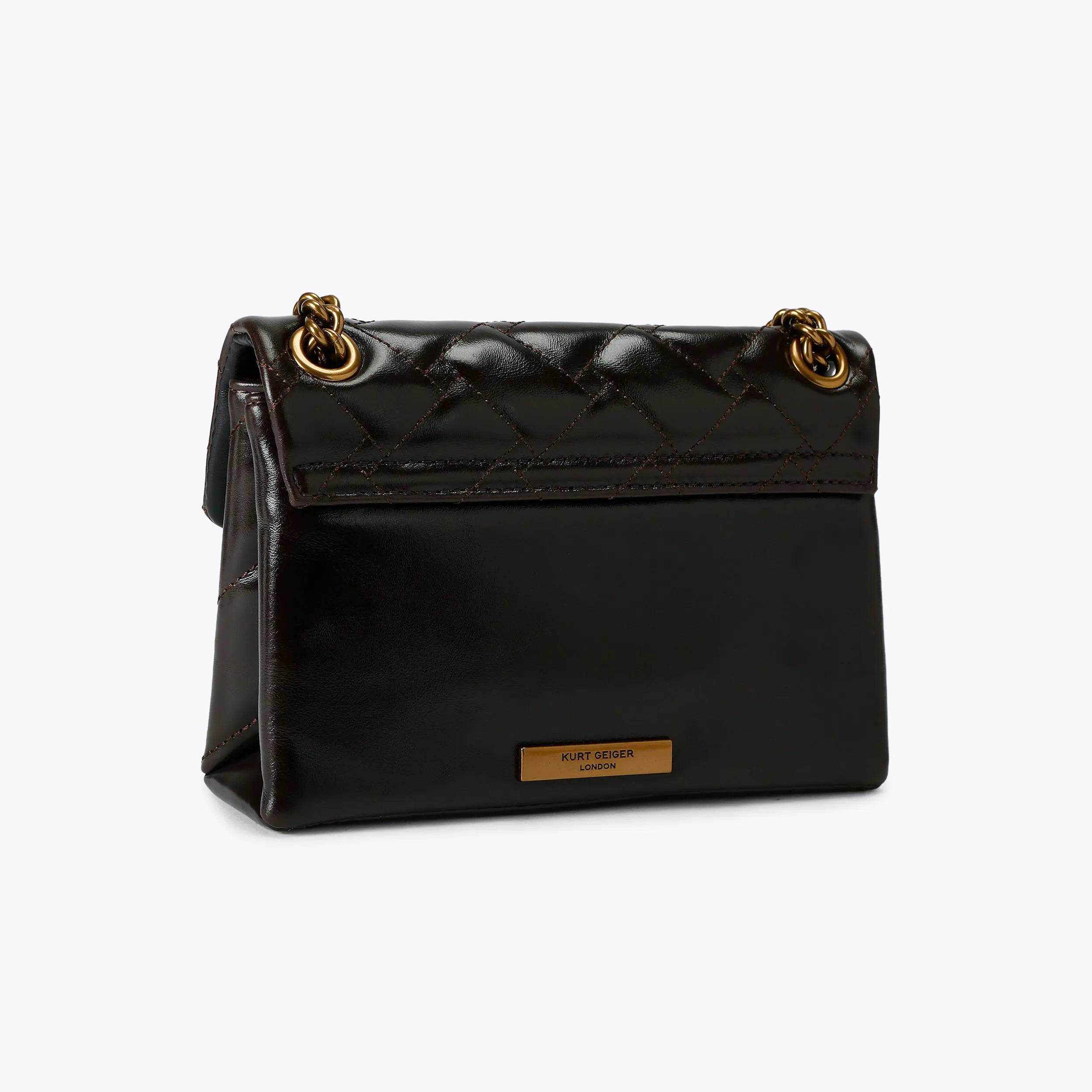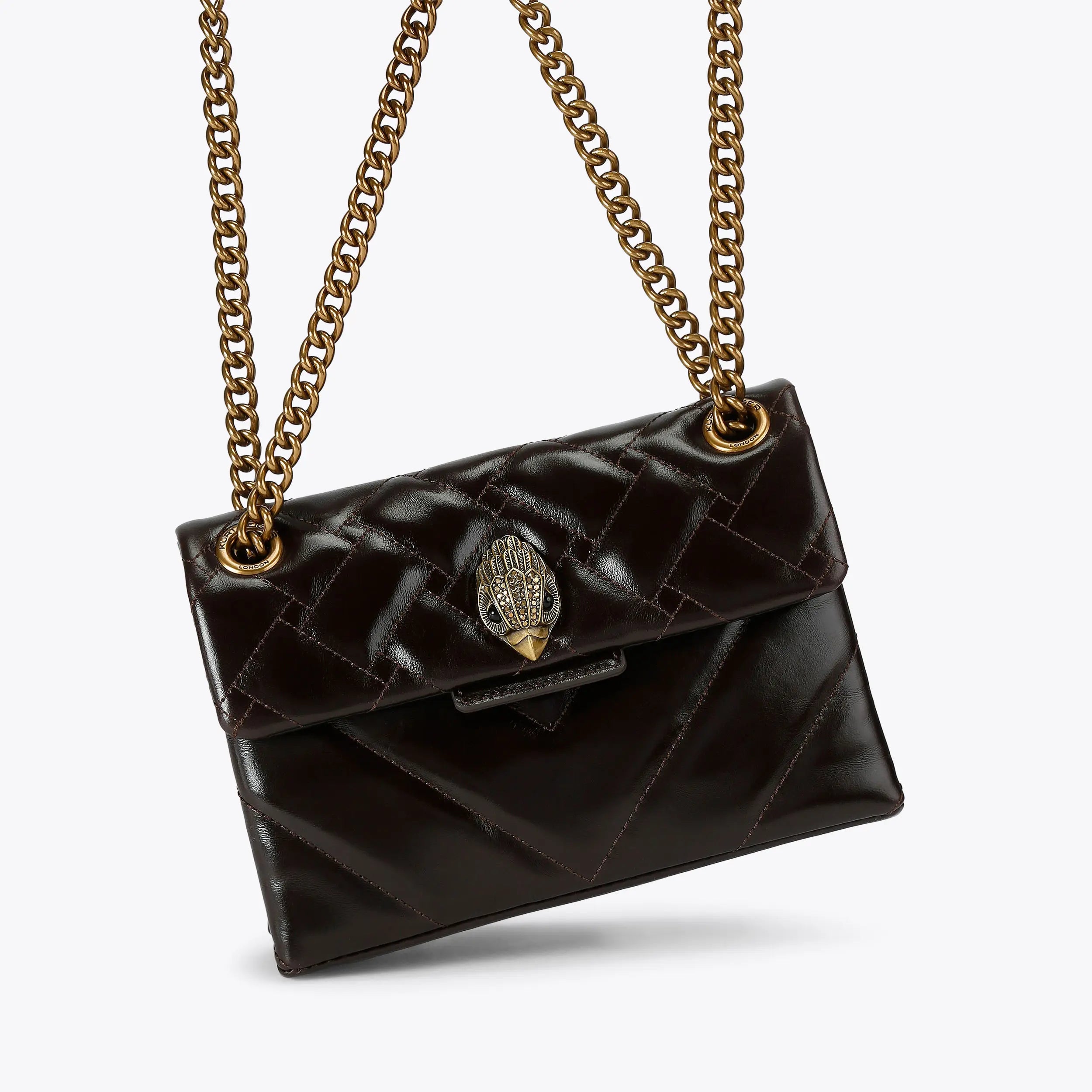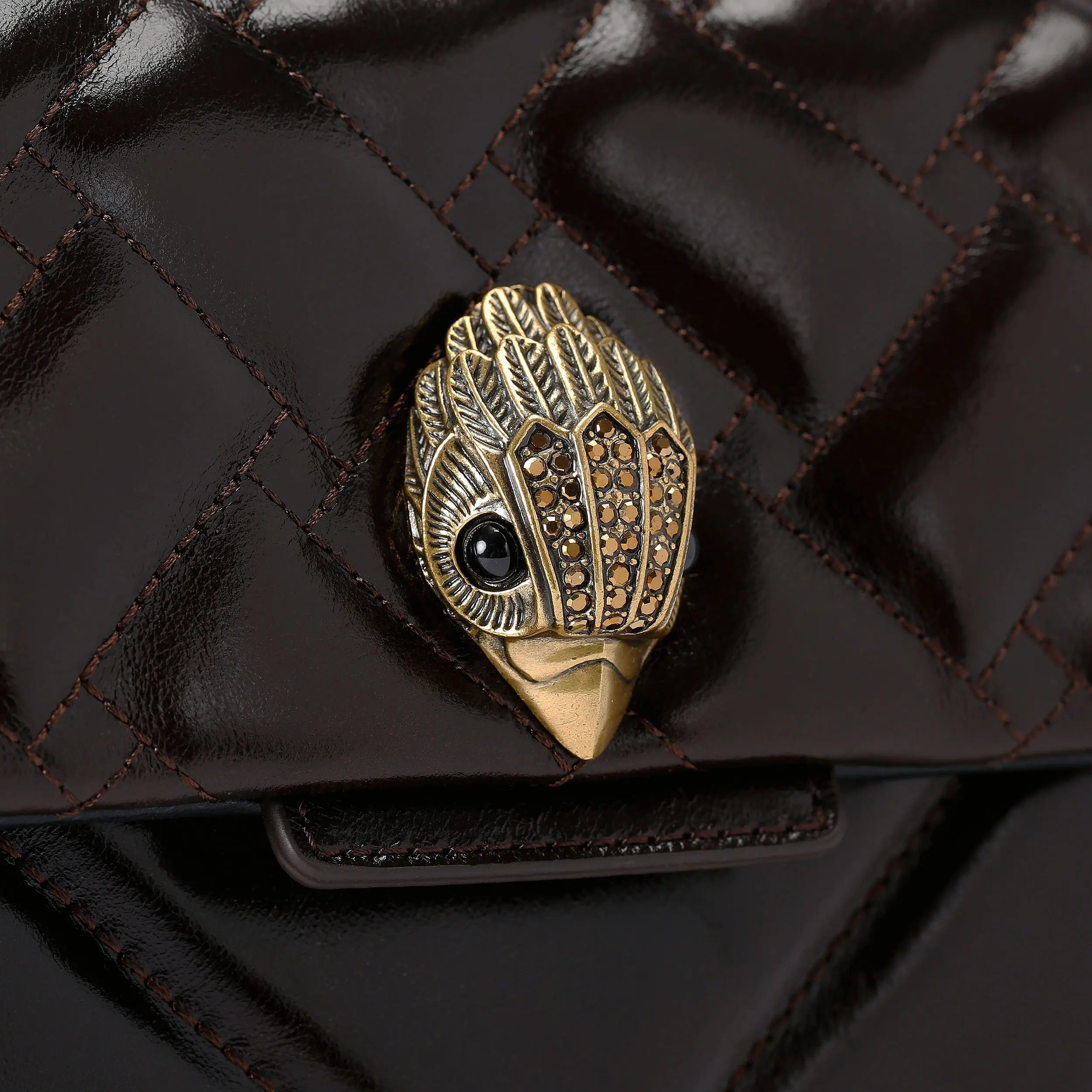 The Leather Mini Kensington Bag is crafted from a dark brown leather. The antiqued brass eagle head features all over feather detail on the front flap.