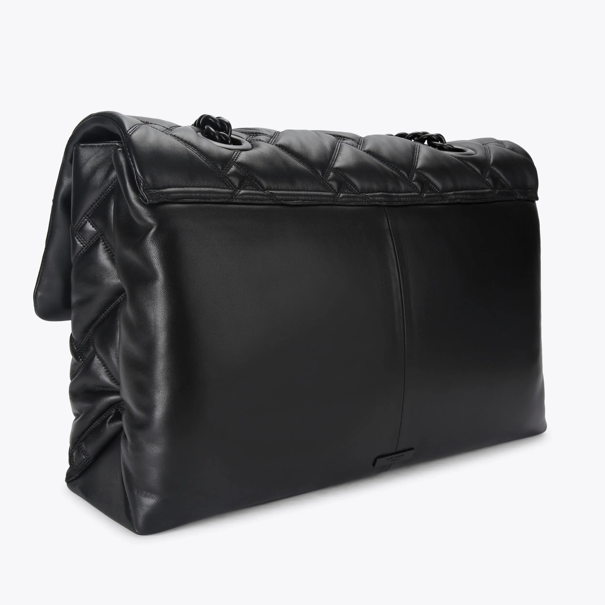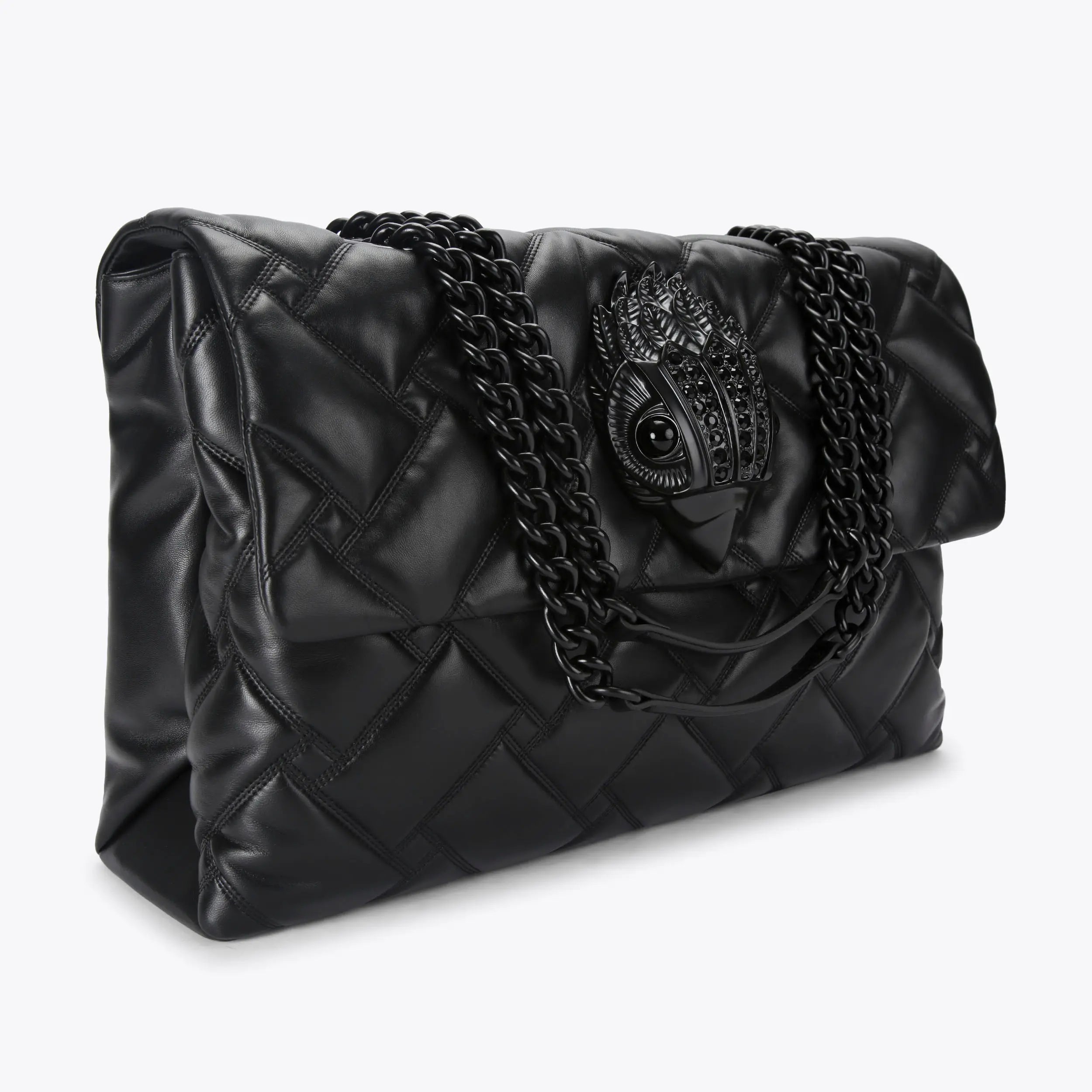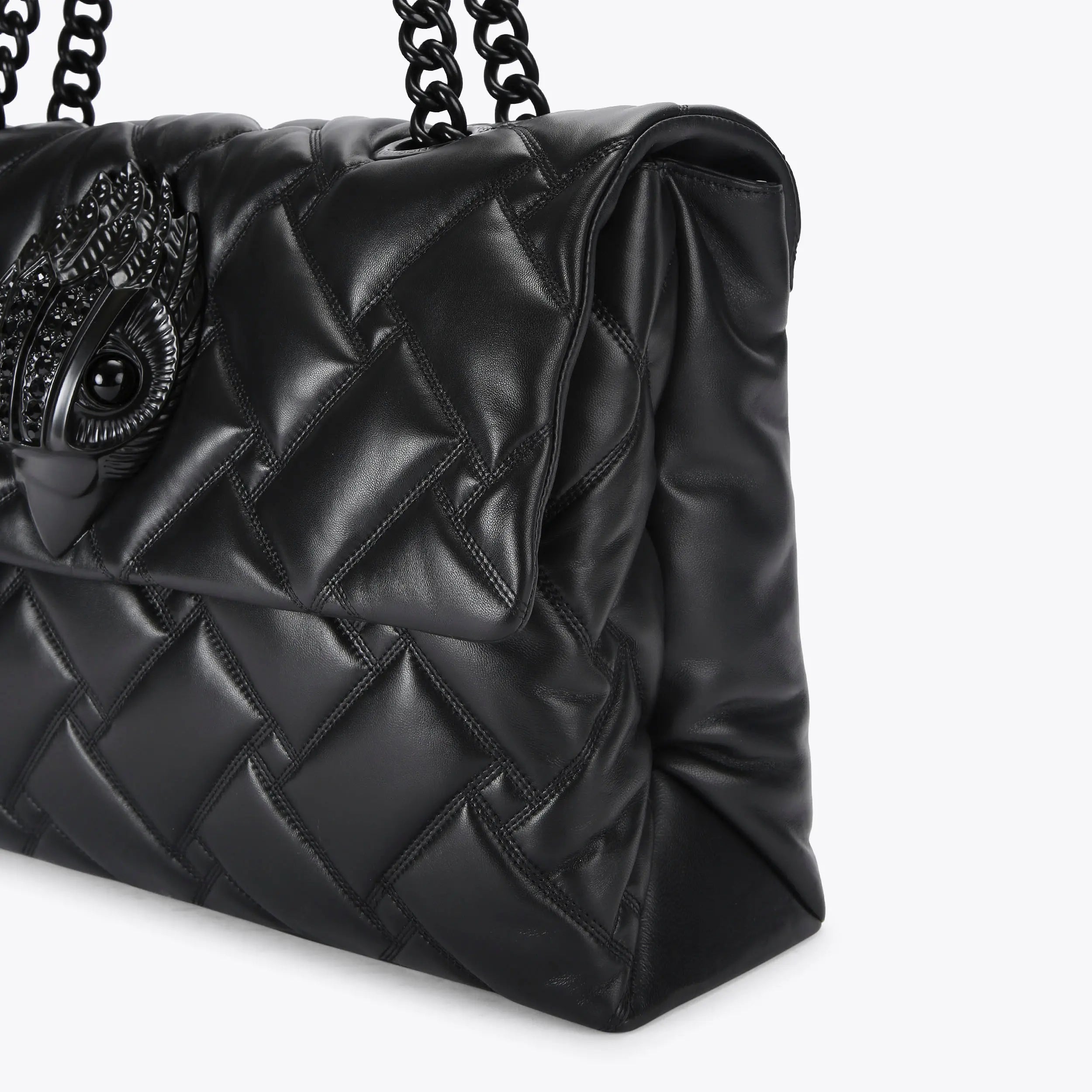The Macro Drench Kensington Purse is crafted from a soft lambskin leather with three rows of overstitch quilting. The black metal eagle head features crystals and black eyes on the front flap.