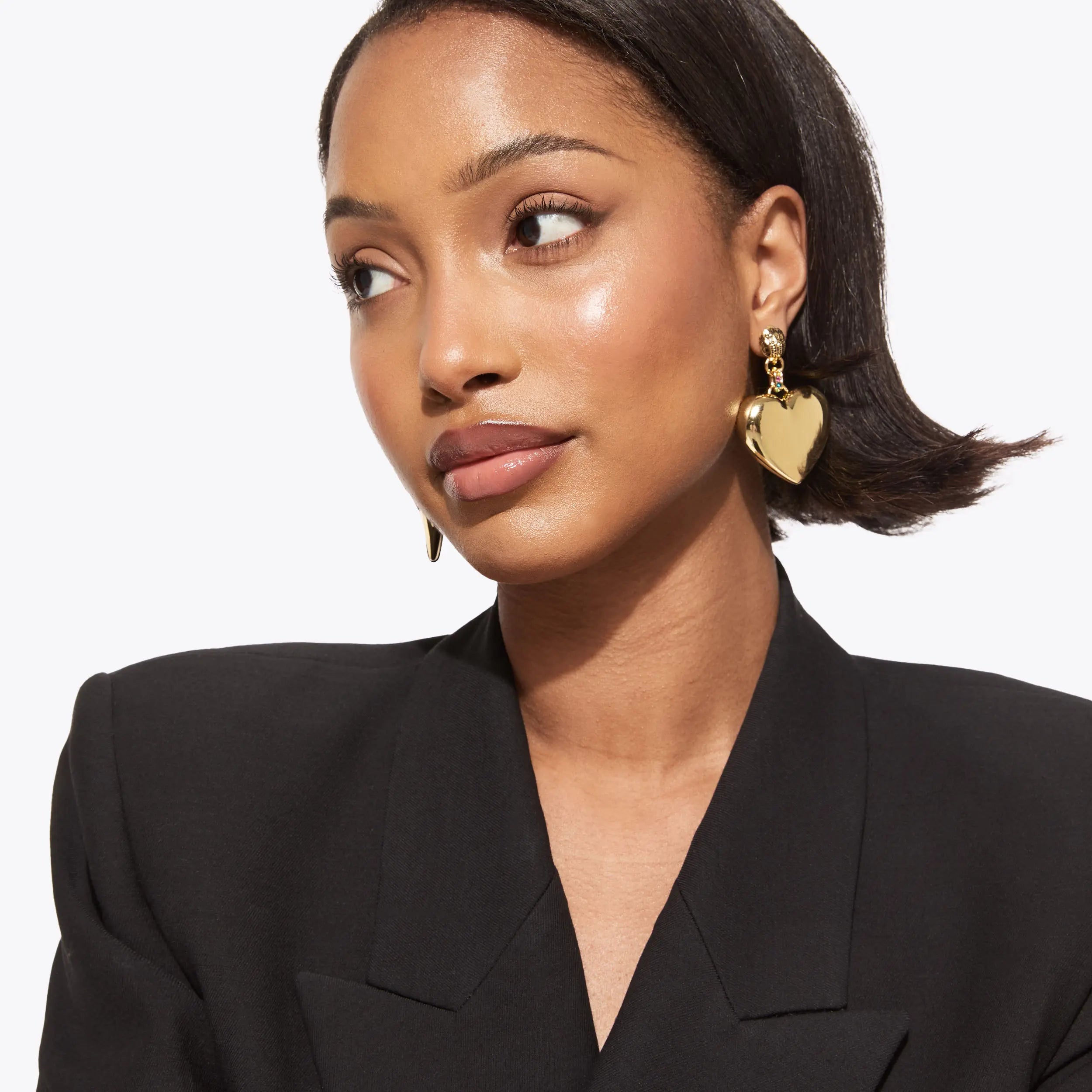 This pair of Extra Large Heart earrings feature an iridescent gemstone which is surrounded by antiqued brass.