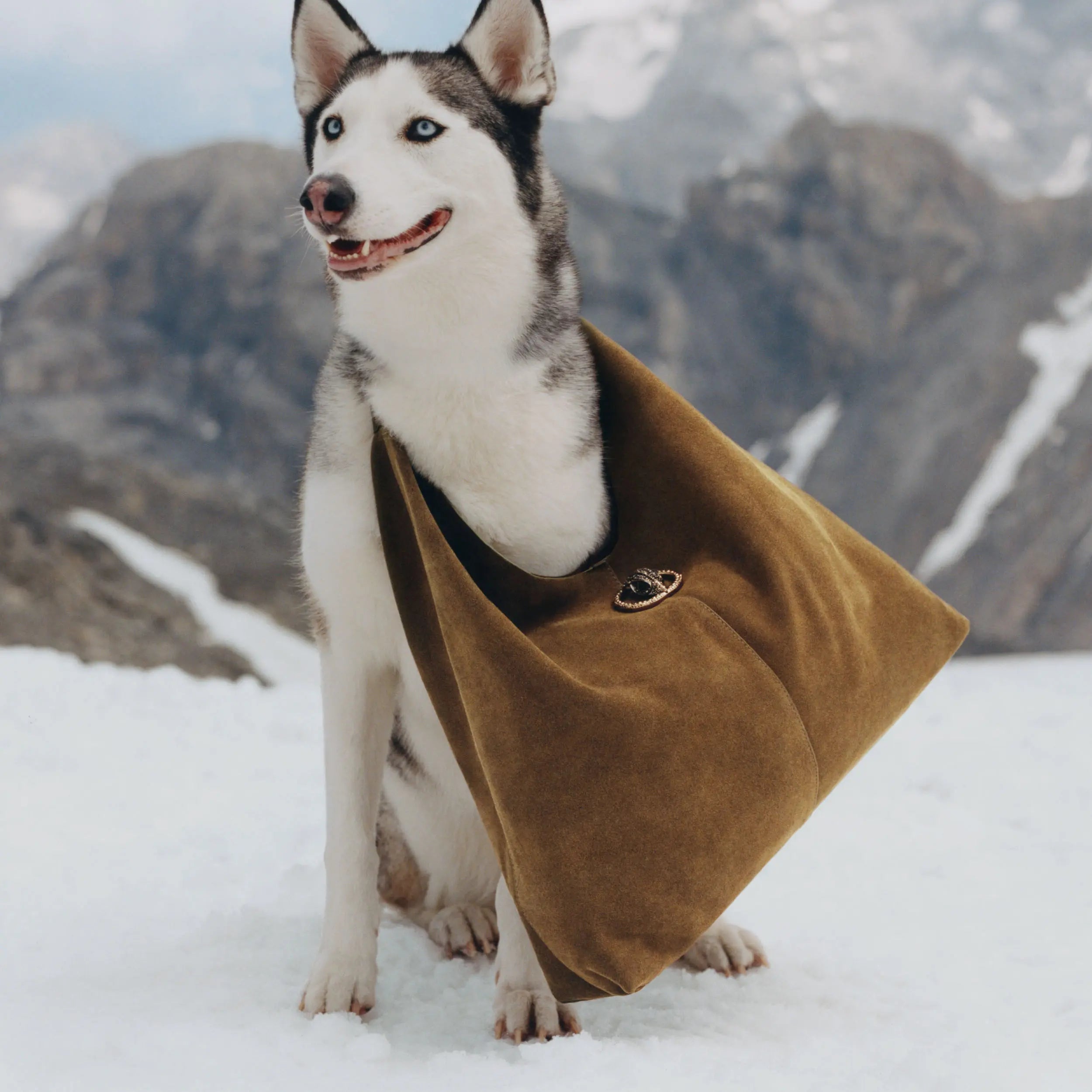This Large Chelsea Slouch Hobo purse is crafted from a slouchy tan suede. There is a large crystal embellished antiqued brass oval trim with eagle head at the centre on the front of the purse.