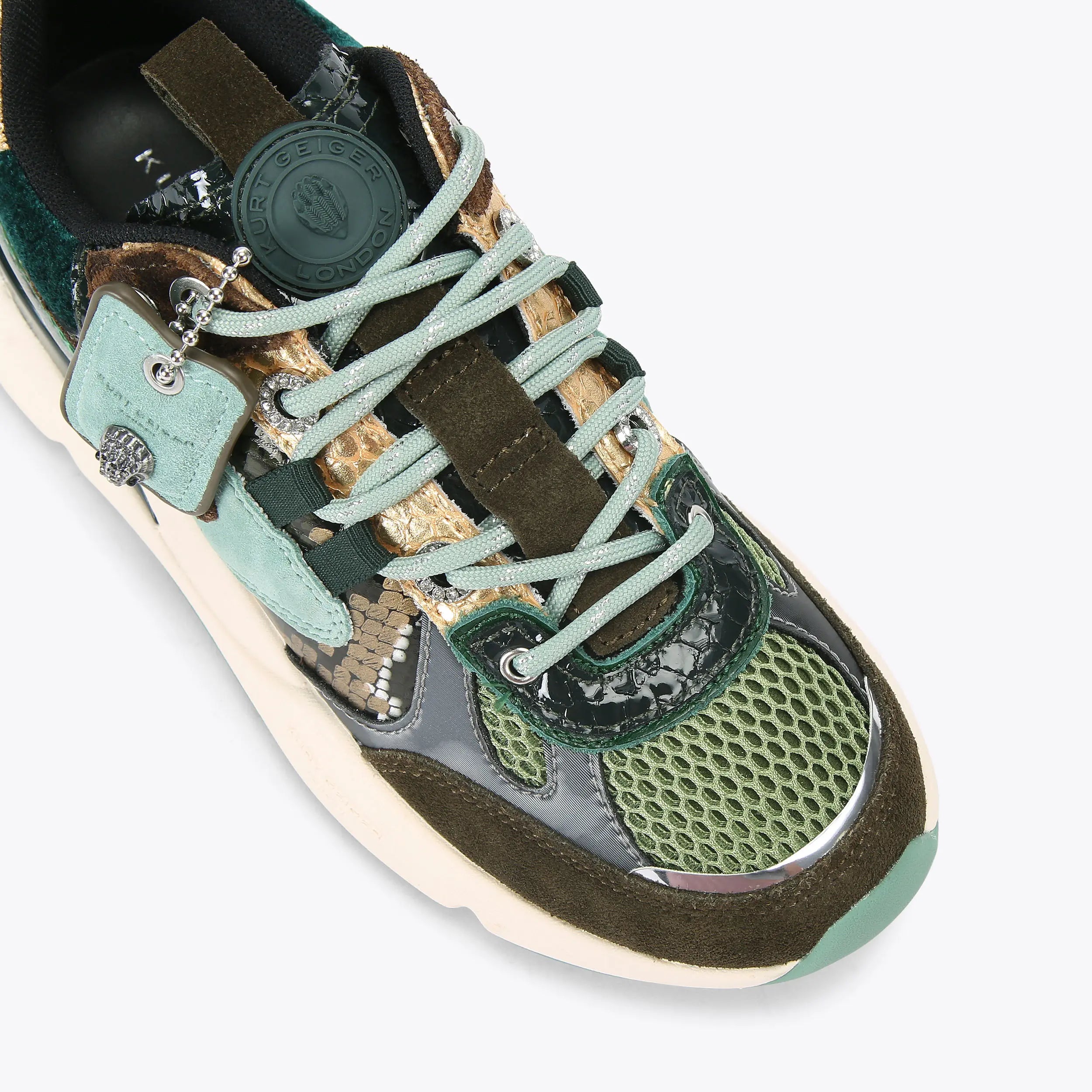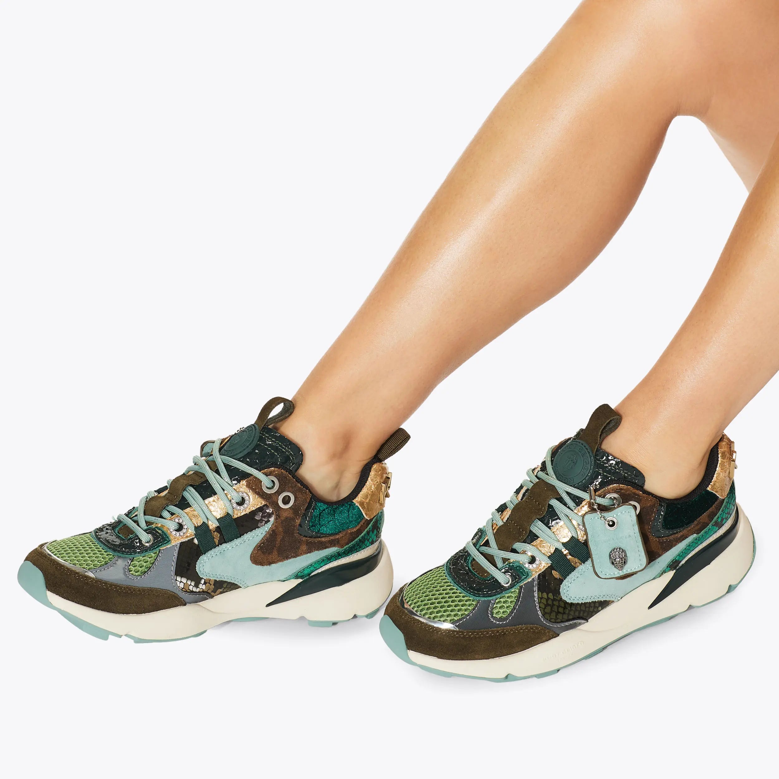 This Kurt Runner arrives with leopard print suede, snake embossed leather and mesh panels. The front is laced up with tubular laces and there is both a rubber round patch on the tongue and metallic tag through one of the top eyelets.