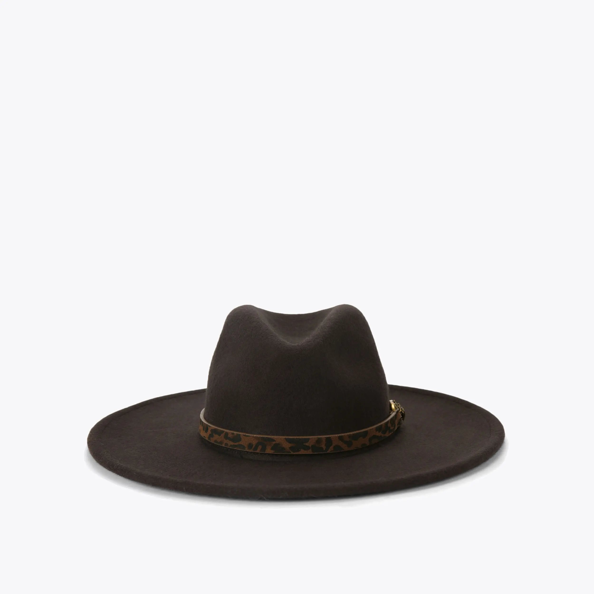 This Chelsea Fedora is crafted from a soft brown fabric with wide brim. There is a 3D embossed trim around the brim which is accented with an antiqued brass oval trim with eagle head at the centre.