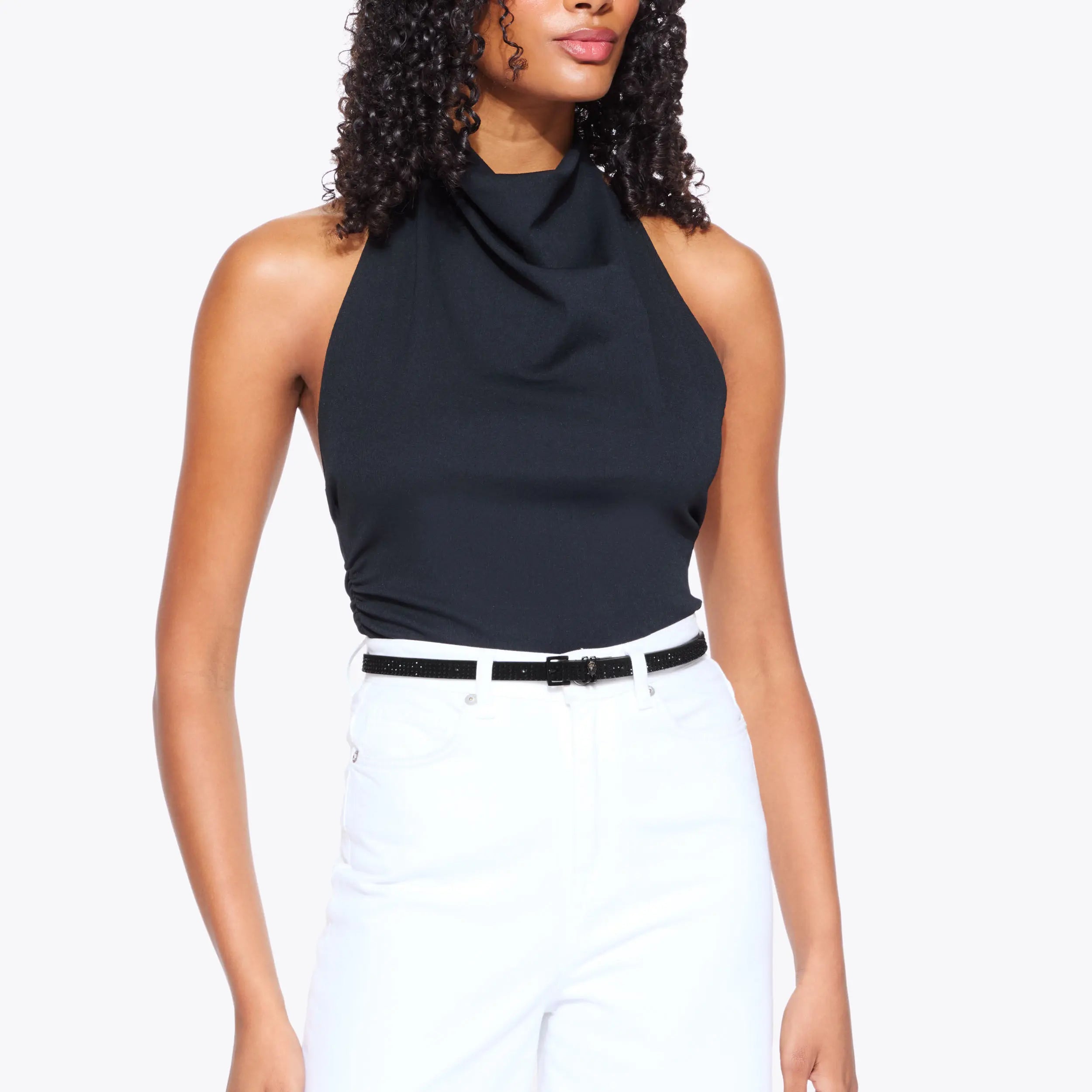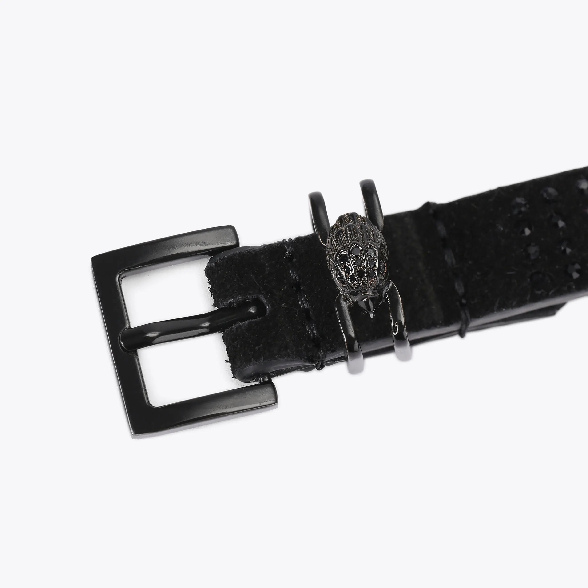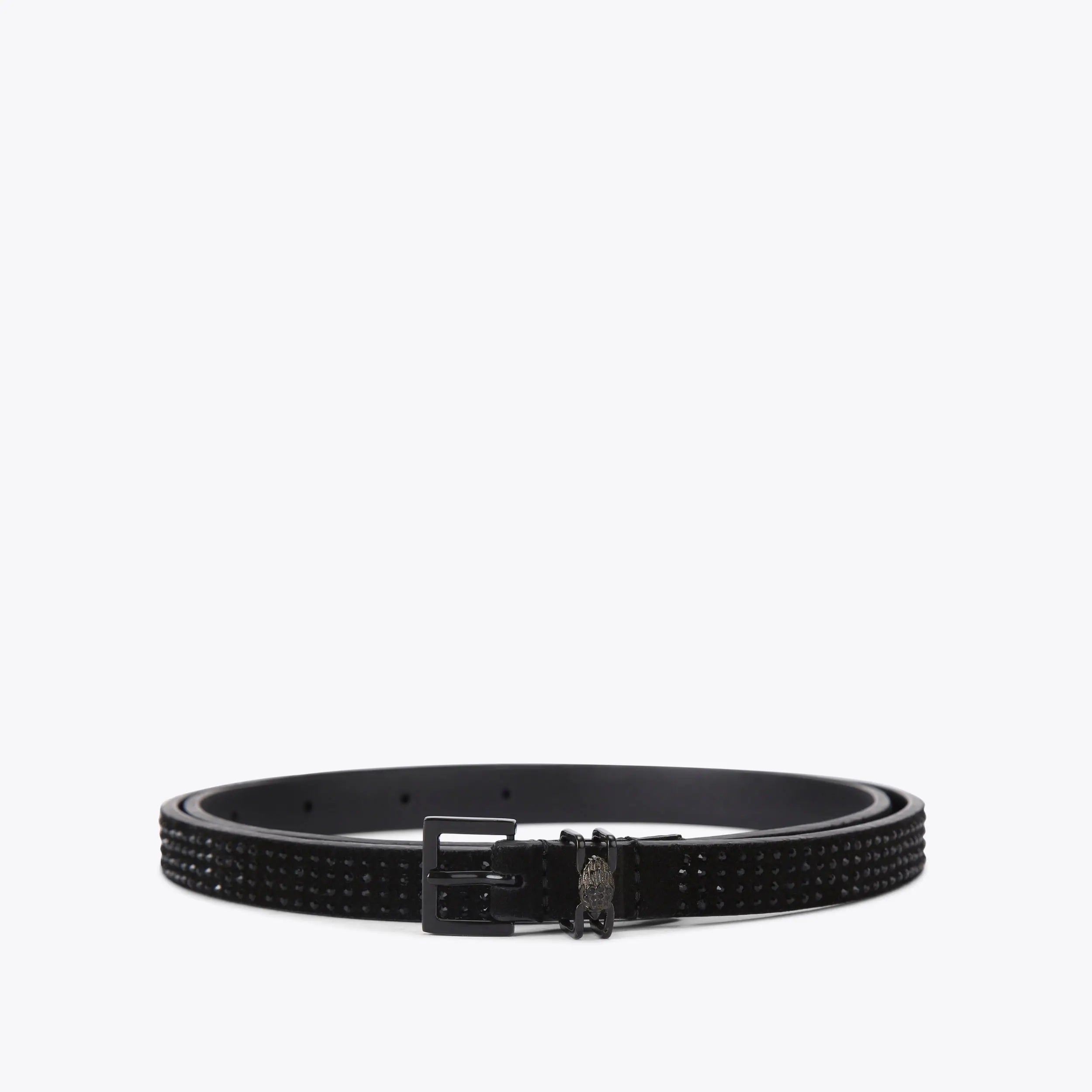 This Shoreditch Belt features a black microsuede belt band that is embellished with black crystals. The buckle is a black metal matching the small eagle head.