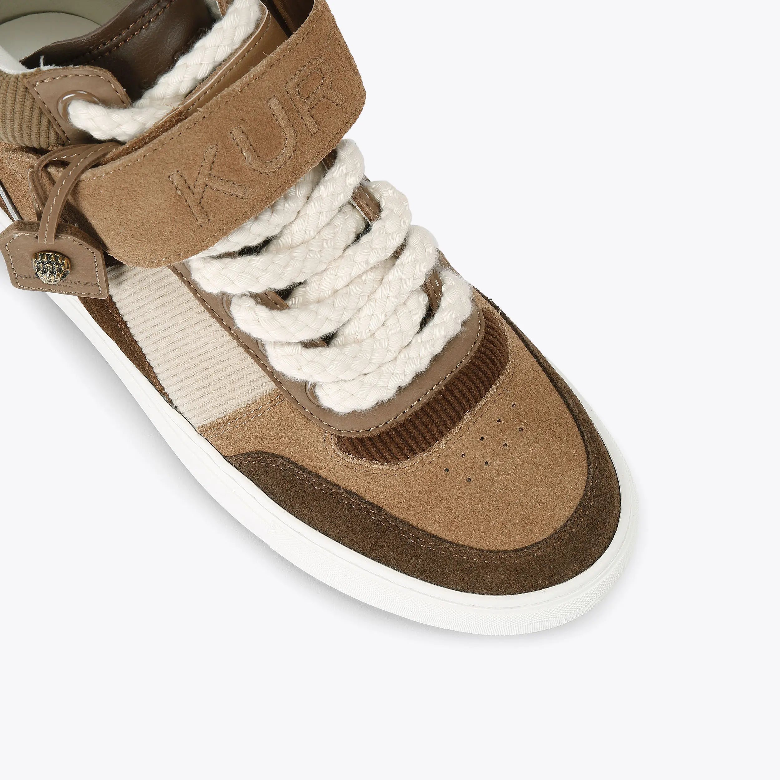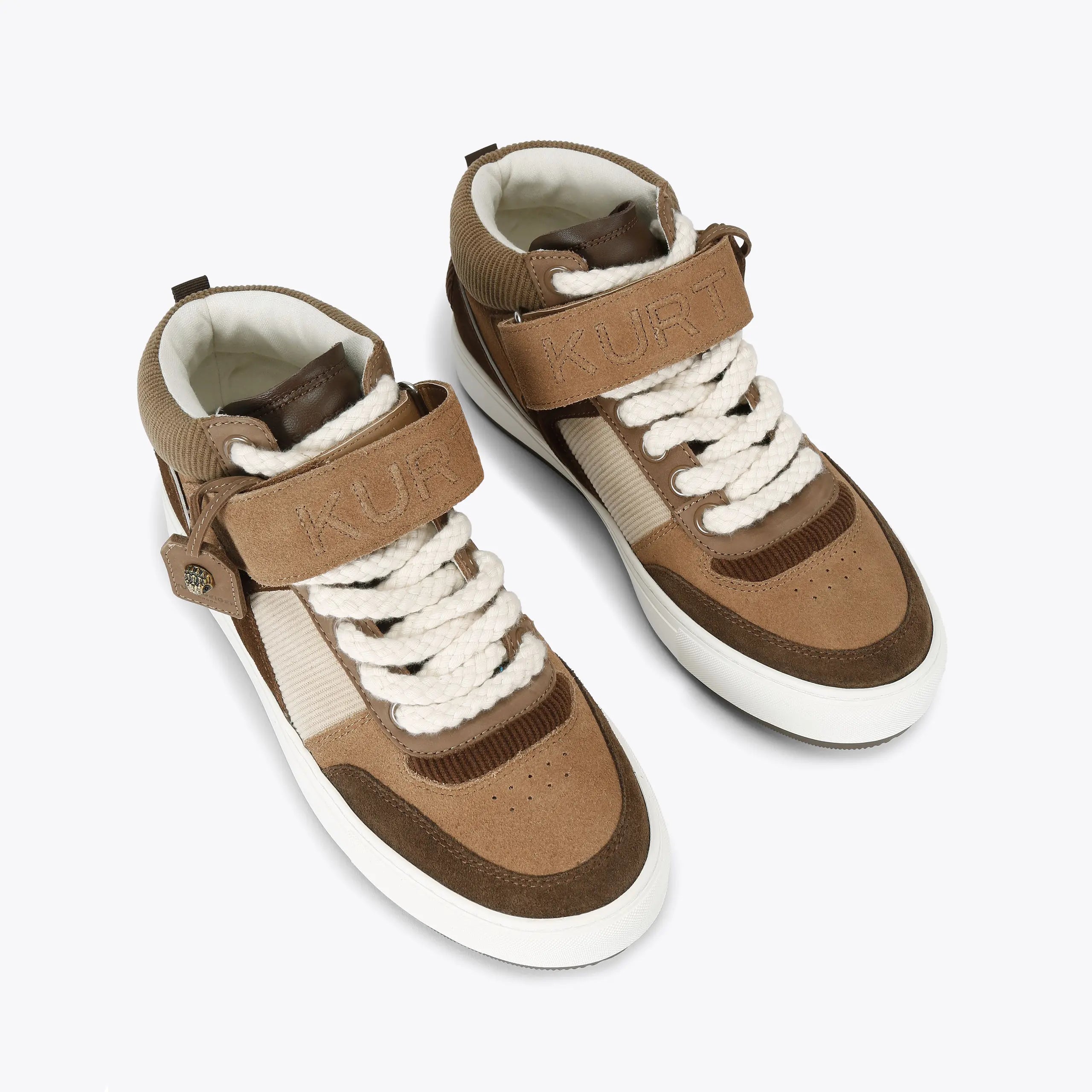 This Southbank Basketball High Top Sneaker is crafted from a tonal brown suede leather with a strap across the front. On the braided laces sits a patent branded tag detail.