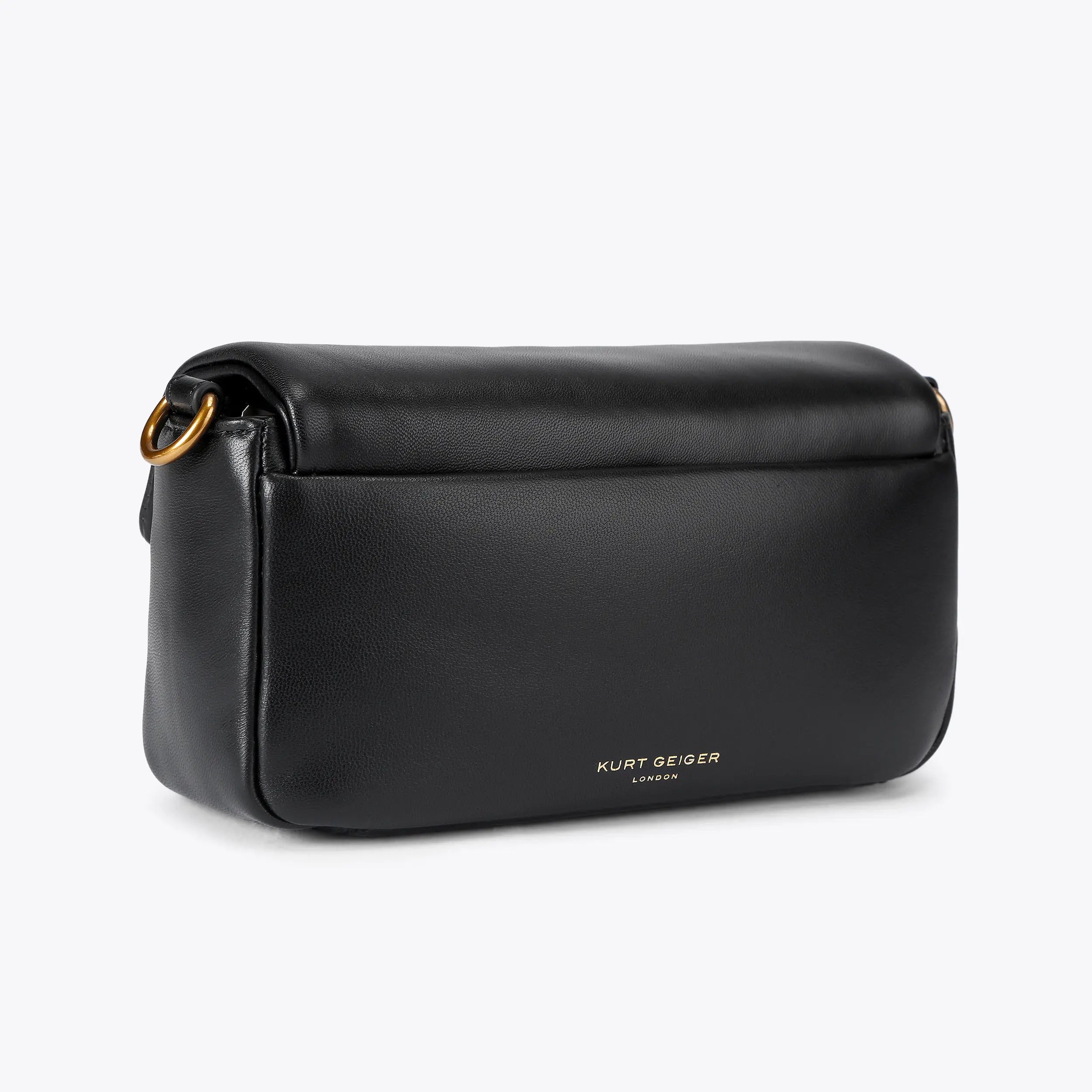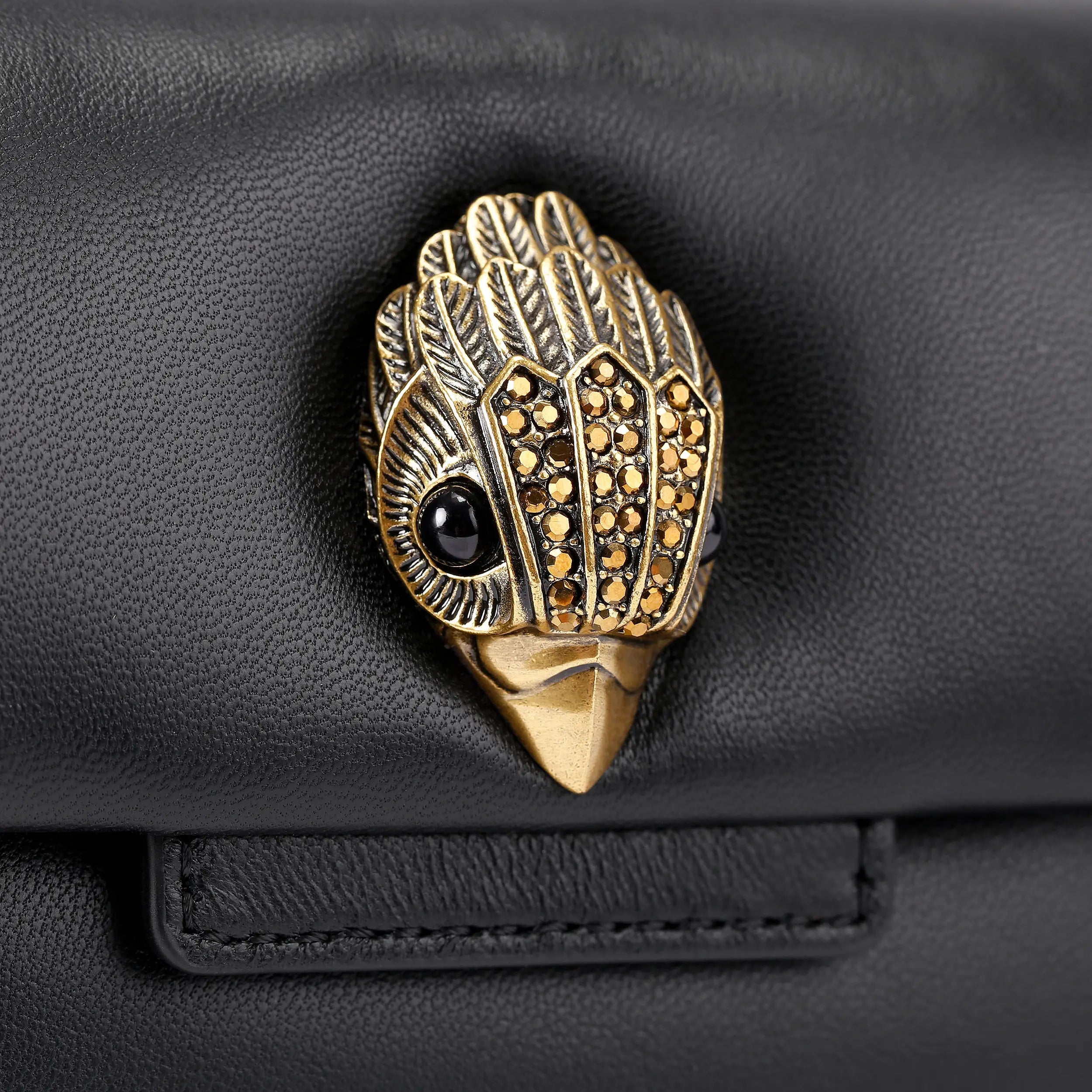 This Leather Oxford Bag is crafted from a soft black lambskin leather. There is a black metal eagle head with crystals sat on the front flap.
