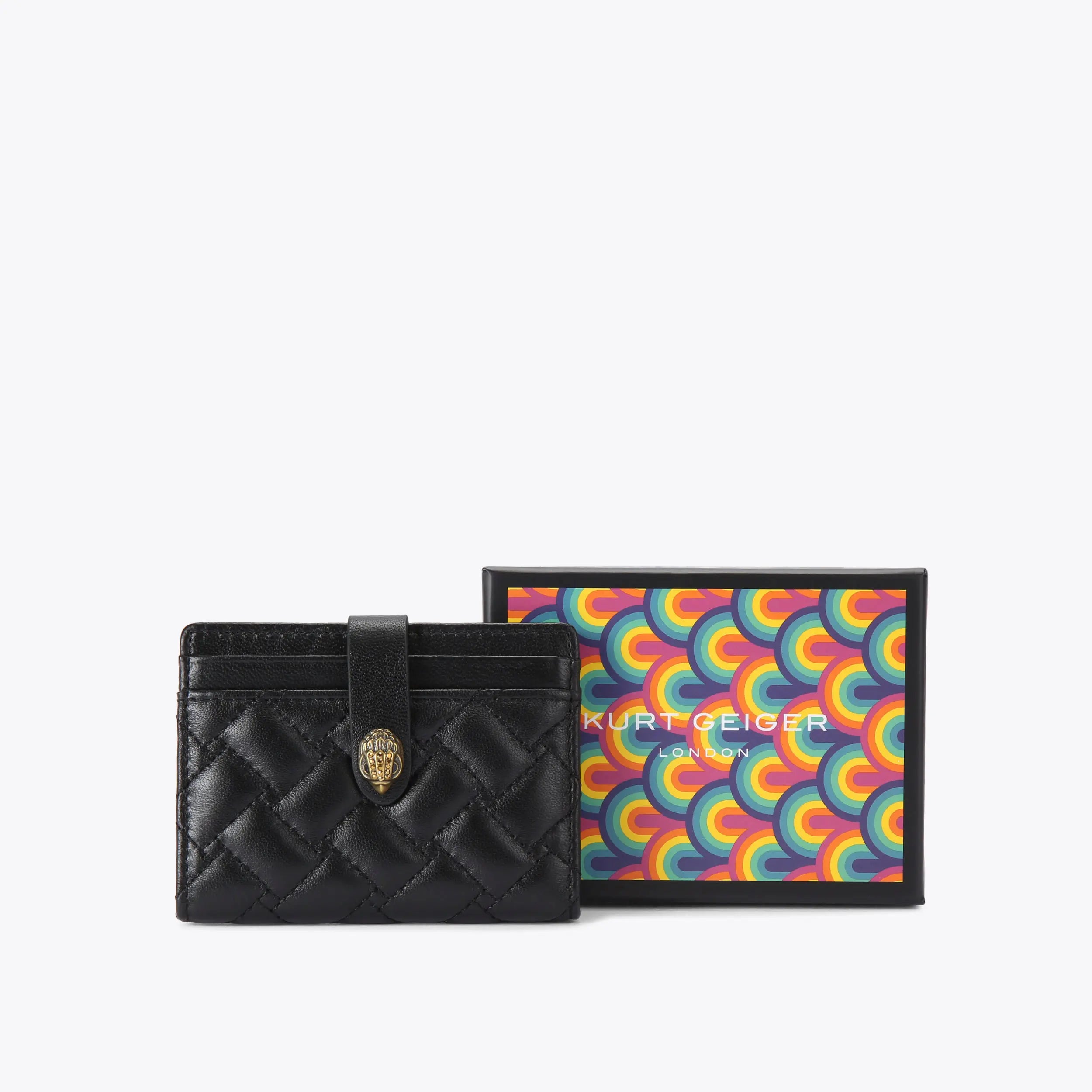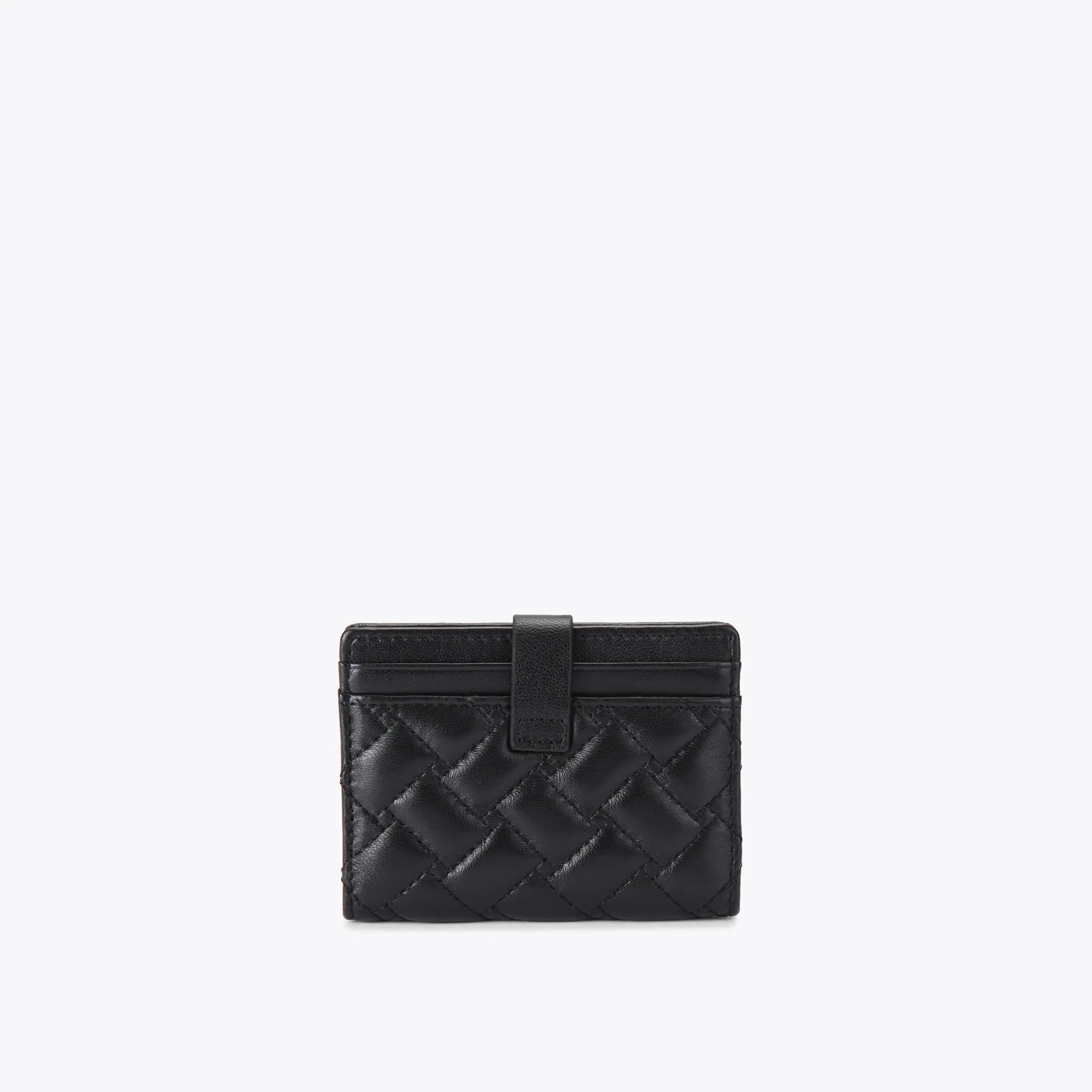 The Multi Card Holder is crafted from a soft leather with signature parquet padded overstitch quilt with three rows of weave pattern. The eagle head features crystals which sits on the closure.