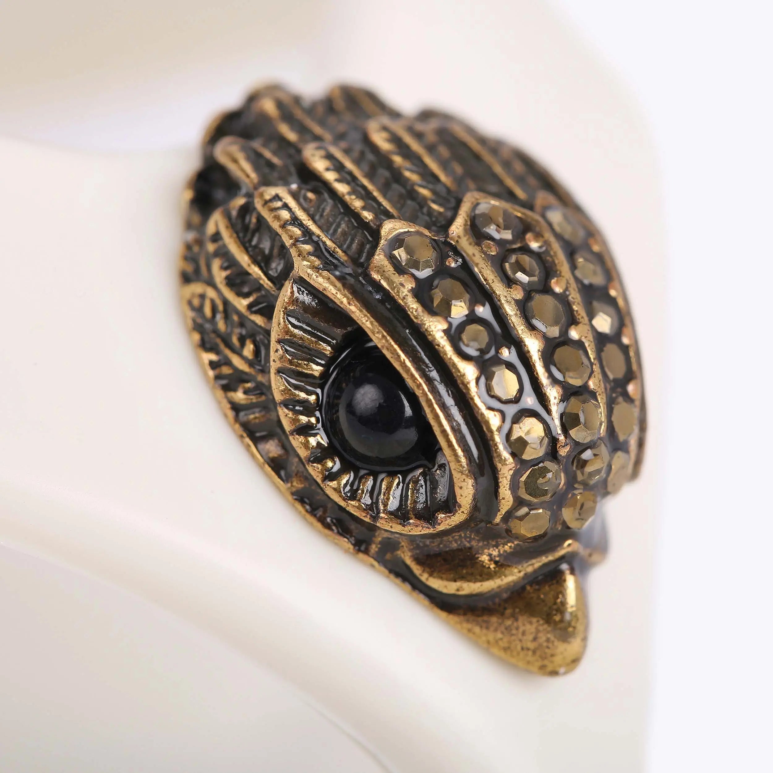 The Kensington Quilted Flip Flop, an addition to the Kensington Collection, is crafted in a toe-post style with overstitch quilt in a weave pattern on the footbed. The antiqued brass Eagle head features opaque brass crystals and black bead eyes on the toe strap.