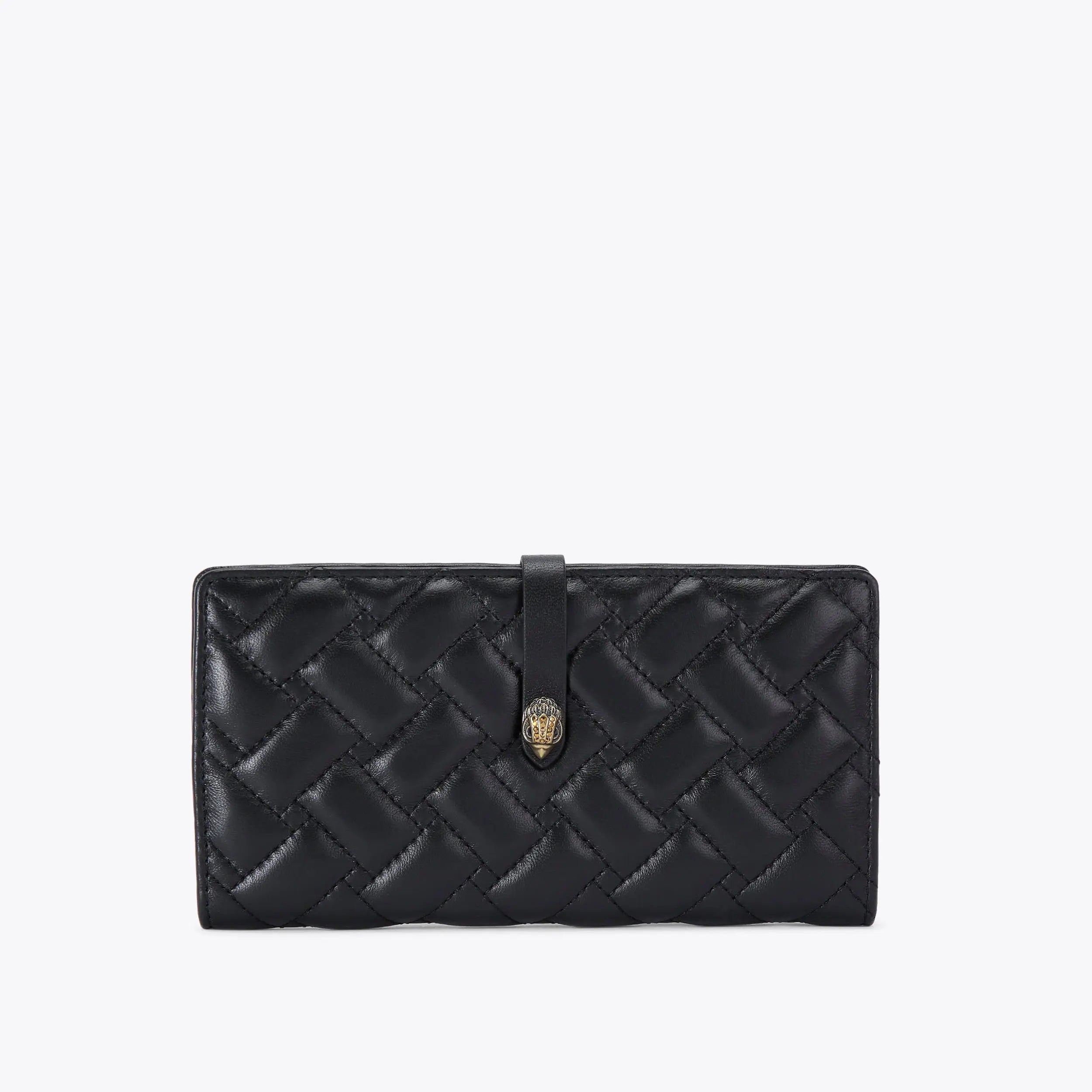 The Leather Soft Wallet is crafted from a soft black lambskin leather with signature overstitch quilt. The antiqued brass eagle head sits on the front flap.