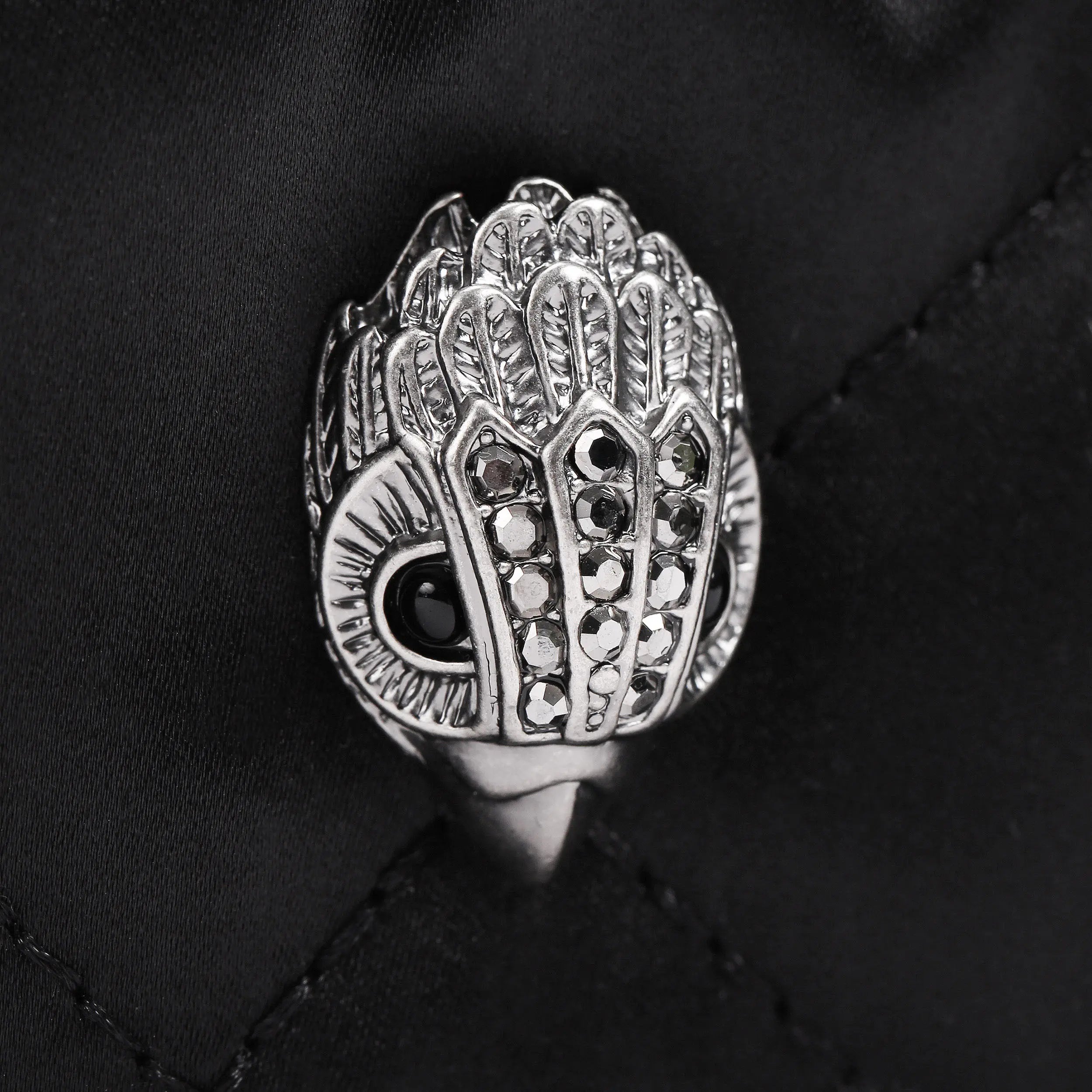 The Recycled Small Multi Cross Body is crafted from a recycled nylon material with overstitch quilting in a weave pattern. The antiqued silver Eagle head features crystals and black crystal eyes on the front.