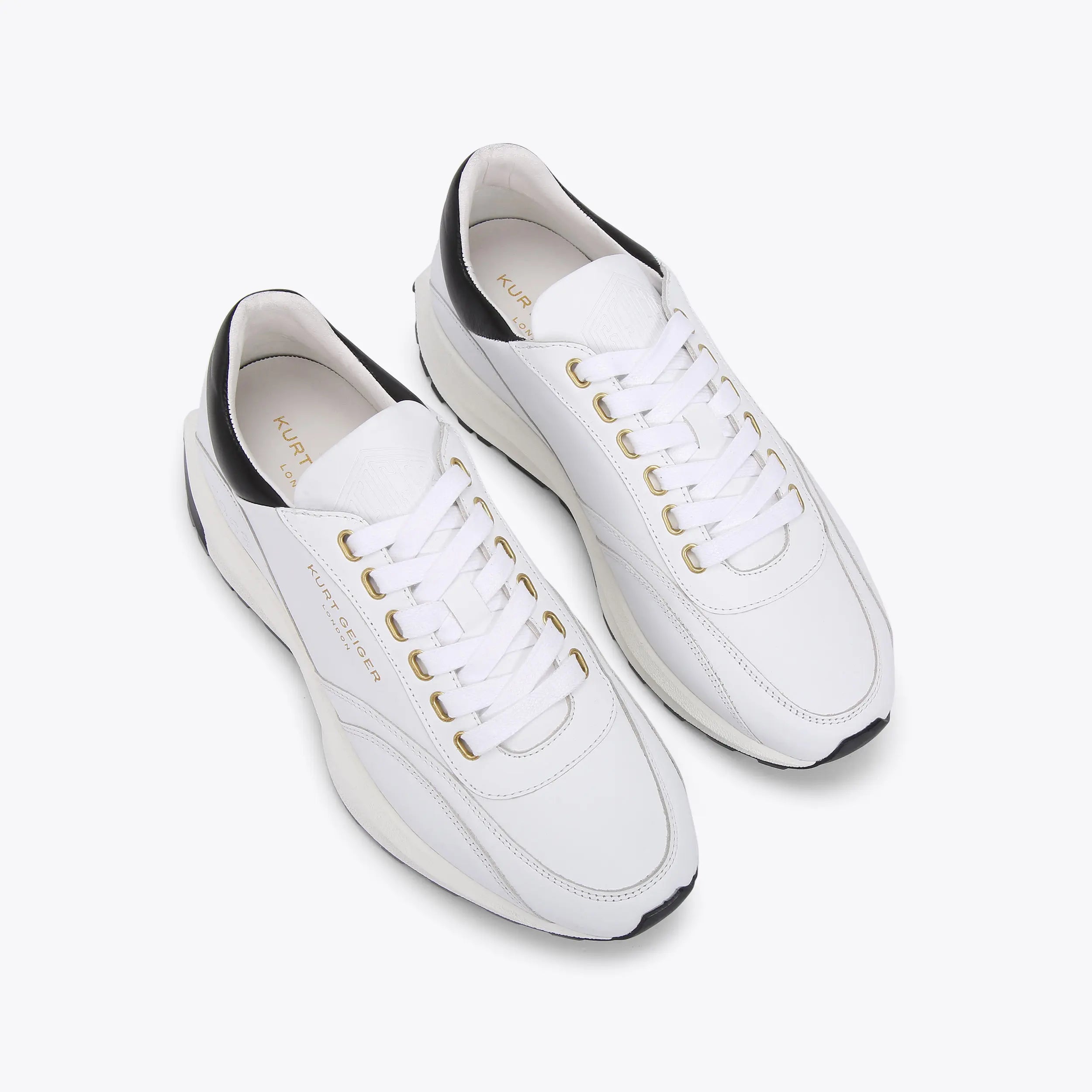 The Gaspar is a classic lace up sneaker in white. The tongue has embossed branding which can also be seen at the heel. The sole is extra chunky in white with black tread.