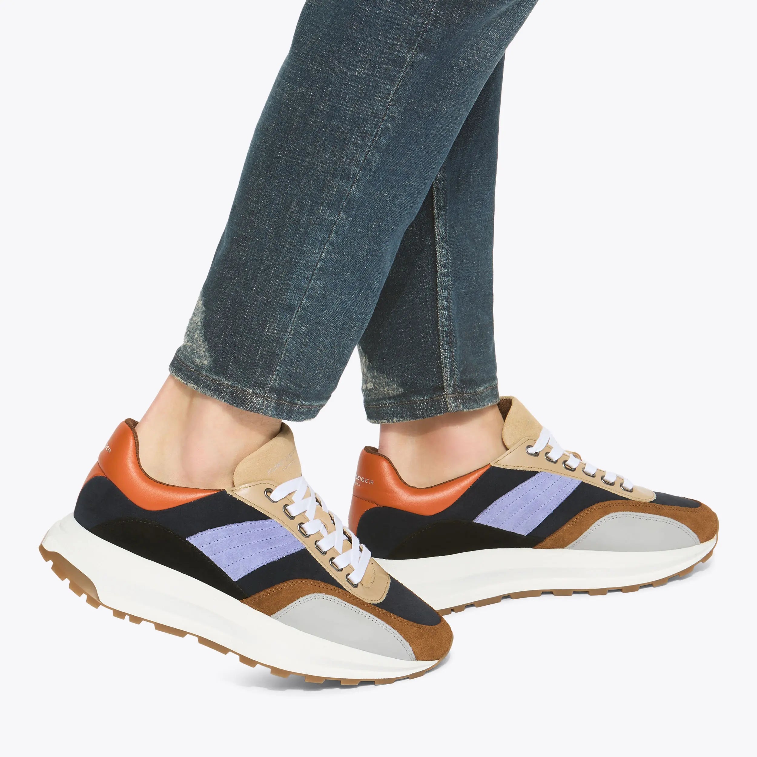 This Gaspar Sneaker is a sporty style with a suede upper in different colours. The front laces up with a silver foil embossing on the heel.
